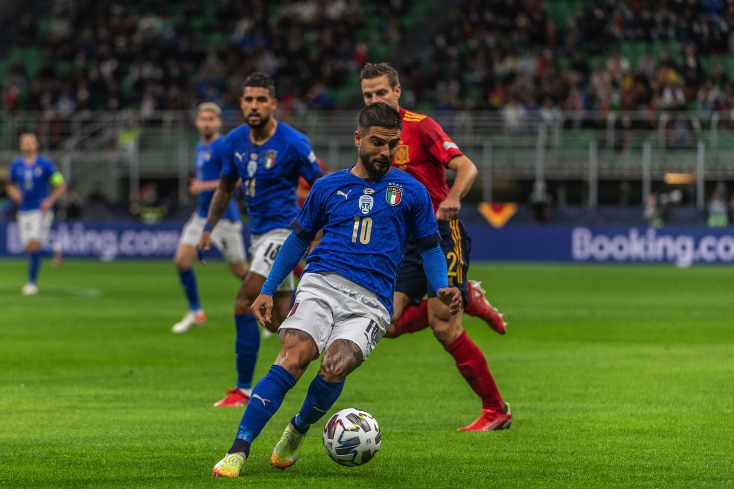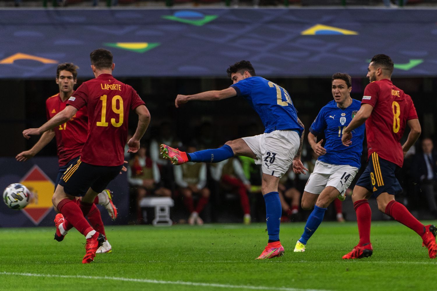 Through the lens of Giacomo Cosua of Positive Agency we have witnessed Italy - Spain, a match fought until the end but which saw the triumph of the red furies. Ferràn Torres' double ended the game at the end of the first half, putting an end to the positive streak of the Azzurri that lasted 37 games. Pellegrini's goal almost at the end of the second half was not enough, the Azzurri fought and protested, Bonucci knew something about it, but Luis Enrique's team was more compact and lucid. It's impossible not to mention the debut of Gavi, a young boy from 2004, who literally dominated the scene in midfield, showing off veteran plays and movements. The Spaniards will now face the winner of France-Belgium in the final, which will be played tonight in Turin. While the Azzurri will challenge the loser in the final that will be worth the third and fourth place of the Nations League.