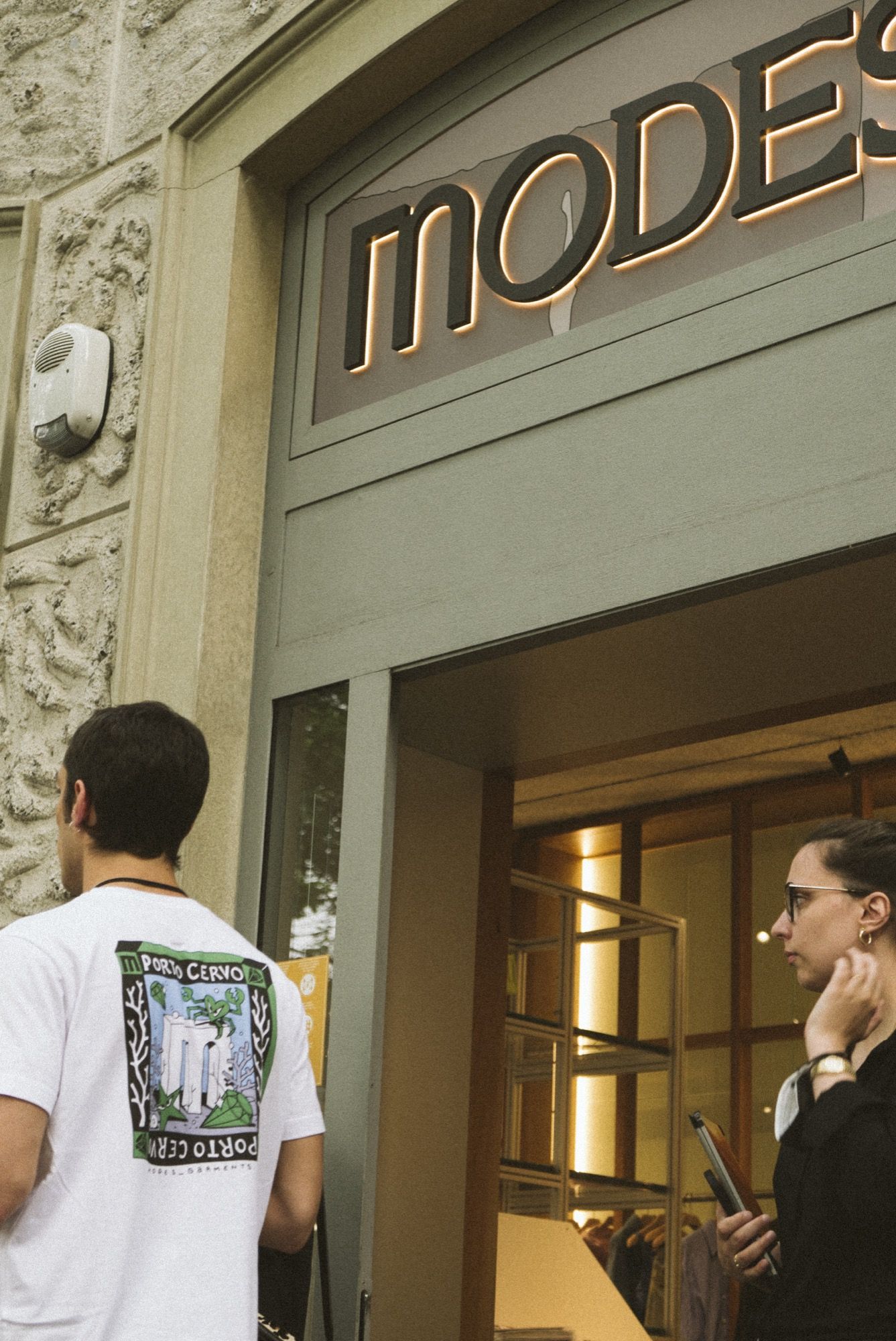 The MODES store in Piazza Risorgimento was the location for the launch of MODES Garments, the brand's new label inaugurated with a capsule of tees in which the artwork of Giacomo Fumagalli, founder of Aloha Project, joins the world of skateboarding. A marriage told by the photos of Kuba Dabrowsk, but especially by the zine, a concept closely related to skate culture, distributed during the event.
