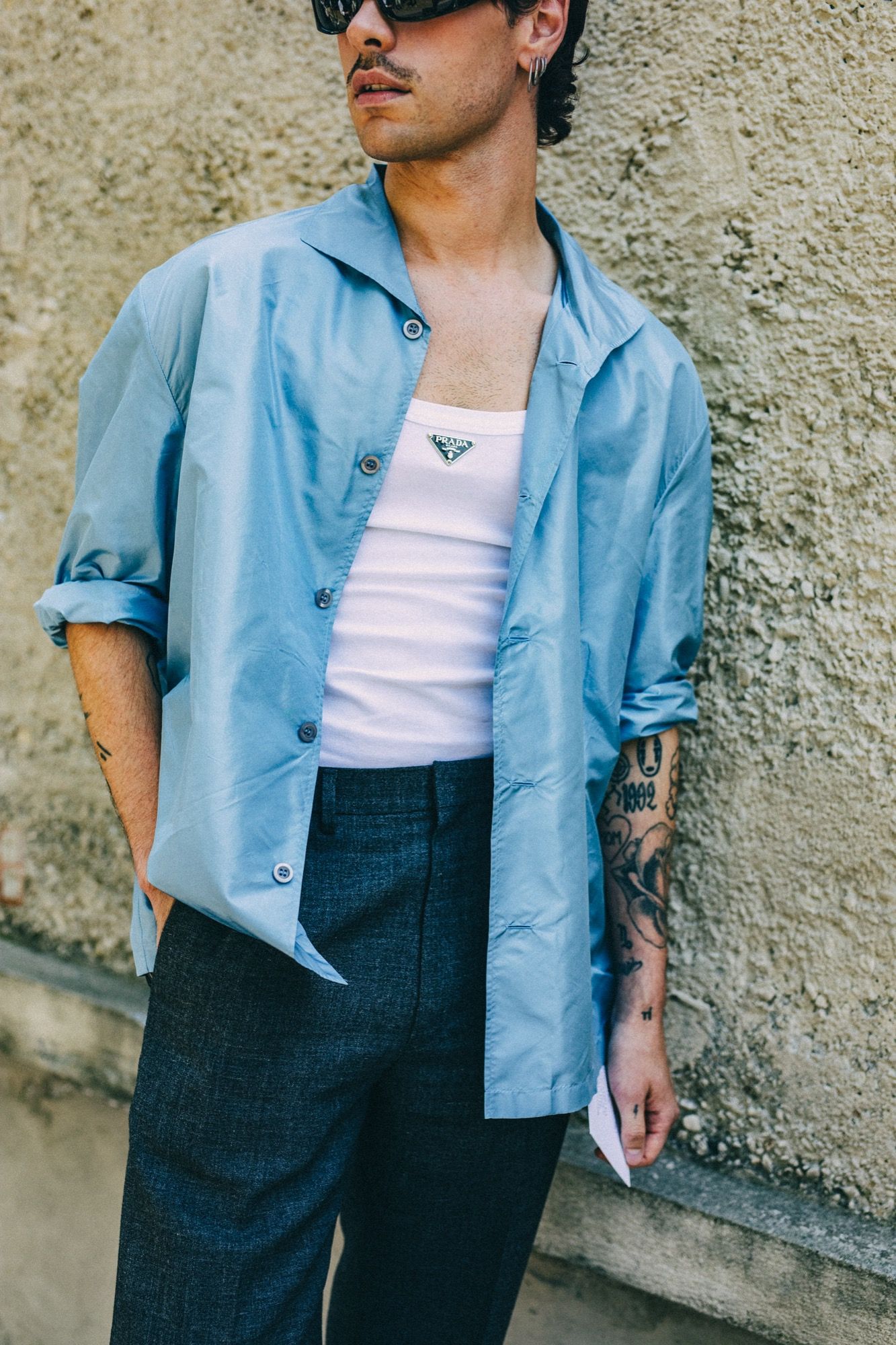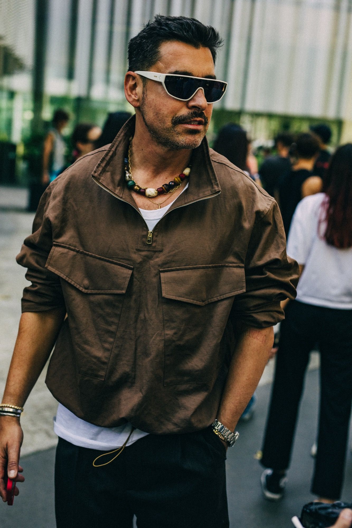 In a sun-stricken Milan, Milan Fashion Week Men's SS23 was staged. Accomplice to the almost 36° heat, street style adapted to necessities, combining the useful with the delightful: the result is outfits designed to withstand the summer climate in which accessories became the key to a winning look. If some preferred to risk the heat stroke in the name of fashion, others focused on bags and necklaces to elevate fits in line with the temperatures of the Milanese city.