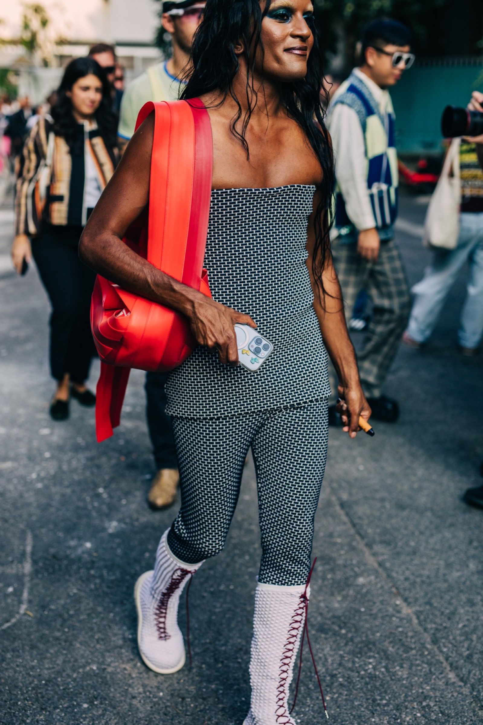 Fashion month continued with Milan Fashion Week SS23 Women's where, between streets and events, Jeremy French's scrutinizing eye captured the most interesting street style looks on the Milan scene. If crop and Y2K continue to establish themselves as the leading trends also along the streets of Milan, there persists a strand interested in formal wear or playing with colorful and experimental knitwear. There was also no shortage of attention devoted to hairstyle, impactful make-up, and cult accessories.