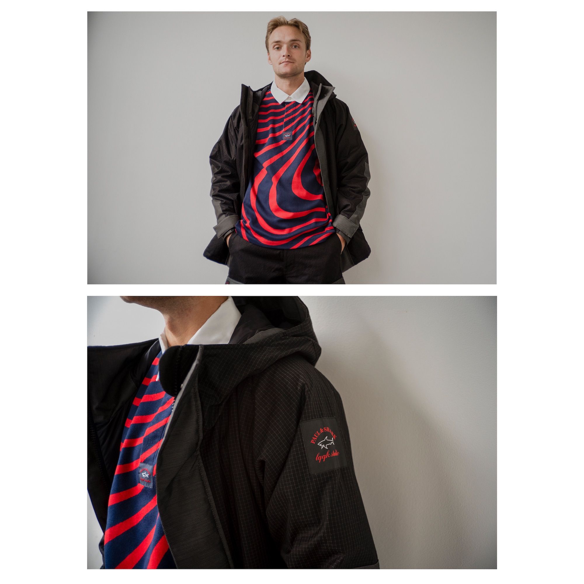 L'ultimo progetto realizzato dal brand è la collezione in collaborazione con LQQK Studio, un collettivo di artisti con base a New York che ha aiutato il brand a realizzare una linea tecnica e impermeabile. Con il ritorno di interesse per brand di outdoor in voga negli anni '90 e '00 Paul&Shark ha recuperato alcuni capi di archivio, in cui prevale il camo e l'inconfondibile logo con lo squalo. Tra i protagonisti della collezione anche il Typhoon 20000, il trattamento progettato da Paul&Shark in cui ogni singolo centimetro quadrato di questo tessuto e' in grado di resistere a vento e ad una colonna d'acqua di 20 metri.