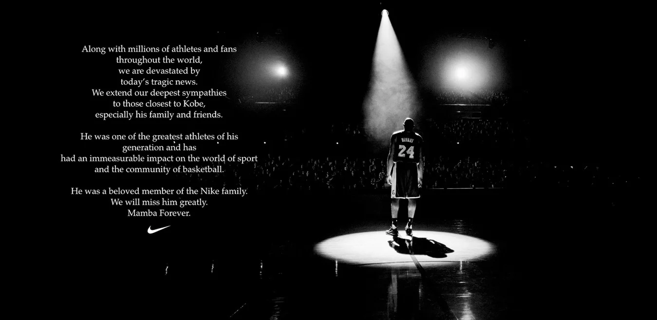 “Insieme con milioni di atleti e di fan di tutto il mondo, siamo devastati dalle tragiche notizie di oggi. Mandiamo le nostre condoglianze a chi era più vicino a Kobe, specialmente i suoi amici e la sua famiglia. Lui era uno dei grandi atleti della sua generazione e ha avuto un impatto incommensurabile sul mondo dello sport e la community del basket. Era uno stimato membro della famiglia Nike e lo ricorderemo per sempre. Mamba forever”.