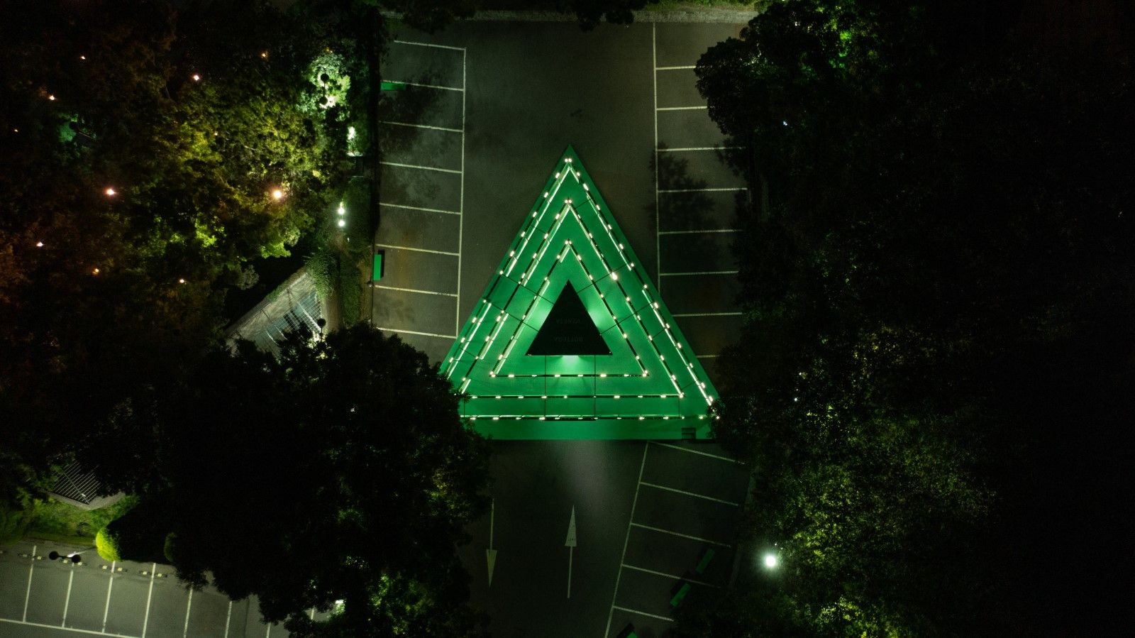 Il brand è rimasto sostanzialmente silenzioso circa la natura dell’installazione che, secondo @hftgroup, è ispirato alla popolarità di Squid Game e che in effetti presenta almeno due parallelismi con la serie: il primo è appunto l’estetica monocromatica; il secondo è la forma triangolare che è da molto tempo un simbolo del Bottega Veneta di Daniel Lee (ricorre ad esempio nei packaging, nelle etichette degli abiti e nelle fibbie) ma che è anche la forma del tavolo triangolare apparso nelle ultime puntate della serie, a sua volta una citazione all’epica installazione Dinner Party di Judy Chicago.