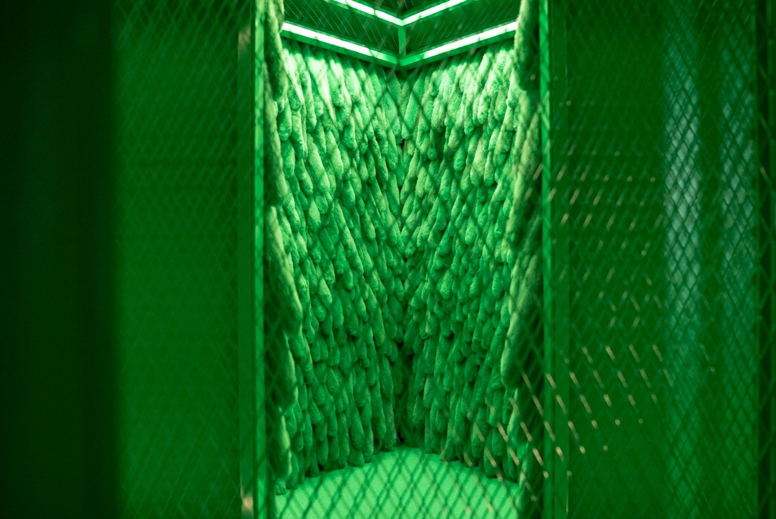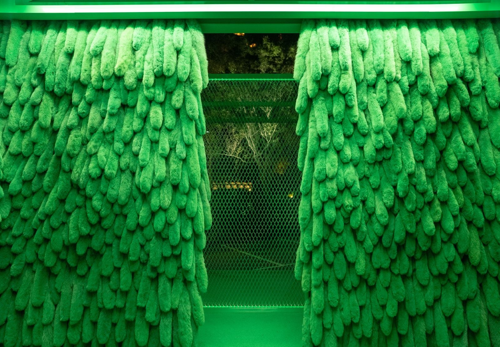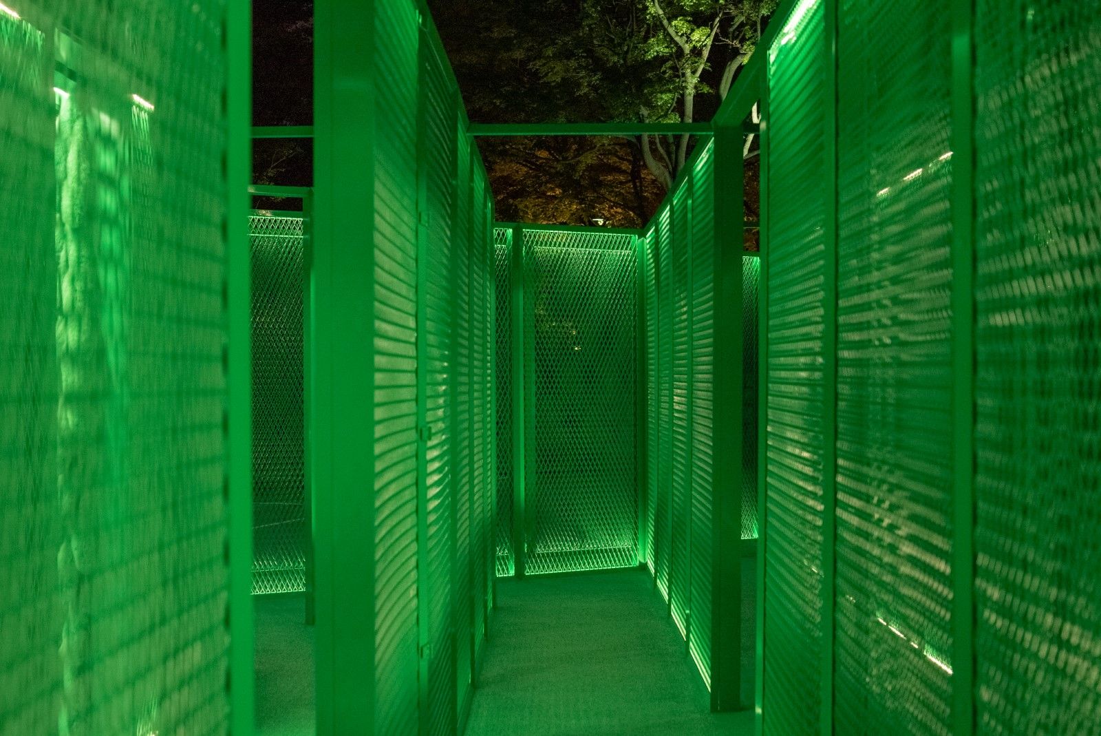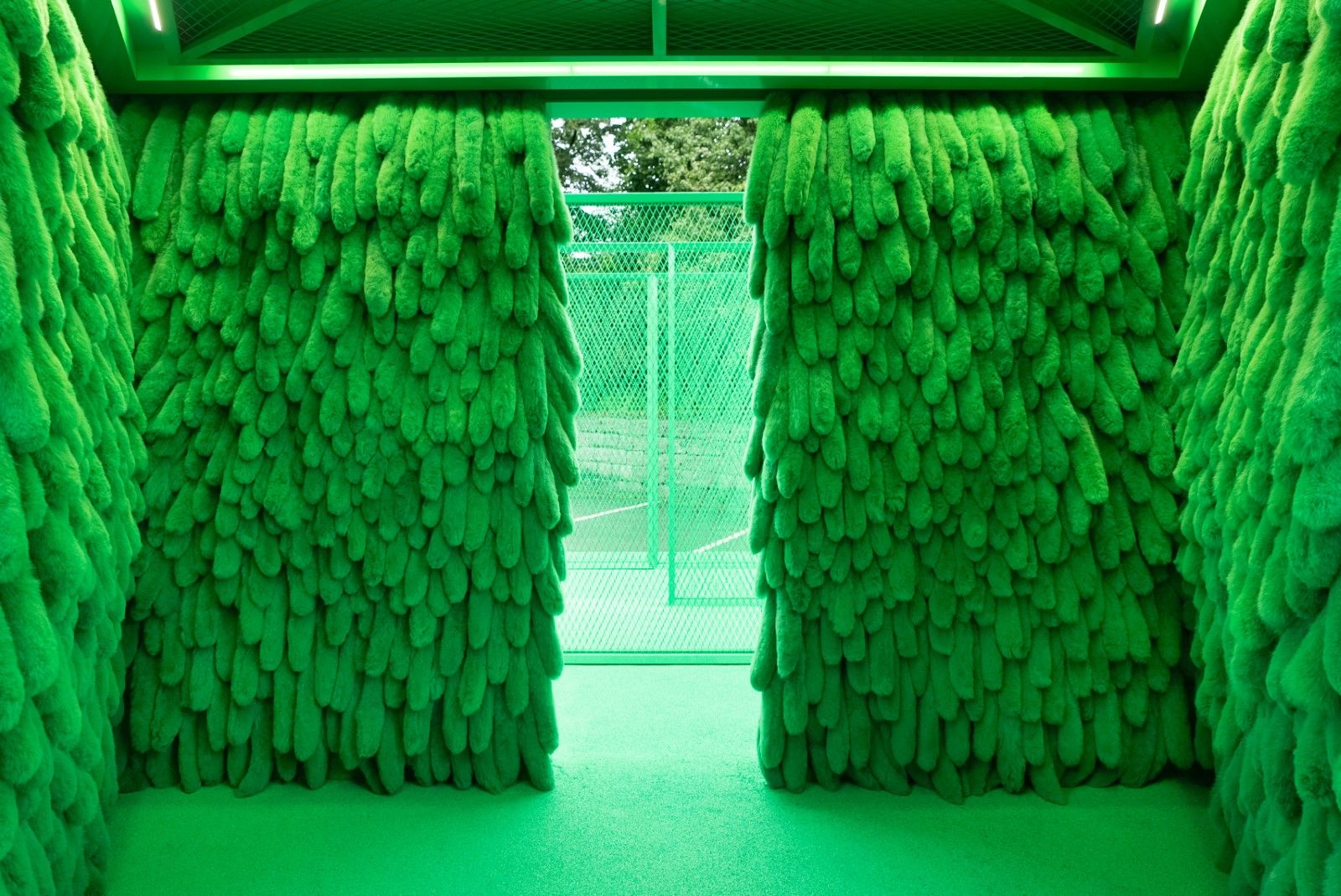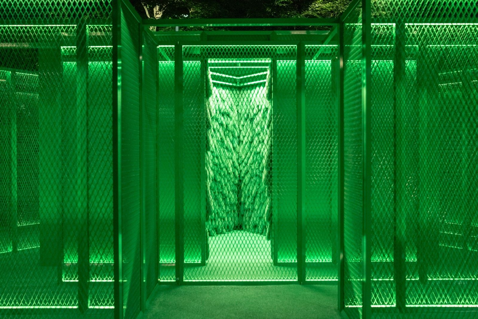 La scorsa settimana, Bottega Veneta ha presentato a Seoul la sua nuova e misteriosa installazione chiamata The Maze. L’installazione si trova davanti al Grand Hyatt Seoul e non contiene alcun prodotto: in pieno stile Daniel Lee, infatti, il labirinto si dipana per sedici metri con una struttura metallica interamente dipinta del Parakeet Green diventato da qualche anno una delle signature del brand, e una stanza centrale interna ricoperta da code di volpe sintetiche dello stesso colore che riecheggiano alcuni dei look visti durante Salon 02, ovvero la collezione FW21 del brand presentata a Berlino lo scorso aprile.