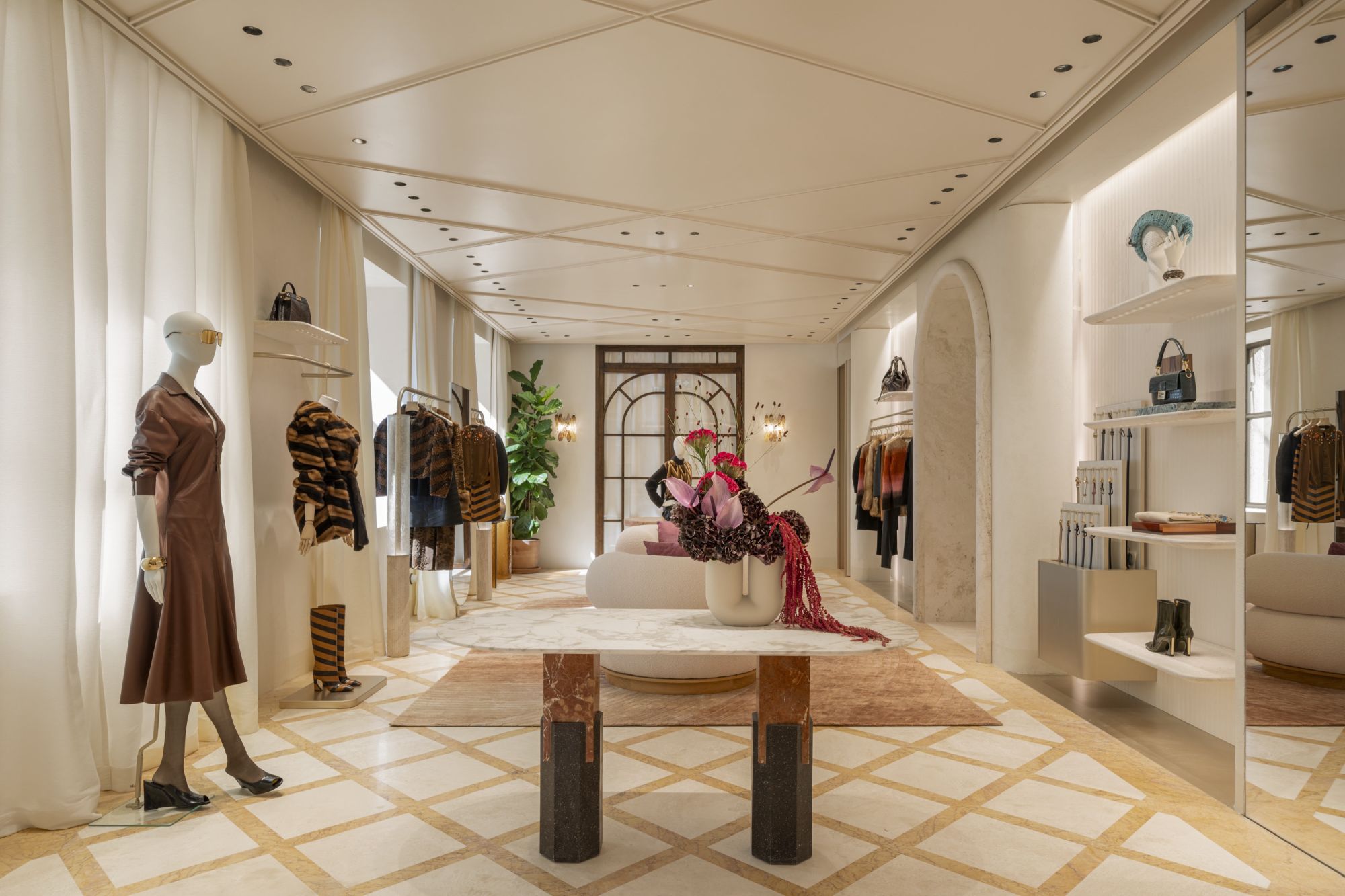 Al terzo piano, l’atmosfera si fa più intima. L’Atelier FENDI svela l’anima più privata della Maison: un luogo sospeso, dove il tempo sembra rallentare. Lì, tra una volta curva e un pavimento in mosaico, si sente la continuità di un pensiero che attraversa generazioni di artigiani, architetti, artisti. Palazzo FENDI Milano non è un monumento al lusso, ma alla presenza: un modo di abitare la bellezza con naturalezza, senza peso, come se ogni gesto, ogni materiale, ogni colore fosse al suo posto da sempre. E forse è proprio questo il segreto: trasformare la solidità della pietra in un’esperienza di leggerezza.