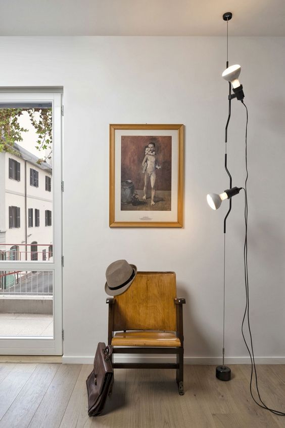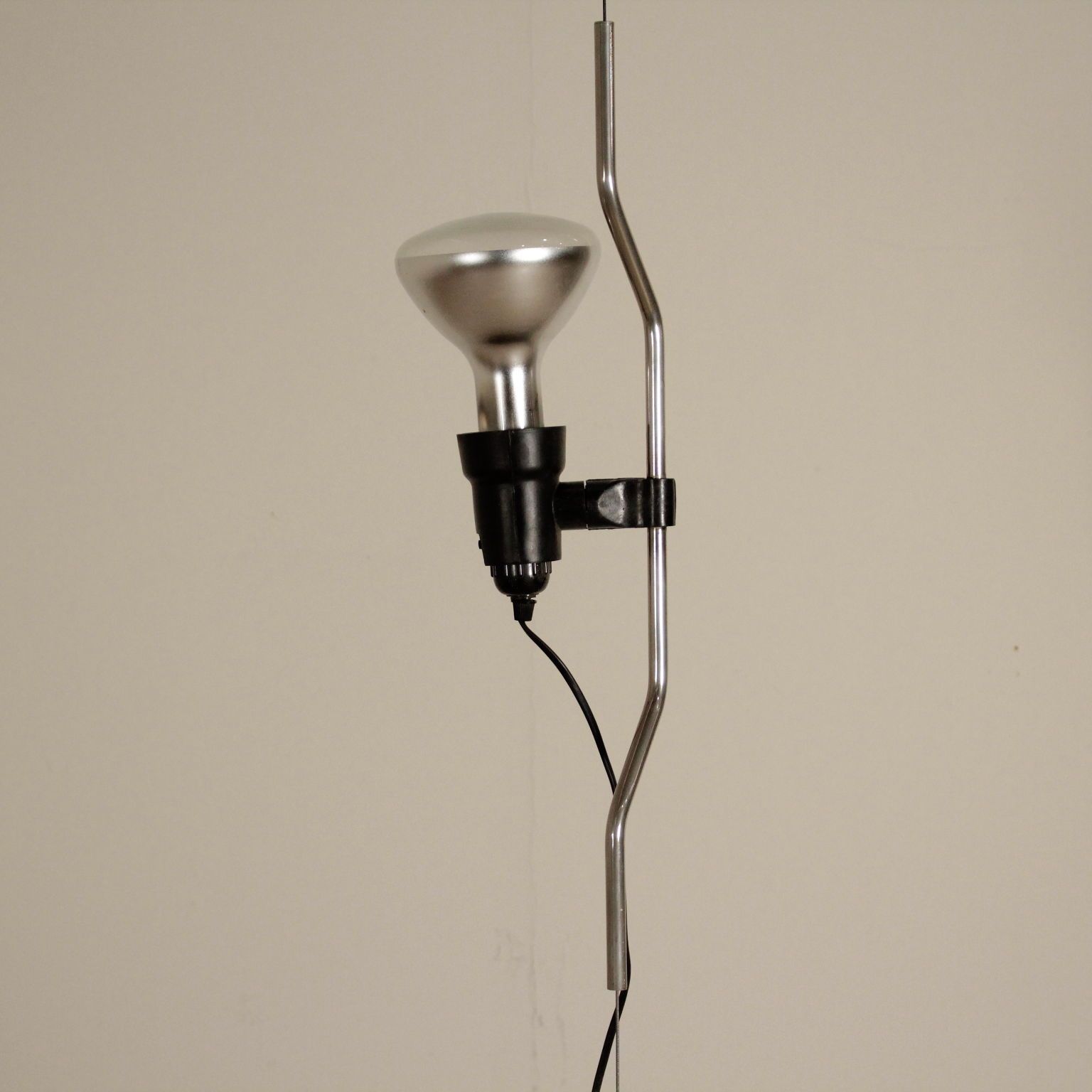 Pensée par Manzù et conçue par Castiglioni. Ce sont les deux ingrédients de l'incroyable lampe up and down qui a pris le nom de Parentesi. Comme beaucoup d'autres œuvres de design italien de l'époque, cette lampe utilisait également des éléments d'autres secteurs techniques pour son fonctionnement, en l'occurrence il s'agissait d'un tendeur de voilier fixé à la base. Son design était à la fois très sophistiqué mais visuellement simple : un câble en acier fixé au plafond par un disque avec un crochet, un porte-lampe à joint tournant avec une ampoule apparente, un support constitué d'une gaine laquée en forme de parenthèse, d'où la lampe tire alors son nom.