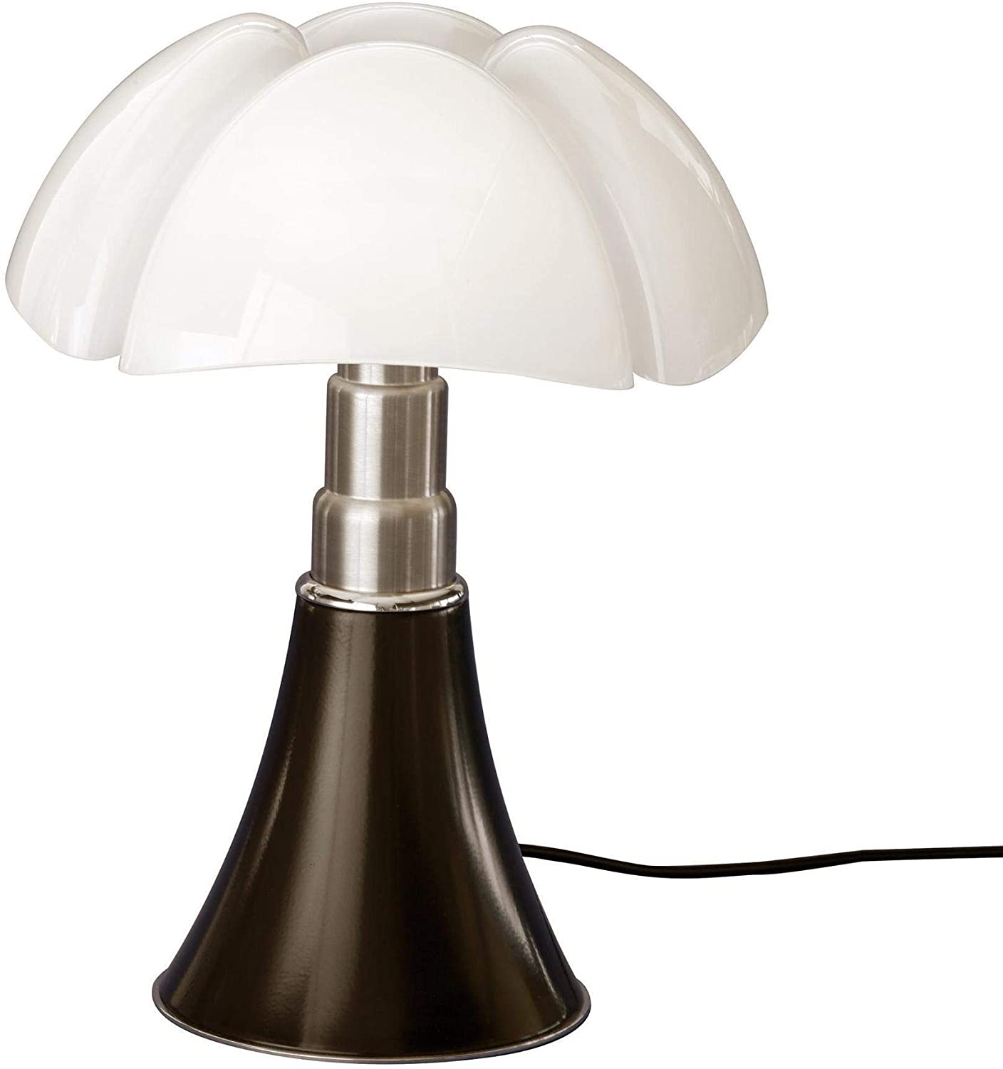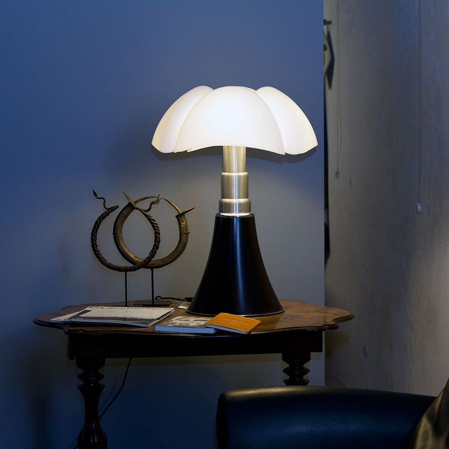 La lampe Pipistrello de Gae Aulenti est un objet fascinant : rétro et futuriste à la fois, sa forme rappelle la décoration de Liberty mais accentue l'aspect presque organique du design dans un sens futuriste. La tripartition de sa structure, en base, tige et abat-jour, s'inspire de la construction des colonnes classiques. Mais des détails comme la tige télescopique en acier qui la transforment en lampadaire ou lampe de table la placent résolument dans le domaine de la modernité.