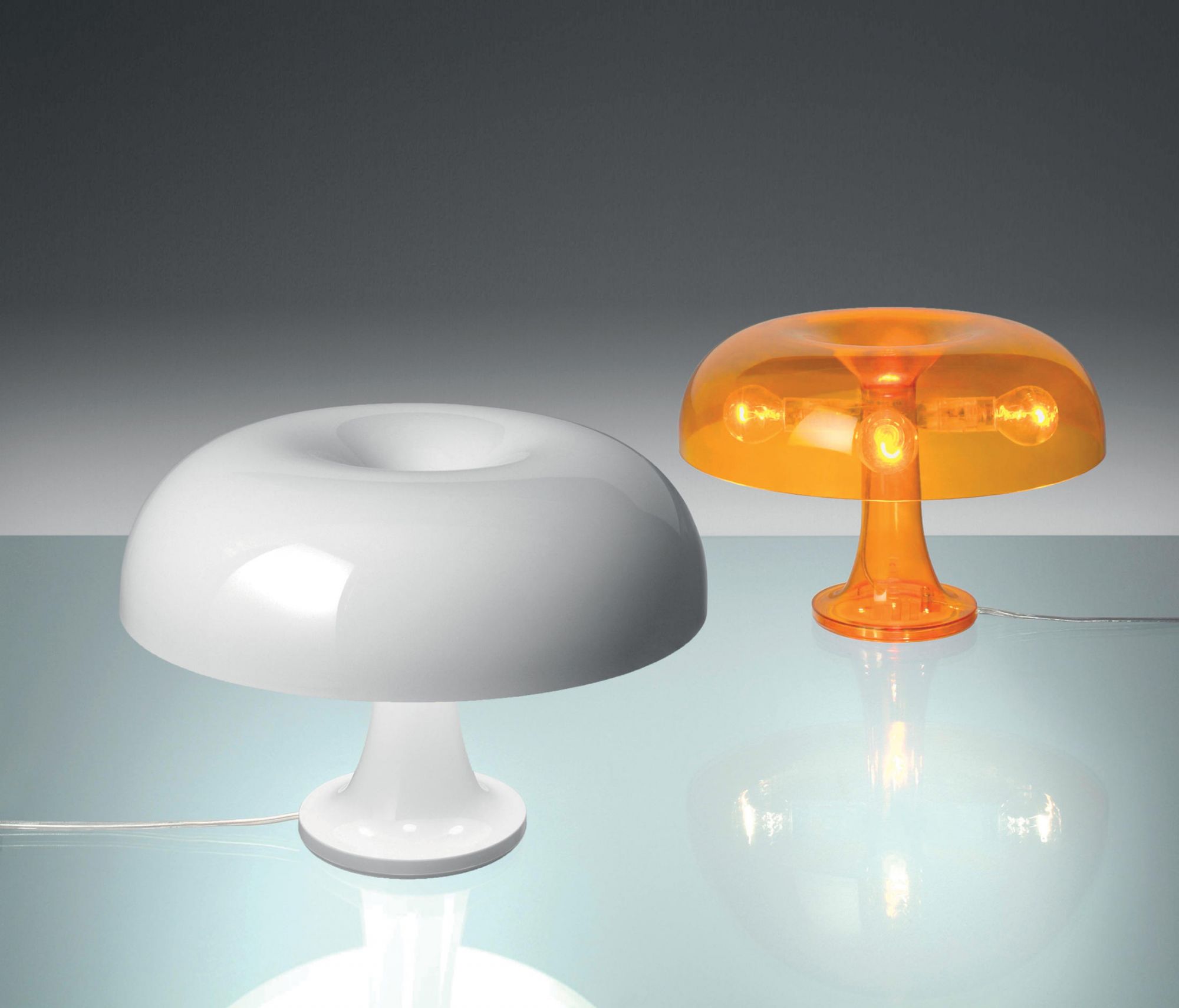 Présentée au Salone del Mobile en 1965 et déjà primée, la lampe Nesso est officiellement mise sur le marché en 1967. À l'époque, c'est son design futuriste qui frappe le public, cette fusion apparente sans couture de la tige et de l'abat-jour. Mais la vraie avant-garde réside dans sa construction, créée avec une technologie de pointe pour l'époque et c'est son moulage par injection thermoplastique en ABS. Dans les années qui ont suivi, Nesso est devenu l'un des grands classiques du design italien ainsi que de l'esthétique des années 70. Elle a même été exposée au Metropolitan Museum of Art et au Museum of Modern Art.