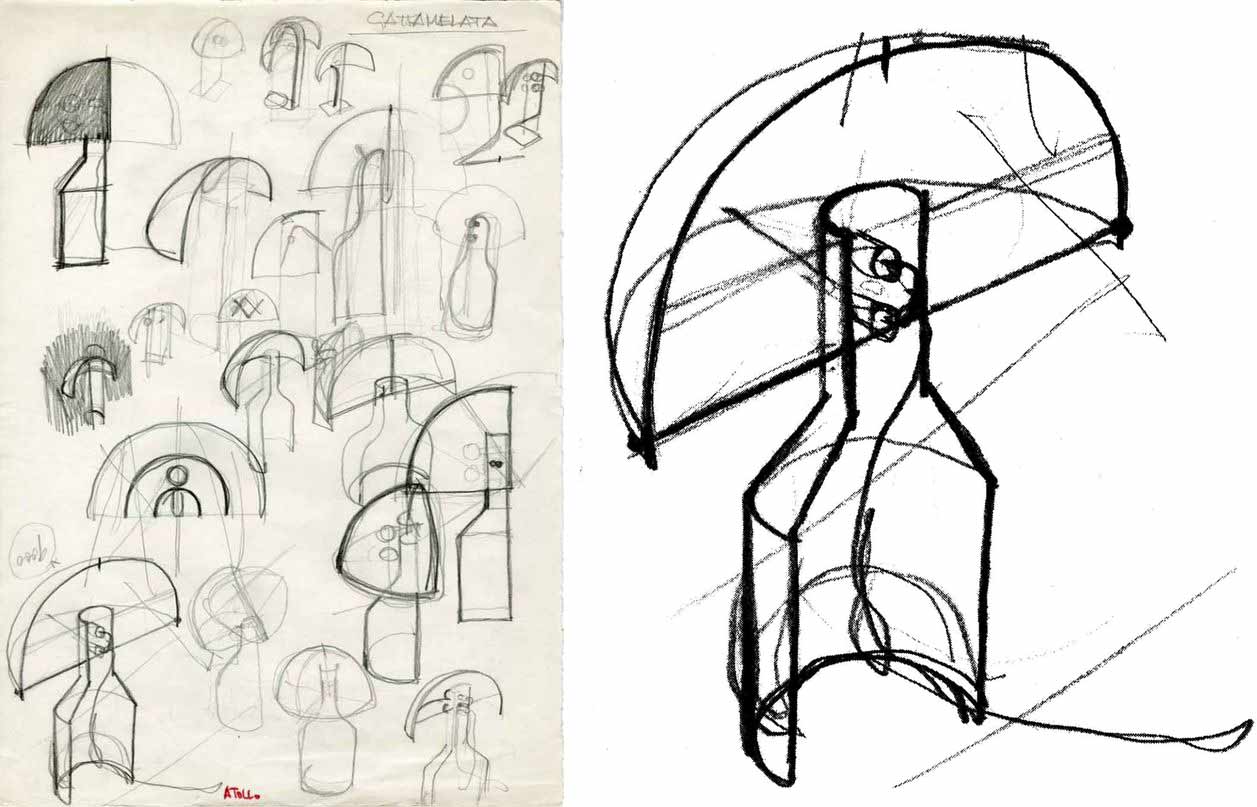Inspirés par la lampe de travail norvégienne Naska Loris, déjà un chef-d'œuvre emblématique de la fonctionnalité en soi, De Lucchi et Fassina ont eu l’idée de garder le ressort fonctionnel mais de le cacher à l'intérieur du bras de la lampe elle-même. Ils ont ainsi éliminé les éléments en trop dans le design et proposé un résultat final beaucoup plus élégant. De plus, la configuration particulière des différents éléments a permis de nombreuses solutions qui, tout en gardant intacte l'esthétique générale, ont transformé la lampe de table en lampe à suspension, en lampe à pince ou même en pied fixe.