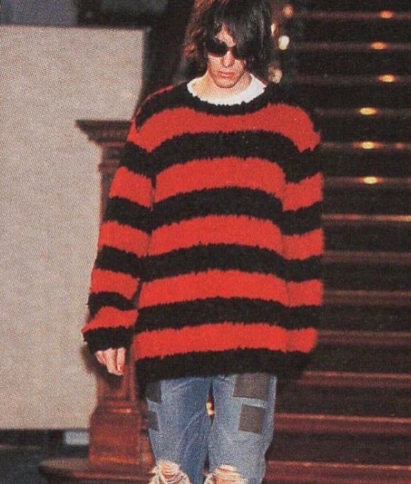 Avant que l'image de Michèle Lamy, l'avocate préférée de l'industrie de la mode et muse de Rick Owens, portant le pull à rayures noires et rouges de la collection SS23 de Heaven by Marc Jacobs, ne devienne virale dans une boucle infinie de partages sociaux, nous avions presque oublié le charme magnétique d'un vêtement qui non seulement a marqué l'histoire de la mode, mais aussi celle de la musique. L'uniforme de Freddy Krueger dans Nightmare, le pull chéri de Kurt Cobain, une inspiration, dans son design essentiel, pour des stylistes de renom tels que Hedi Slimane et Takahiro Miyashita : le pull distinctif en mohair est apparu à plusieurs reprises au cours des décennies passées, devenant ainsi le symbole de cette esthétique grunge et décontractée typique des années 90, de Seattle, de Portland, de la musique jouée dans les sous-sols, avec des guitares désaccordées. Mais ce qui rend ce mythe encore plus grand, ce sont les circonstances étranges qui l'ont rendu célèbre.