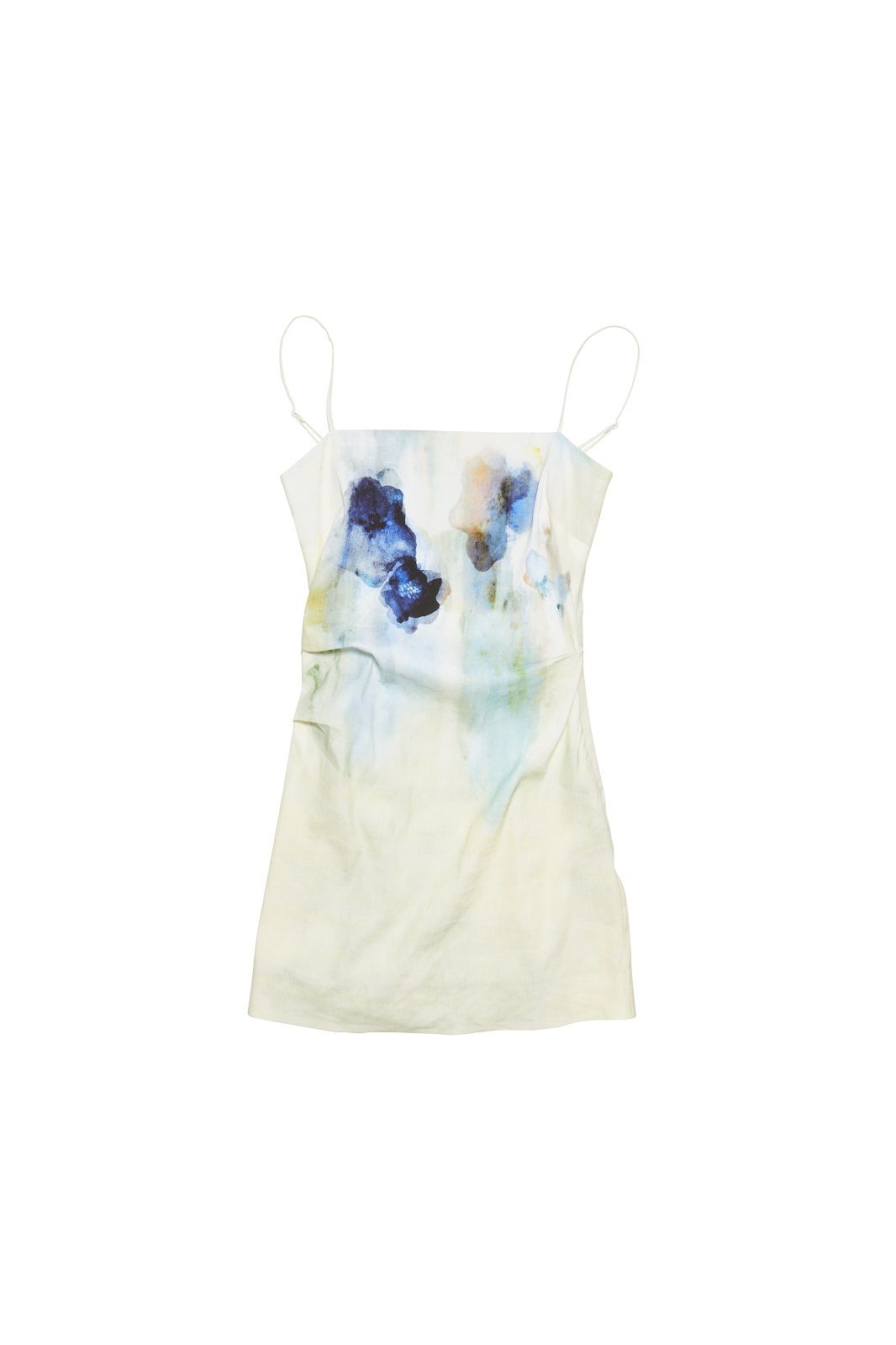 Les silhouettes des robes, des tops et des jupes ressemblent à des méduses flottant, belles et éthérées, dans l'océan, tandis que des motifs floraux fleurissent sur les tissus, sentant le printemps et le désir de légèreté. Tout est fluide, doux, y compris les écharpes skinny, allongées et coupées en diagonale, et le sac cross-body Distortion, dont les angles aigus sont désormais réalisés dans un nouveau tissu éponge dans la nuance la plus douce de lilas, tandis que le sac classique Logo Tote acquiert une nouvelle taille oversize et plus de charme grâce à un tissu éponge dans une nuance vibrante de vert acidulé. Les nuances de vert, de bleu et de terre caractérisent l'ensemble de la capsule, avec des touches de noir, de rose et de blanc, couleurs dans lesquelles les montures de lunettes de soleil surdimensionnées sont disponibles.