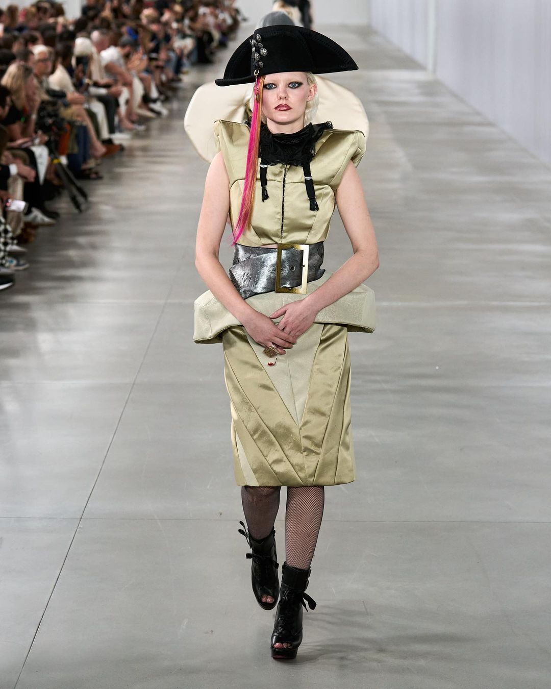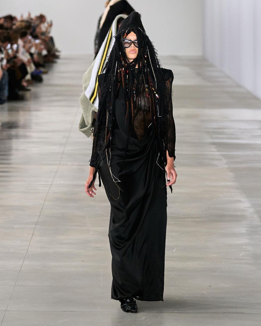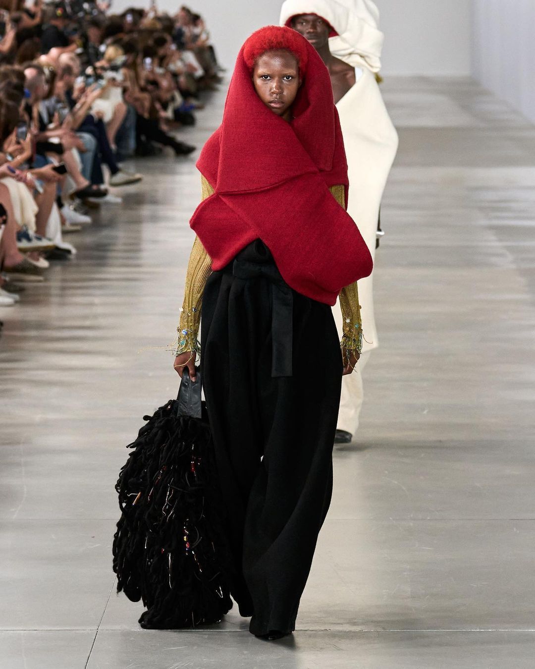 Si le travail des marques de mode est devenu progressivement plus "silencieux" et minimaliste depuis la pandémie, les créations des jeunes étudiants de l'Institut sont dérangeantes, créatives et loin de l'anonymat qui semble régner dans l'industrie. Certains designers se sont inspirés de l'art, comme Haigann Fevier-President qui, fascinée par l'utilisation de la laine dans les études de couleurs de Zanele Muholi et Mari Mater O'neil, a décidé de syncrétiser ses créations dans une collection vibrante et flamboyante, entre coiffes de laine géantes et silhouettes performantes. D'autres se sont inspirés de leur propre histoire, comme Rachel Tayza, qui a revisité la blouse de médecin classique avec des gants en latex pour évoquer sa propre enfance à l'hôpital. Chaque capsule raconte une histoire autonome, puissante et impressionnante qui donne un aperçu du potentiel créatif du créateur concerné.