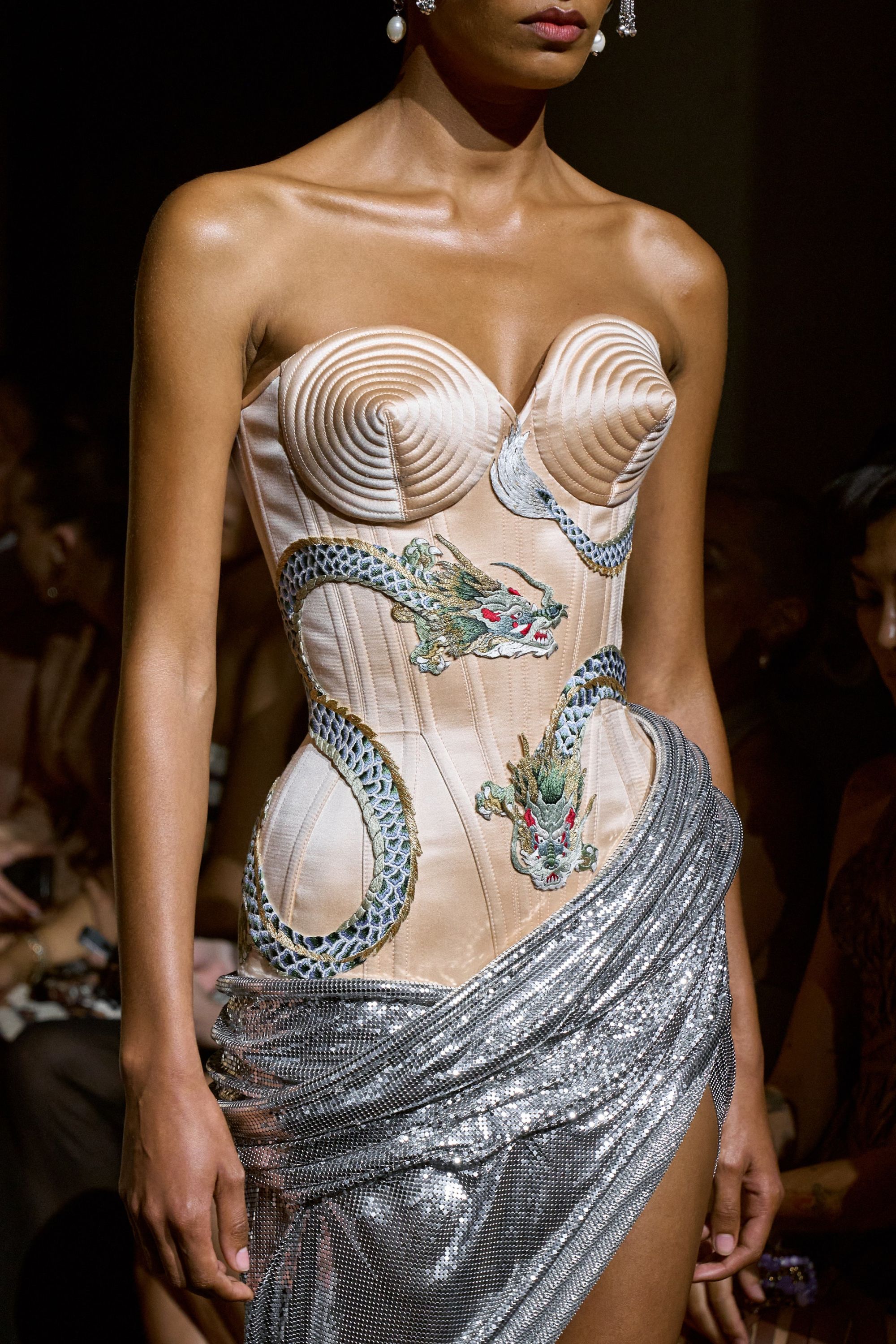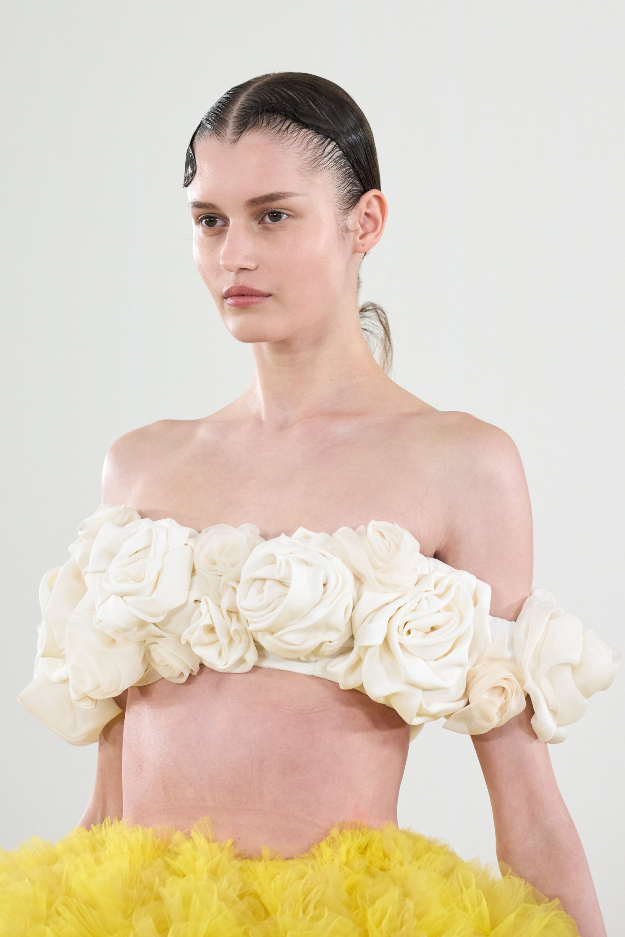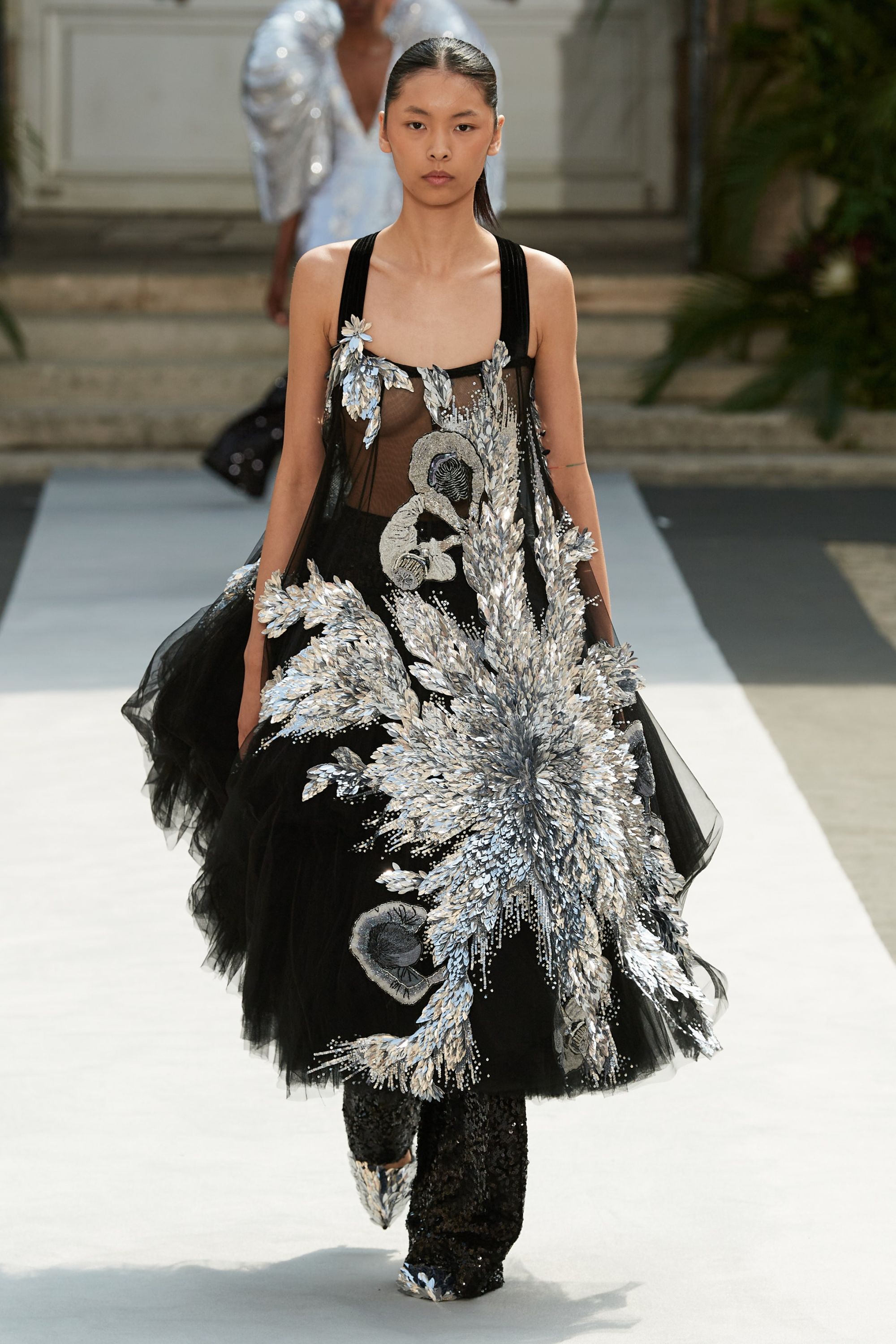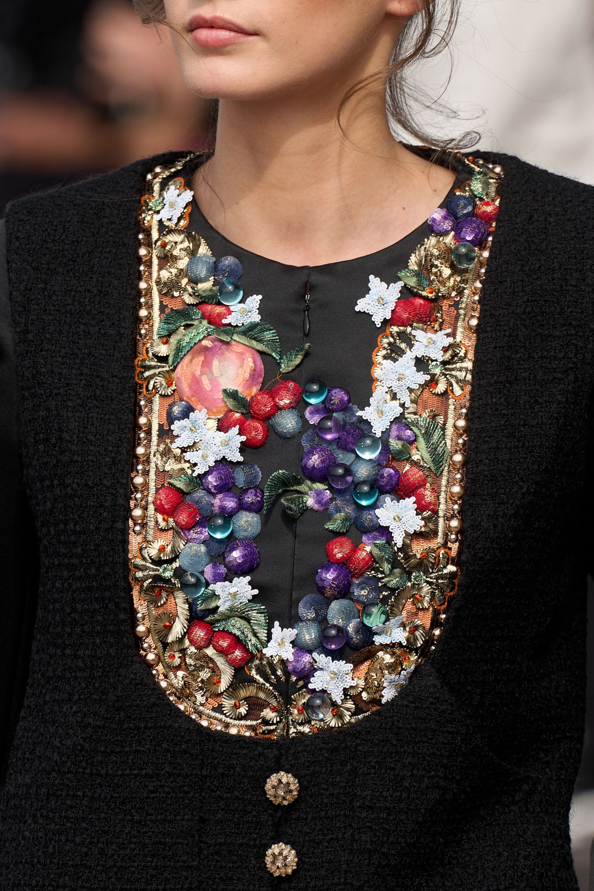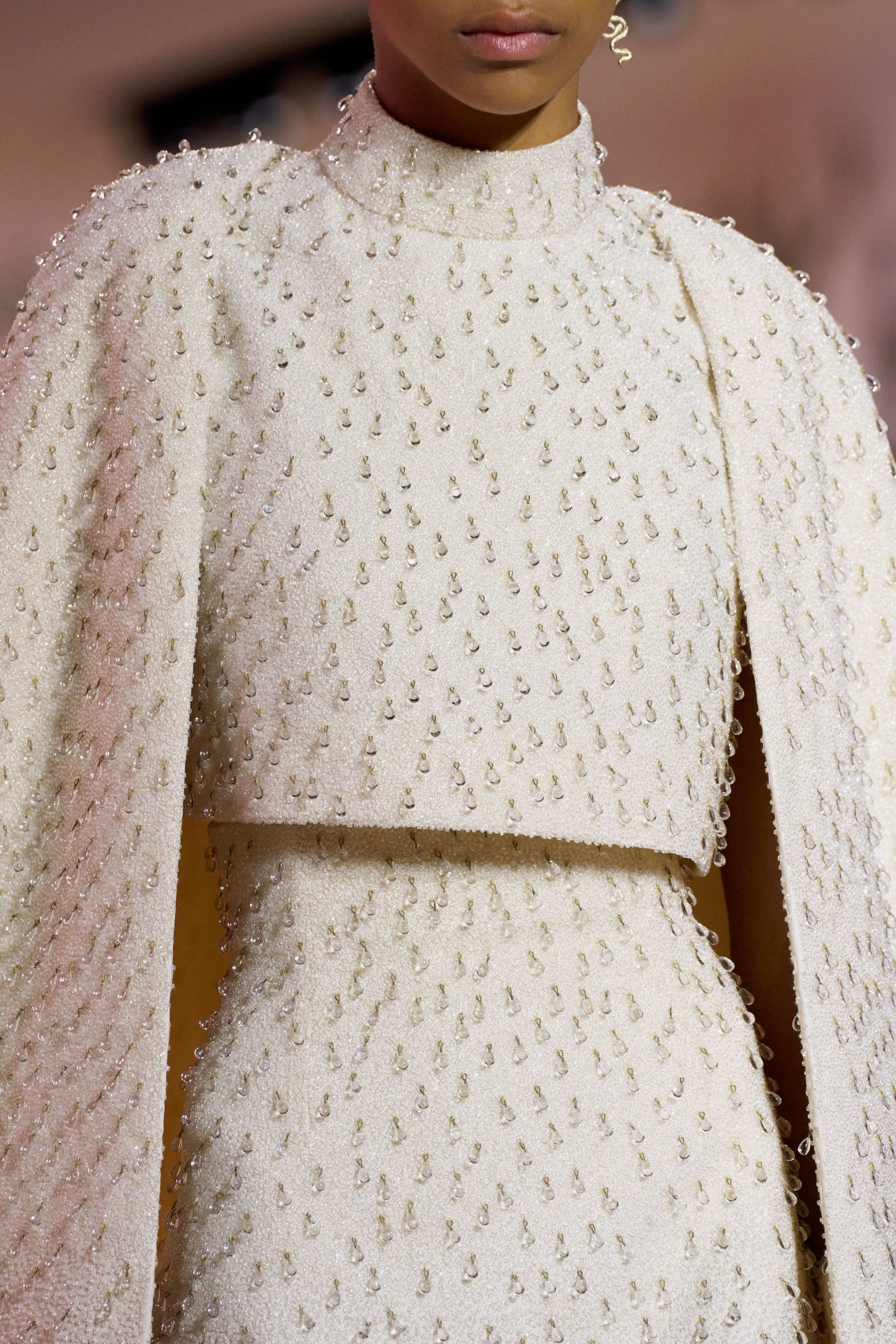 La couture est synonyme de broderie : un élément récurrent de tous les défilés, devenu un thème central pour certaines marques, comme Rahul Mishra, qui s'appuie sur l'artisanat indien pour créer une histoire. Chez Valentino, en revanche, la soie ressemble à du denim grâce à des broderies de microbilles dans des dizaines de nuances de bleu. Ou encore Dior, qui utilise de minuscules perles appliquées à la main pour embellir l'ensemble du vêtement. Les framboises perlées de Chanel sont également étonnantes.