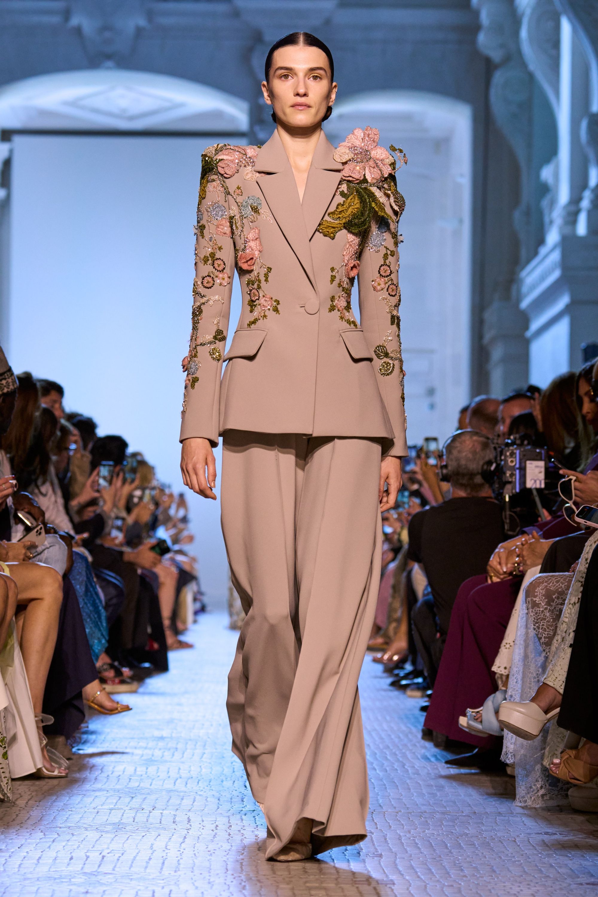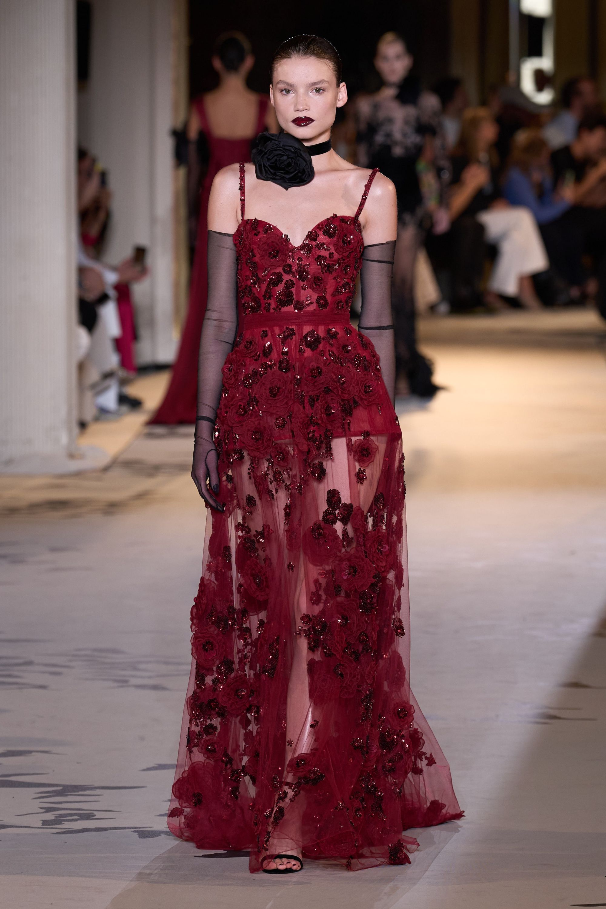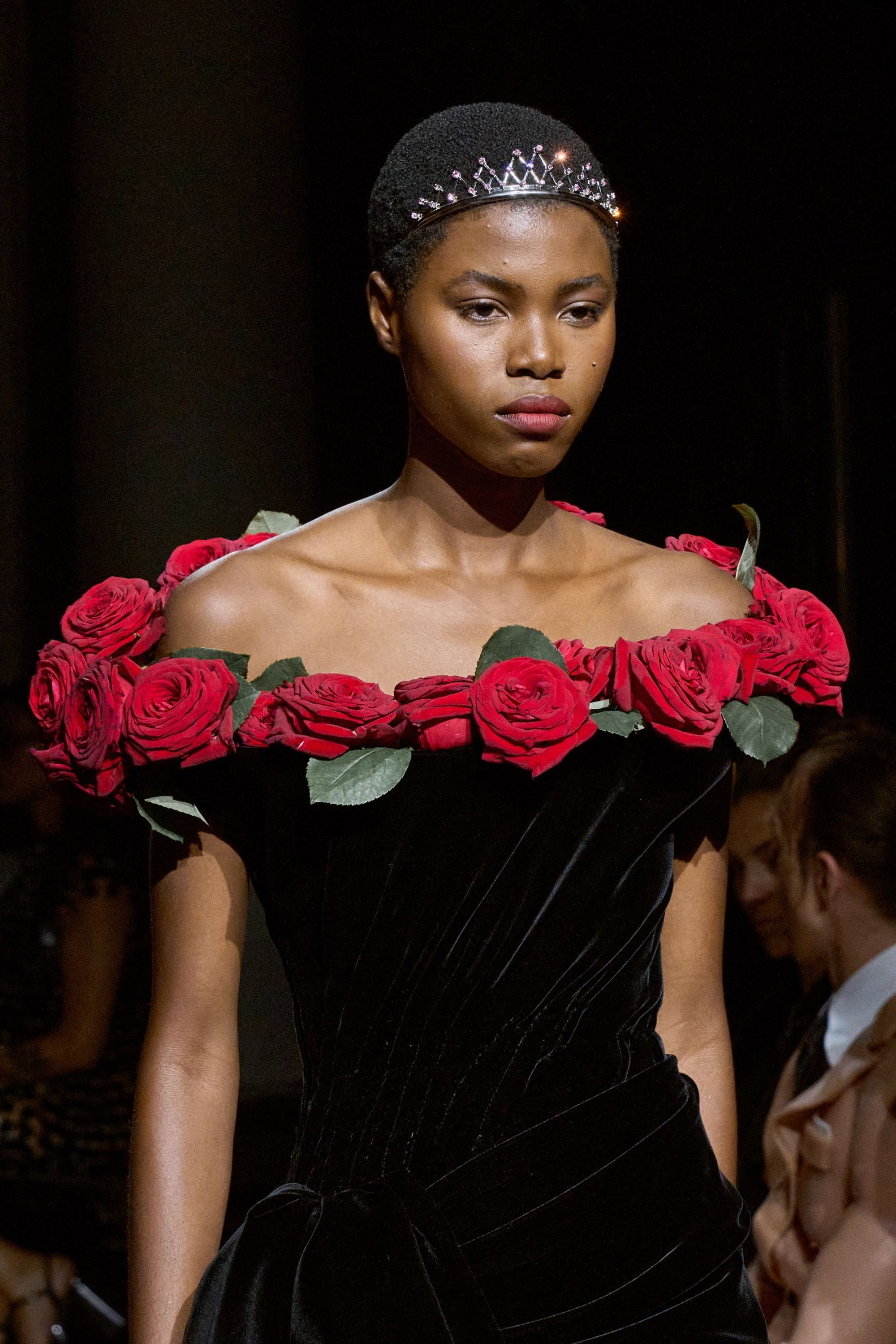 De TikTok à la Couture : les fleurs en relief sont omniprésentes et constituent le thème central de la collection d'Armani Privé. La rose rouge est reproposée de différentes manières pour chacun des looks et s'inscrit dans un contexte d'inspiration orientale.