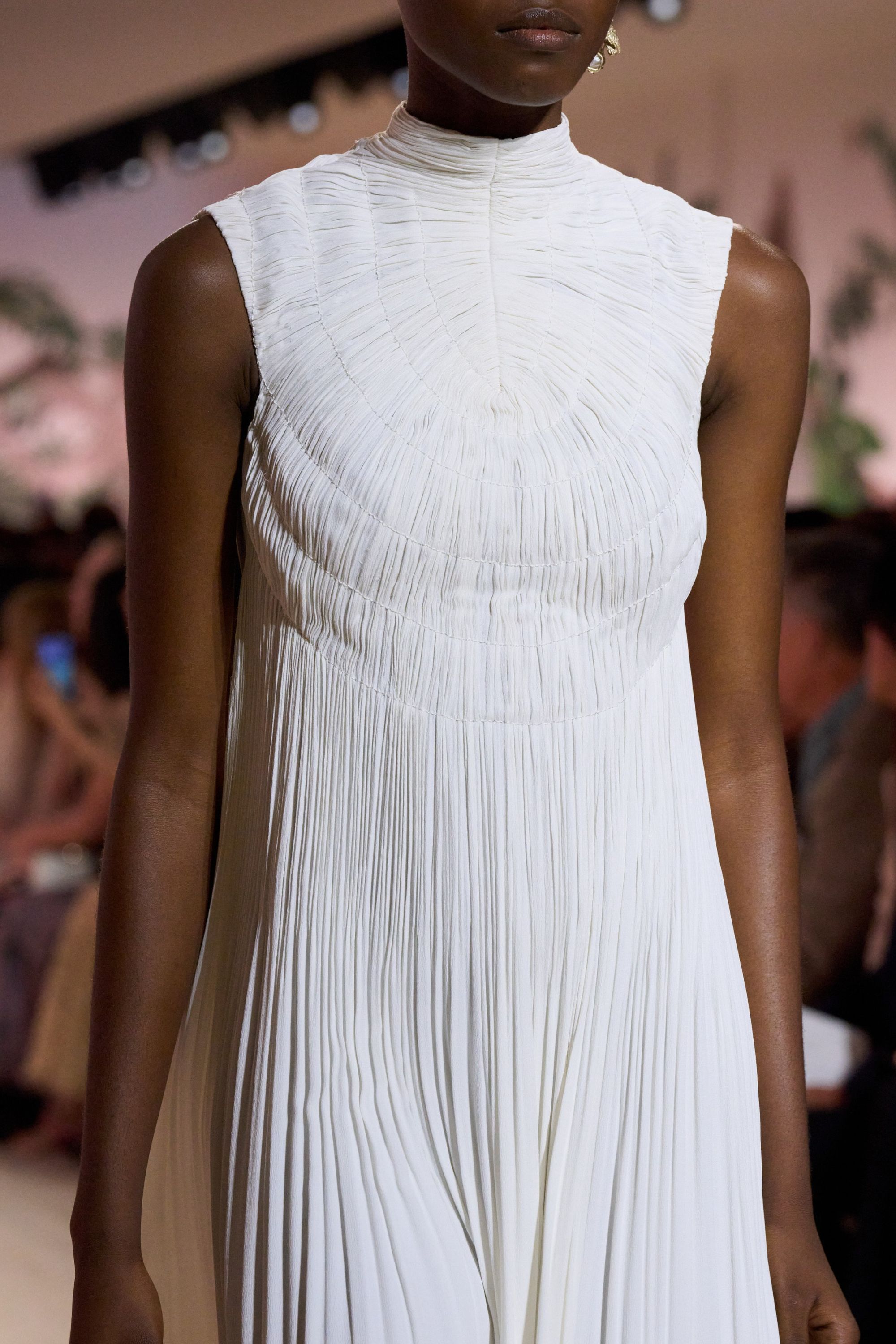 Questa tecnica antichissima, sinonimo di lavorazione a mano, sta tornando trendy. Iris van Herpen la utilizza accostandola ad applicazioni metalliche dall’aspetto futuristico per un forte contrasto. Mentre da Dior sfilano abiti bianchi dalle linee pulitissime e sovrapposizioni di pieghe.
