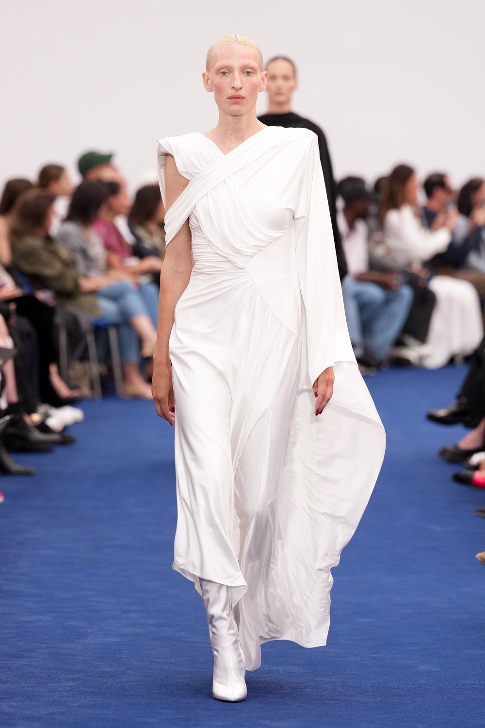 Cette technique ancienne, synonyme de travail à la main, revient sur le devant de la scène. Iris van Herpen l'utilise en la juxtaposant à des applications métalliques d'aspect futuriste pour un contraste fort. Chez Dior, ce sont des robes blanches aux lignes très épurées et aux plis superposés qui défilent.