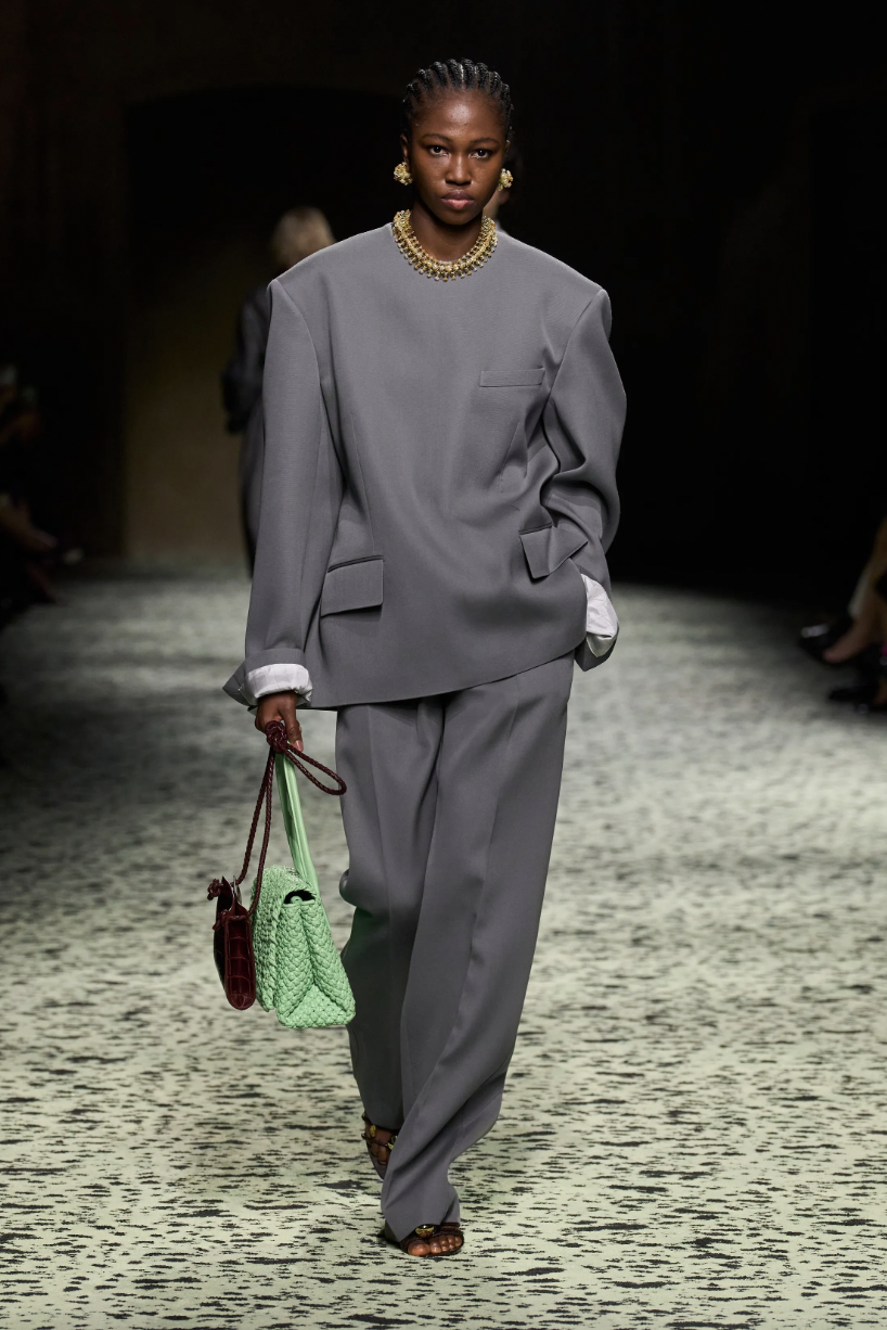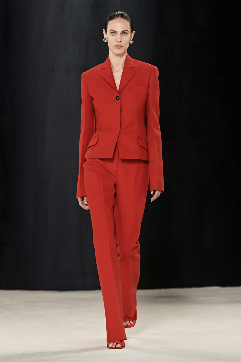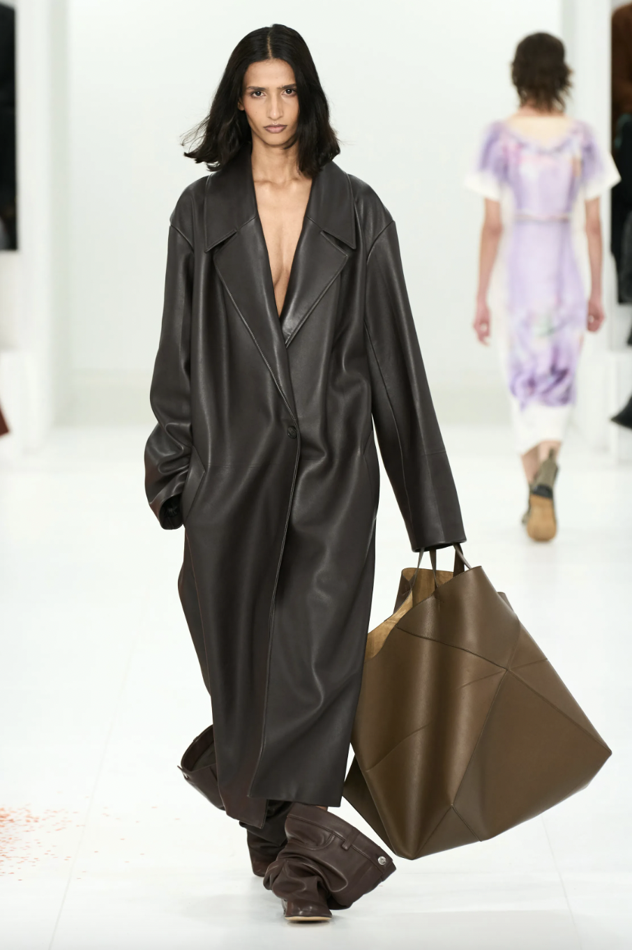 Si Marie Adam-Leenaerdt a fait défiler le trench très long pour la saison 23, porté avec un jean tout aussi long, l'achat stratégique des soldes est le trench à larges revers de Patou. La forme sablier, dominante dans la saison à venir, vue sur le podium Sportmax dans un total look couleur beurre, est reprise par le blazer de Balenciaga, qui attend patiemment d'être acheté pendant les soldes. Les douces épaules oversize de Bottega Veneta se retrouvent en revanche dans le blazer en papier sucre d'Acne Studios. Le long manteau en cuir de Loewe peut être comparé à la veste White Label de Proenza Schouler.