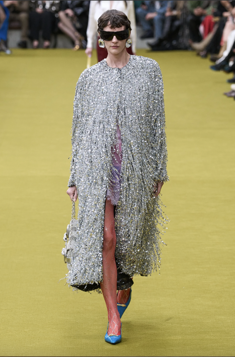 La chemise blanche que Miuccia Prada et Raf Simons ont associée à une jupe asymétrique et à des ballerines noires est également intéressante: le look peut être reproduit avec la chemise blanche à col pointu et à poches de Courregès. On peut s'inspirer des fleurs noires et blanches de Chanel, qui se transforment en pull camel, vert acide et turquoise chez Andersson-Bell. Les carreaux bordeaux, crème et noirs d'Issey Miyake vont de pair avec la chemise à maxi carreaux de We11Done. Les lueurs dansantes du défilé de Gucci scintillent également sur la mini robe de Ganni, entre volants et lumières. Pour un look décontracté, le sweat à capuche de Miu Miu, porté avec un manteau et un legging assorti, peut être remplacé par le sweat à capuche de Sporty & Rich. Enfin, on en vient au pantalon de l'iconique Ferragamo rouge, porté par la super Aymeline Valade, qui vous attend soldé chez Jacquemus.
