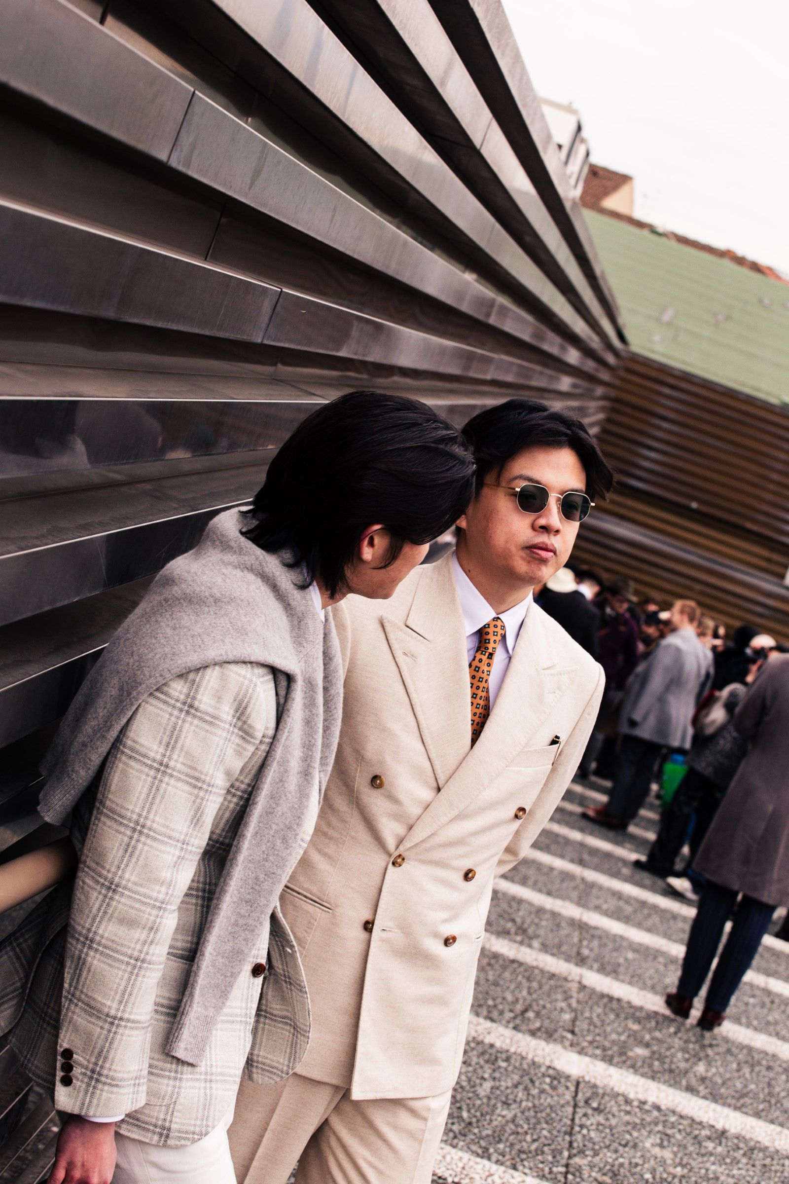 Cette édition de Pitti Immagine Uomo a été particulièrement passionnante cette année, avec des nouveautés et des invités qui en ont fait un événement remarquable. Les nombreuses occasions mondaines élégantes ont ajouté à l'excitation, avec le dîner de Brunello Cucinelli qui a été particulièrement mémorable cette année, ainsi que les défilés de Todd Snyder et Magliano qui ont ouvert la voie à toutes les étincelantes podiums que nous découvrirons lors de la Milan Fashion Week qui débutera demain. Le véritable spectacle, cependant, a été comme toujours celui des invités qui ont envahi les rues de la ville et la Fortezza da Basso.