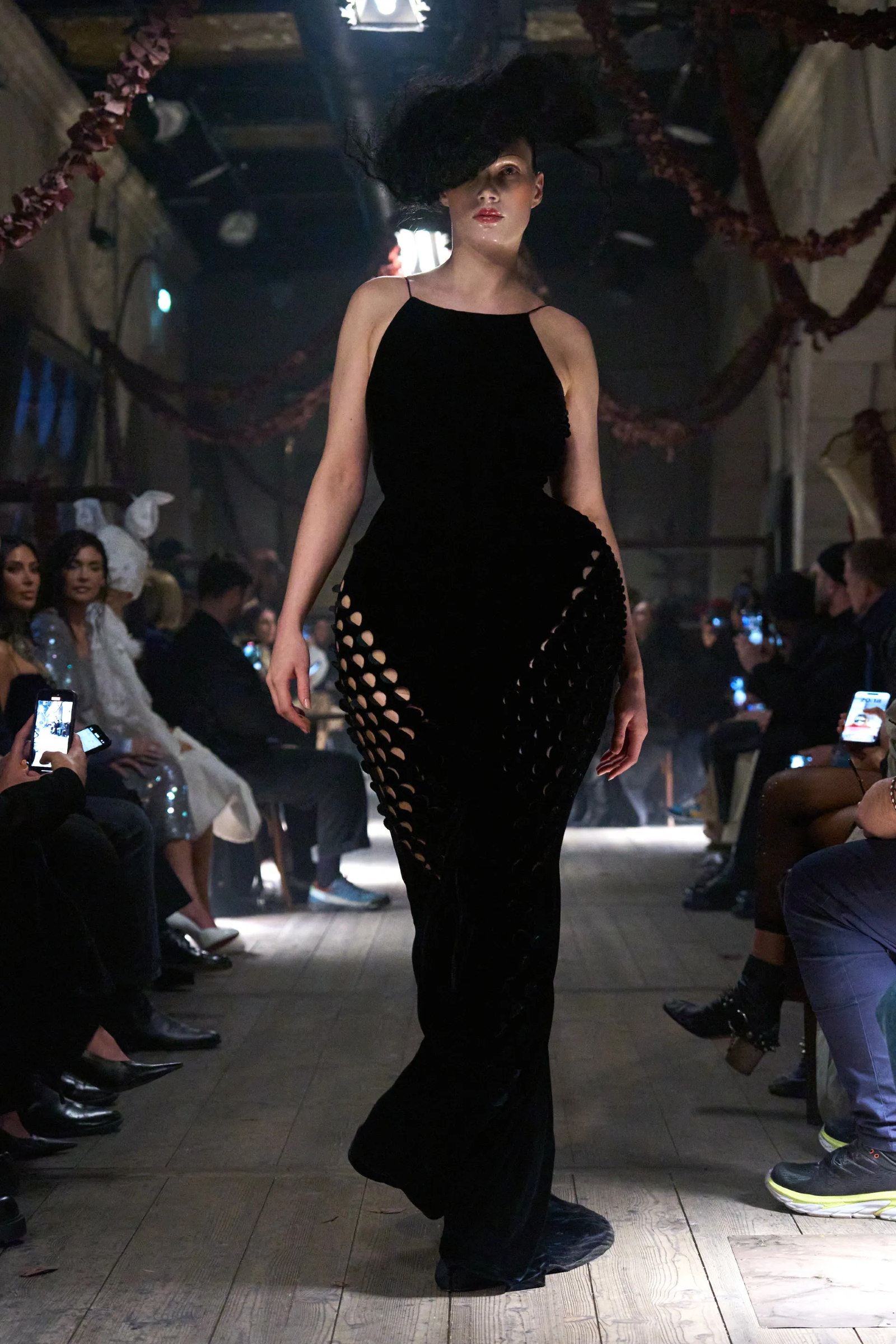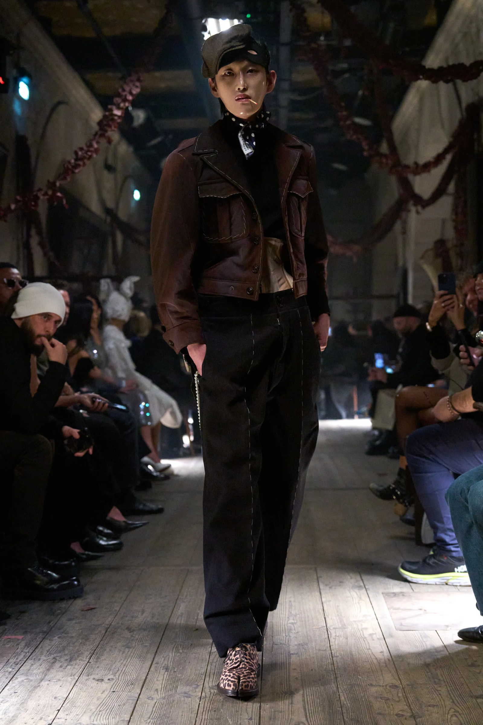 Pour revenir à Baudelaire, le plus maudit et parisien de tous les poètes, et à son poème Danse Macabre qui aurait pu servir de parfait accompagnement au spectacle, il serait facile d'associer le vers éternel « Ô charme d'un néant follement attifé ! » à ce défilé de squelettes et de chair nue, à ce mélange de mort et de désir. Il est juste et sacré que la mode, en tant que domaine d'expression de la créativité humaine, explore toutes les nuances de la palette émotionnelle, même les plus crues et troublantes. Pendant trop longtemps, nous avons eu l'habitude de concevoir la mode comme un luxe en soi et avons relégué en marge de l'arène les voix les plus « maudites » de designers comme Jun Takahashi, qui a dû s'excuser d'avoir utilisé des papillons dans son dernier défilé ; d'Henri Alexander Levy et de son monde merveilleusement corrompu ; de Ziggy Chen, et ainsi de suite. Depuis des années, la mode, en tant qu'industrie, pliée aux besoins du commerce, doit parler au public en termes toujours positifs et ensoleillés, reniant une gamme de sentiments humains aussi viscéraux que sombres qui prévalaient dans la " décennie de la transgression " dominée à la fois par Galliano et McQueen, où l'on pouvait encore esthétiser le mal sans offenser la sensibilité morale probe et irréprochable du public - si vous avez la nostalgie d'un défilé qui le prouve, allez revoir la transgressive présentation SS99 d'Andrew Groves ou les macabres présentations de Carol Christian Poell. La mode aime cultiver les rêves, c'est vrai, mais elle a oublié de fréquenter ses cauchemars.