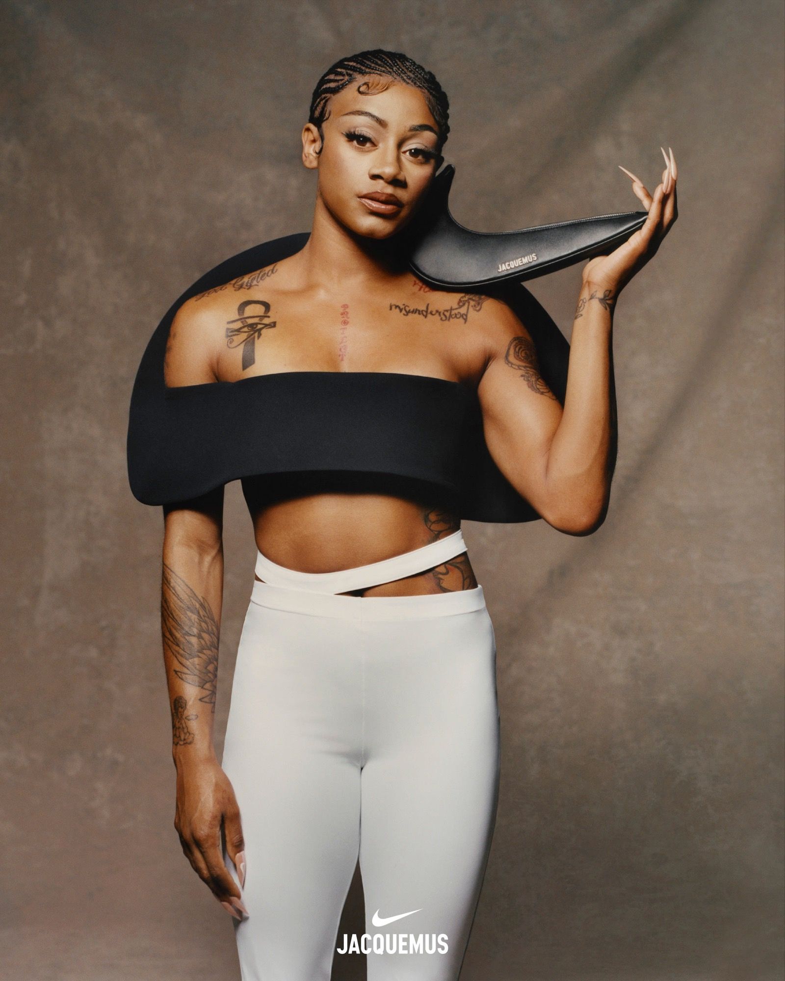 Pour sa dernière collection en collaboration avec Nike, le chouchou de ces dames a encore visé en plein mille. Réputé pour maîtriser l'art de la communication comme nul autre et constamment associé aux personnalités les plus marquantes de notre époque, Jacquemus, après sa collaboration avec Bad Bunny pour "Les Sculptures", a jeté son dévolu sur Sha'Carri Richardson comme actrice principale de sa nouvelle campagne. Si vous ne suivez pas de près l'athlétisme, ce nom doit sûrement vous être familier, car Sha'Carri Richardson a rapidement acquis une renommée mondiale non seulement car c’est la femme la plus rapide au monde, mais aussi pour son style unique et sa personnalité affirmée qui transcendent le monde du sport. Sa présence et son attitude en font bien plus qu'une athlète de renom ; du haut de ses 23 ans, elle est une figure emblématique de la jeunesse, de la mode et de l'expression de soi dans la culture contemporaine.