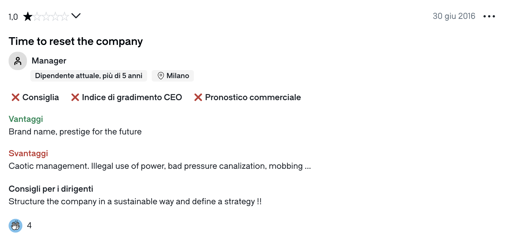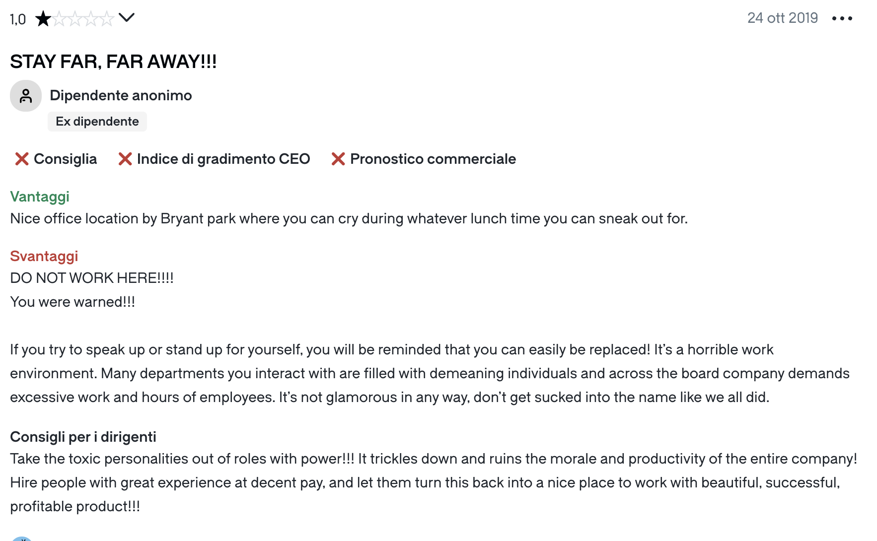 Comme toutes les plateformes d'avis, l'objectif principal de Glassdoor a toujours été de rééquilibrer les rapports de pouvoir au sein des lieux de travail, en offrant aux employés un espace où ils peuvent à la fois louer l'entreprise pour laquelle ils travaillent, favorisant ainsi sa croissance, et dénoncer ses problèmes et sa mauvaise gestion, en détruisant la réputation de la marque. Certaines des plus grandes multinationales, comme Nike, Facebook et Electronic Arts, ont rapporté que lors des entretiens d'embauche, les candidats présentent eux-mêmes aux RH certains avis négatifs de Glassdoor, demandant des éclaircissements sur les accusations. Les nouvelles générations ne sont plus prêtes à tolérer un environnement de travail où les abus et la toxicité sont acceptés comme faisant partie intégrante de la « formation » ou comme nécessaires pour la croissance professionnelle. Ces derniers mois, nous avons assisté à une vague d'accusations de violations des droits humains et des normes du travail contre des géants de la mode comme Dior et Giorgio Armani, détruisant ainsi ce « voile de silence » qui a protégé l'industrie de la mode pendant des décennies. Ce phénomène a mis en lumière une prise de conscience accrue de la part des travailleurs, qui n'ont plus peur de dénoncer publiquement les injustices et les comportements inappropriés. Les entreprises, de leur côté, sont désormais contraintes de faire face à une transparence croissante, ce qui rend difficile la dissimulation de pratiques inappropriées derrière leur image lisse.
