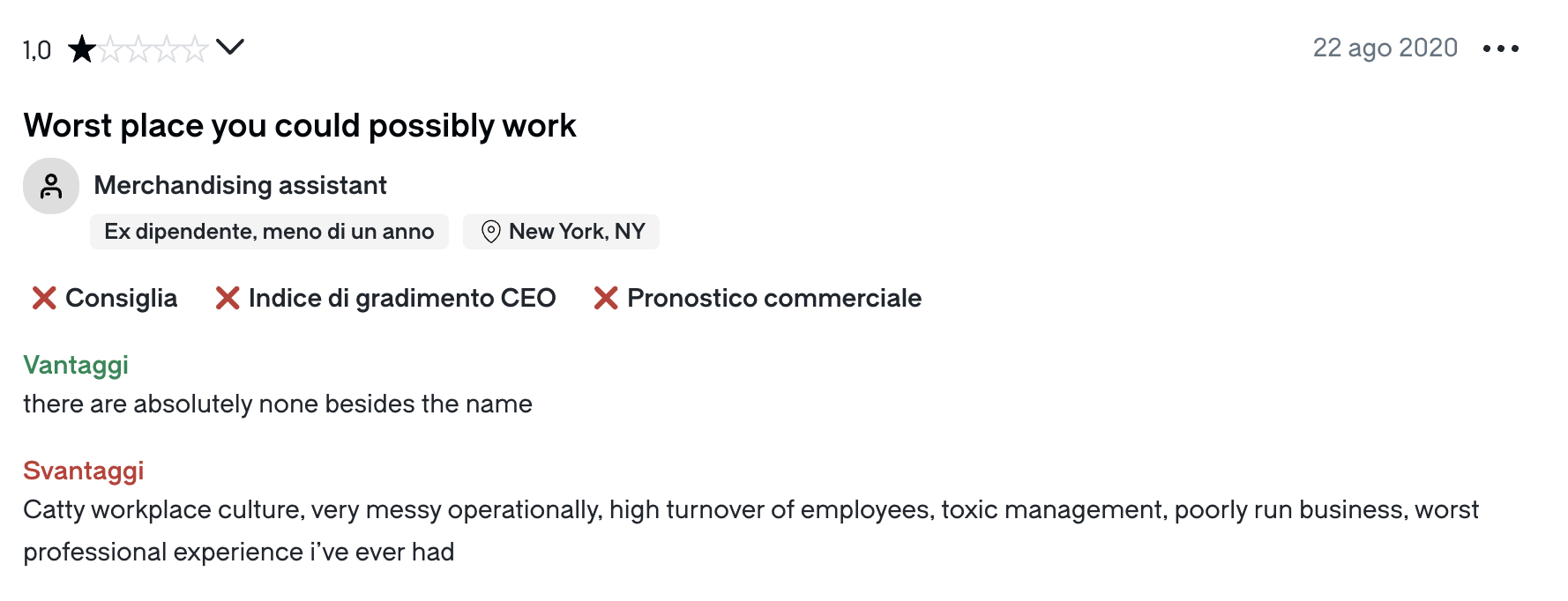 «Pour : seulement la machine à café Nespresso, Contre : Par où commencer ? Un peu tout» : est l'un des commentaires que l'on peut lire sur Glassdoor, une plateforme en ligne fondée en 2008 qui permet aux utilisateurs de laisser des avis sur leur lieu de travail, actuel ou passé. L'idée derrière le site est née d'une erreur du fondateur Rich Barton, magnat du web, qui, pendant son mandat en tant que PDG de Zillow (la plateforme américaine de vente et d'achat de biens immobiliers), avait accidentellement imprimé au bureau les évaluations annuelles des employés, avec des notes sur l'augmentation - ou non - de tout le personnel de l'entreprise. En en parlant des années plus tard avec quelques amis, Tim Besse et Robert Hohman (actuel PDG), l'eureka est arrivée. Dans un monde rempli de plateformes comme LinkedIn, Indeed et autres, il manquait une plateforme qui renverse le récit, mettant le travailleur au centre. Glassdoor n'est pas une décharge émotionnelle liée aux frustrations professionnelles, mais plutôt un allié pour les personnes en phase de recrutement en quête d'avis impartiaux sur leur futur lieu de travail. Bien que l'accent ait évolué avec le temps au-delà des simples avis, Glassdoor se concentre désormais sur la création de profils d'entreprise, en prenant en compte divers paramètres allant de la moyenne des salaires, des avantages, aux processus de sélection. Ces dernières semaines, Glassdoor a fait sensation en étant au centre des accusations d'abus contre la designer anglaise Phoebe Philo et son entreprise. De là est née une autre question : comment les marques de mode traitent-elles leurs employés ?