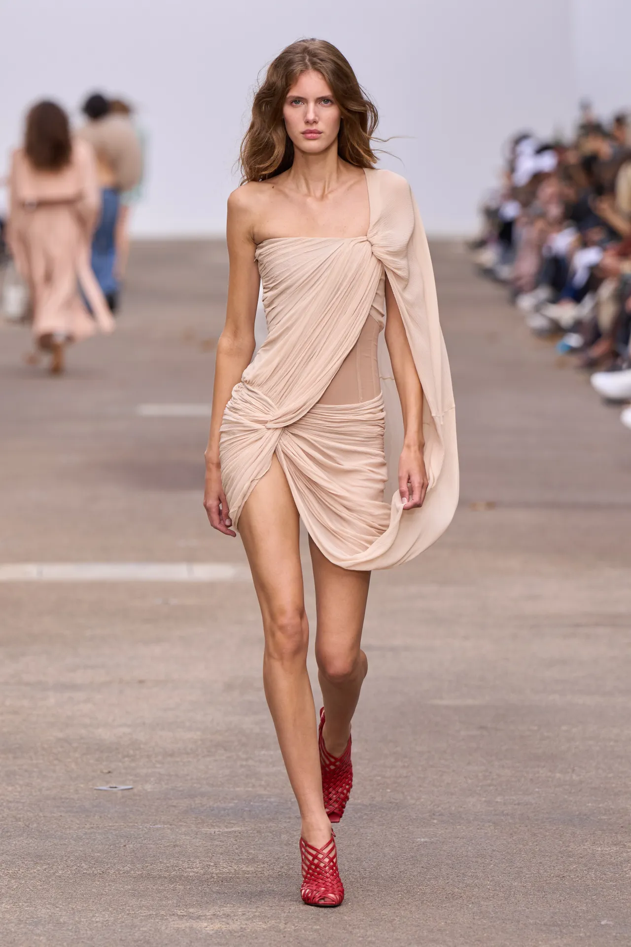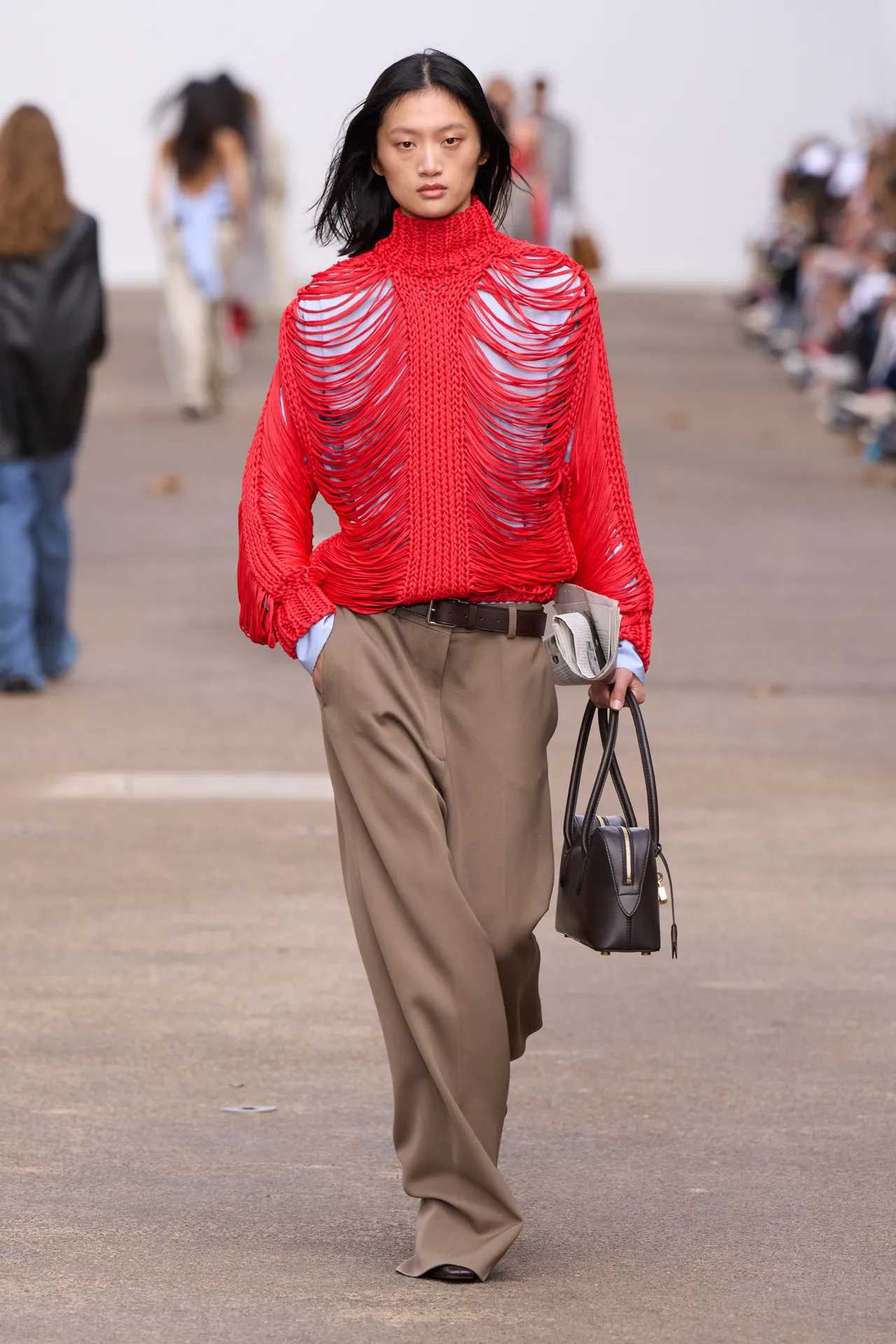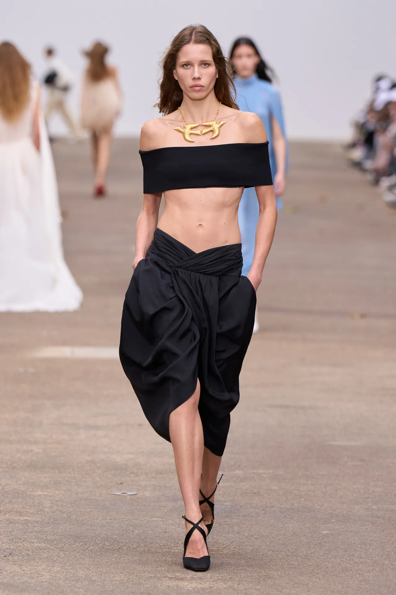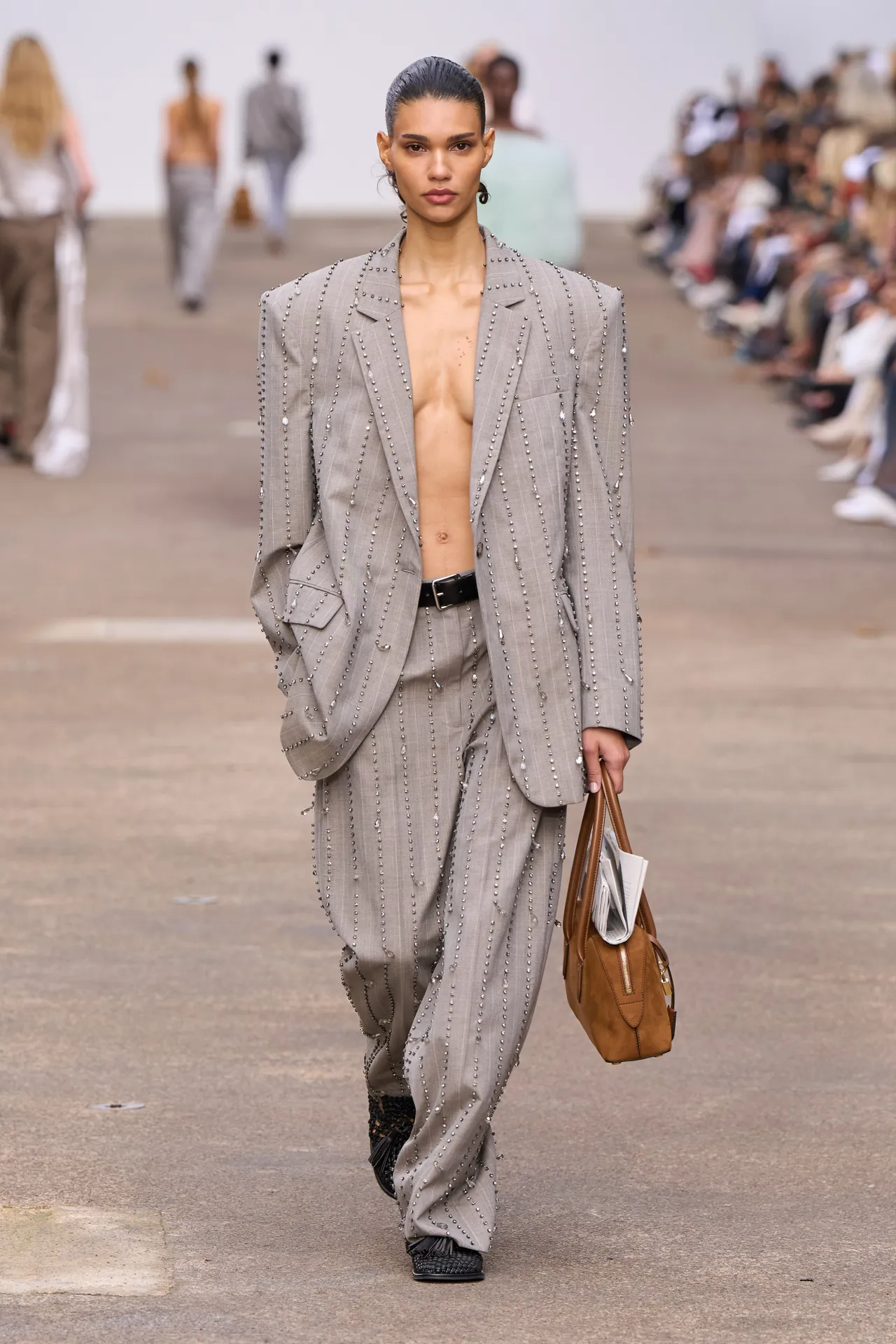 Hier, sous un ciel ouvert - terrain de jeux de tous les oiseaux de Paris - gris mais miraculeusement sec pour une fin de mois de septembre, était présentée la collection SS25 de Stella McCartney. Après un manifesto narré par Helen Mirren, invitant son audimat à sauver ce que l’on aime tant qu’il en est encore temps, les mannequins entrent et marchent en rythme sur When Doves Cry de Prince, un titre minutieusement choisi non pas pour le vibrato impressionnant de son interprète mais surtout pour le message qu’il délivre. En effet, le thème principal autour duquel s'articule la collection entière est celui des oiseaux, dans un subtil et poétique appel à l’aide mais surtout dans une incitation à les protéger quoi qu’il en coûte. Mais ne nous méprenons pas : pas de fausses plumes de piètre qualité ou de tenues d’autruches exagérées sur le tarmac qui a fait office de podium au défilé hier matin, seulement des détails discrets, réalisés dans des couleurs parfois neutres parfois plus criardes, le tout dans un hommage équilibré et bien pensé à la nature et toutes les merveilles qui la composent.