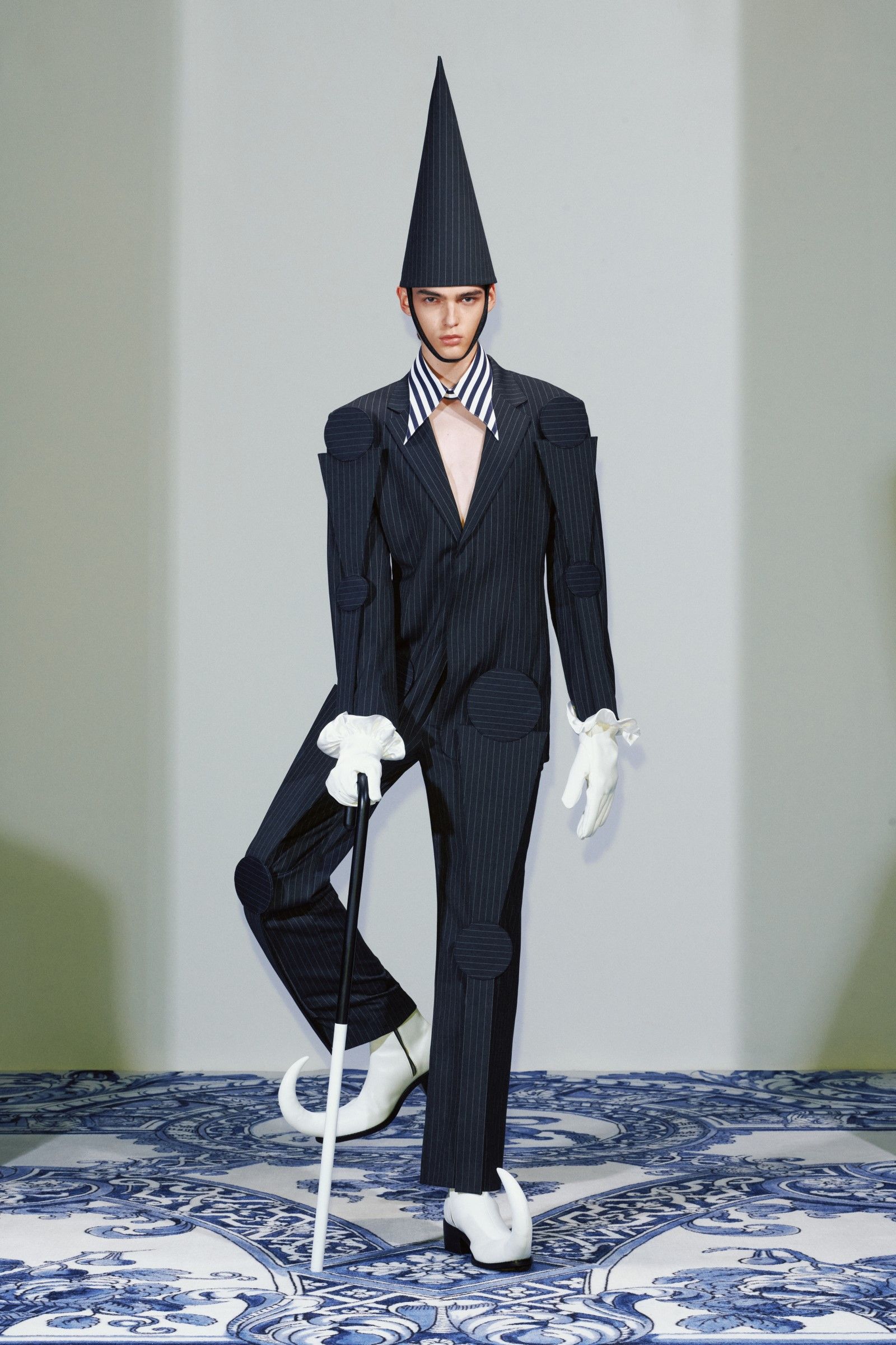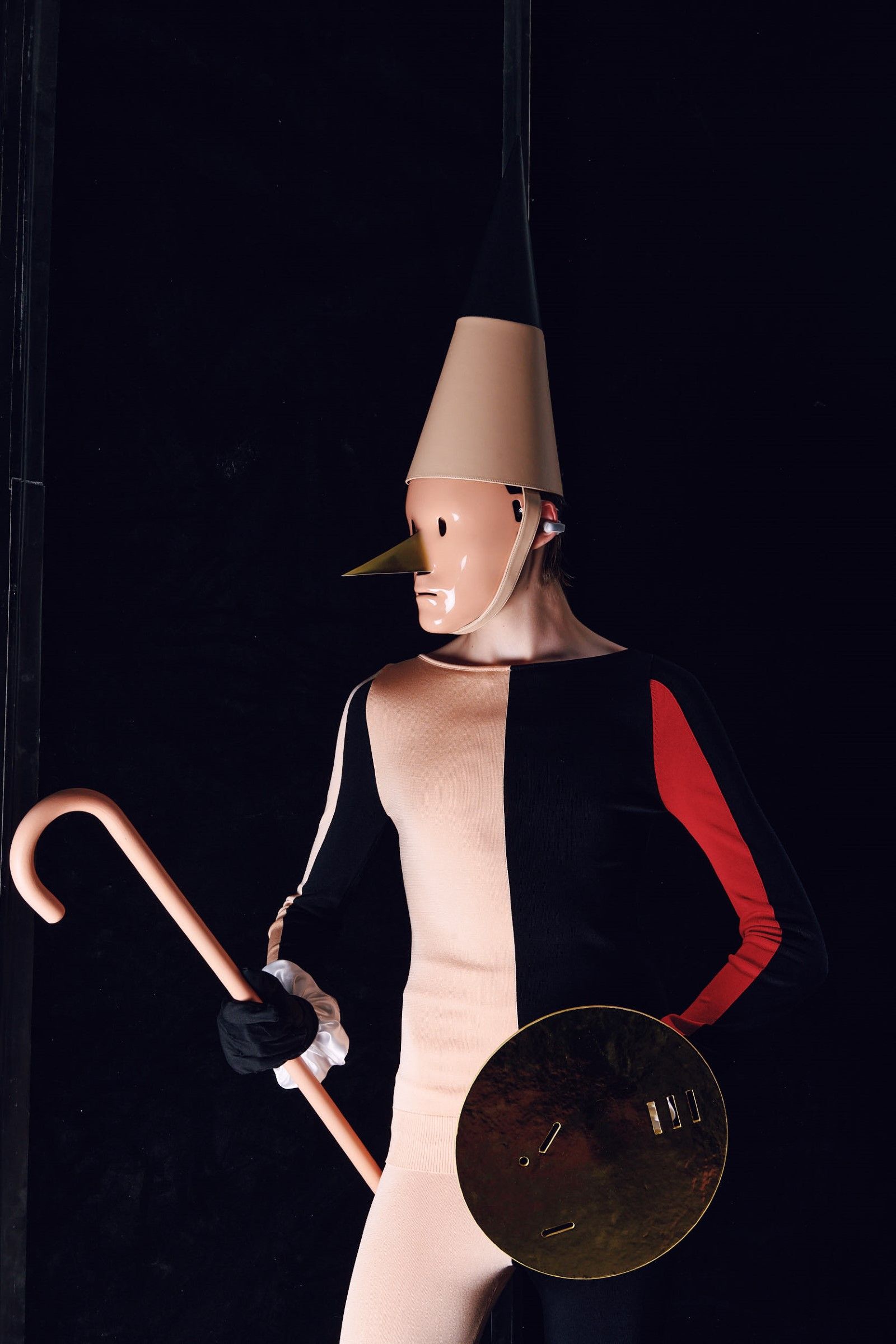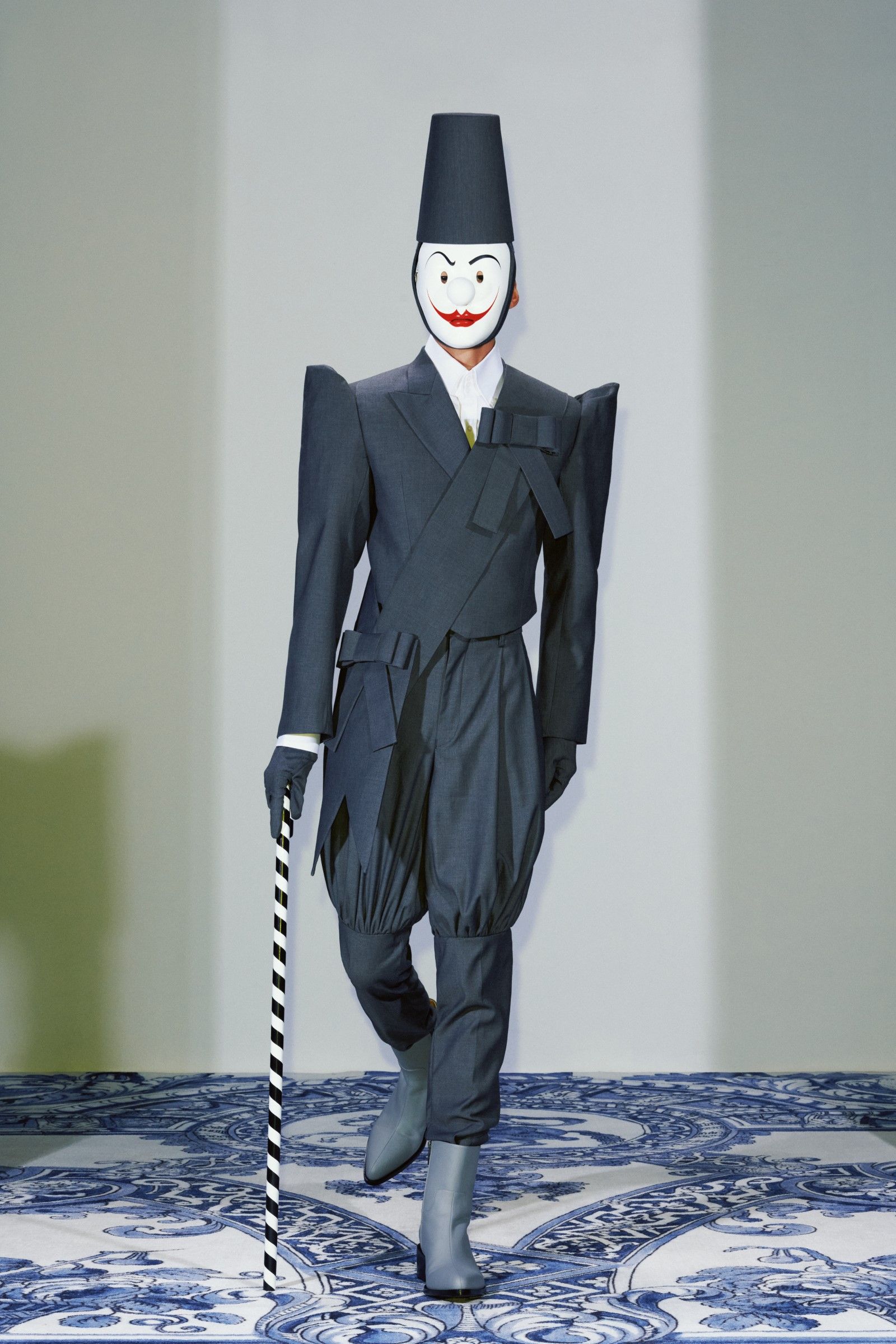 Pour Zhou, le design de mode va au-delà de la simple création de vêtements ; c'est une forme de narration. «Notre marque n'a jamais eu de soi-disant stratégie. Nous avons toujours insisté pour exprimer ce que nous voulions exprimer», dit-il. «Le design de mode est en réalité un moyen par lequel je peux visualiser rapidement et directement un monde tel que je le vois. Chaque saison, je me connecte d'abord au concept que je veux exprimer, puis j'ajoute les vêtements et les personnages appropriés pour compléter toute l'histoire. Pour moi, c'est plus semblable à un projet artistique, à un film ou à tout autre moyen d'expression. Je pense que c'est ce qui résonne auprès du public qui nous apprécie». Et ces récits se construisent souvent les uns sur les autres, créant un réseau de thèmes interconnectés. Parfois, l'attention est portée sur une vision macroscopique d'un univers parallèle ; d'autres fois, elle se concentre sur l'évolution d'un seul personnage. Ce mélange de narration horizontale et verticale fait en sorte que «les mêmes “vêtements” qui apparaissent dans chaque collection ne sont pas liés aux tendances de la mode». Dans le cas de ANACHRONOTALE, qui reprend des éléments historiques théâtraux européens tels que le ballet de cour et la commedia dell'arte, tout était nouveau. «C'est un thème que je n'ai jamais utilisé auparavant et j'aime déconstruire des thèmes que je n'ai jamais utilisés à ma manière», nous a-t-il confié. «J'aime déconstruire des thèmes que je n'ai pas encore utilisés à ma manière. Je veux voir comment ma manière de procéder peut remodeler un sujet avec lequel tout le monde est déjà familier, afin de dissiper les perceptions enracinées des gens sur ces concepts. Avant de commencer à travailler sur cette collection, je pensais réaliser une version de science-fiction de contes pour enfants comme “Alice au pays des merveilles”. Cette idée est restée à la base».