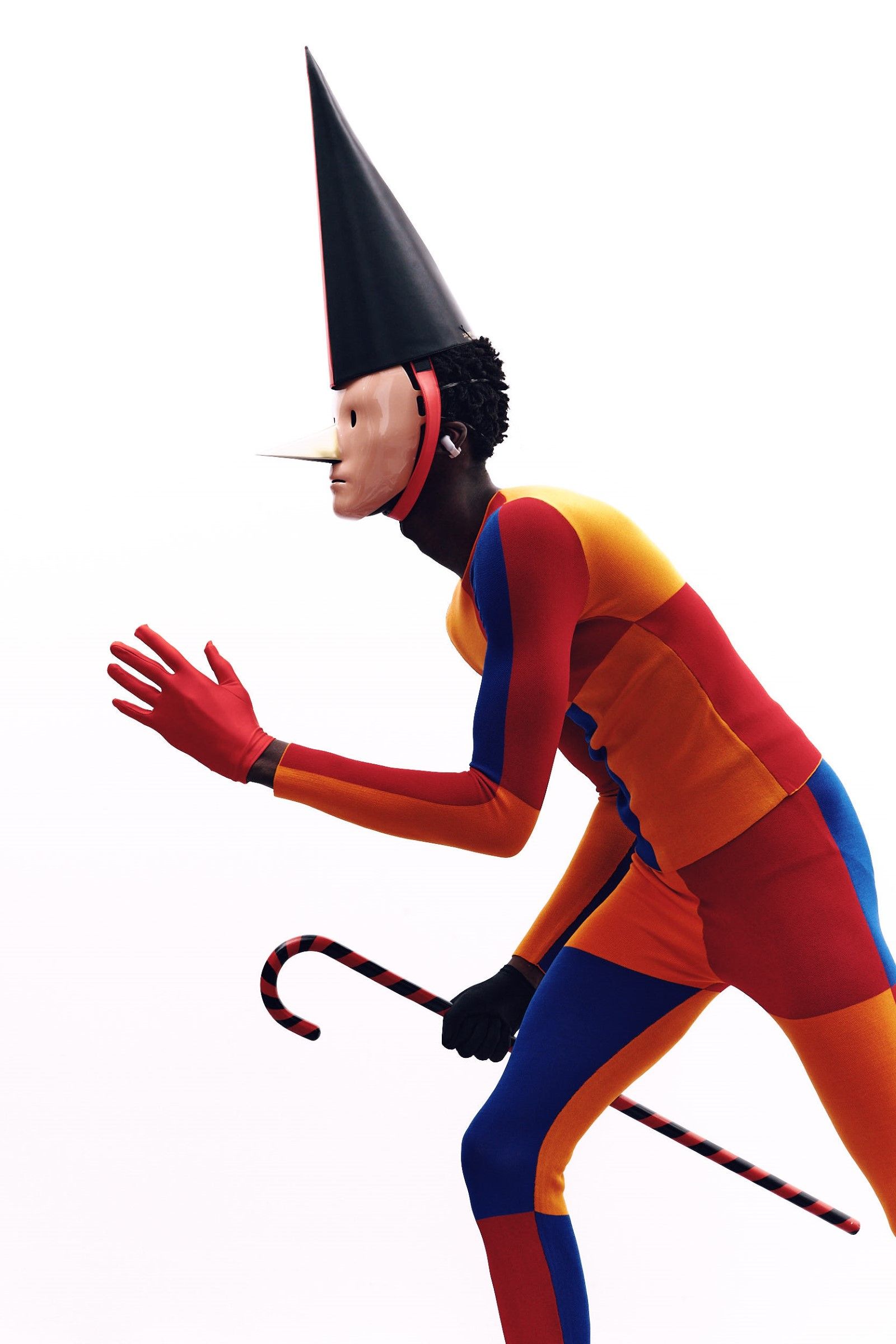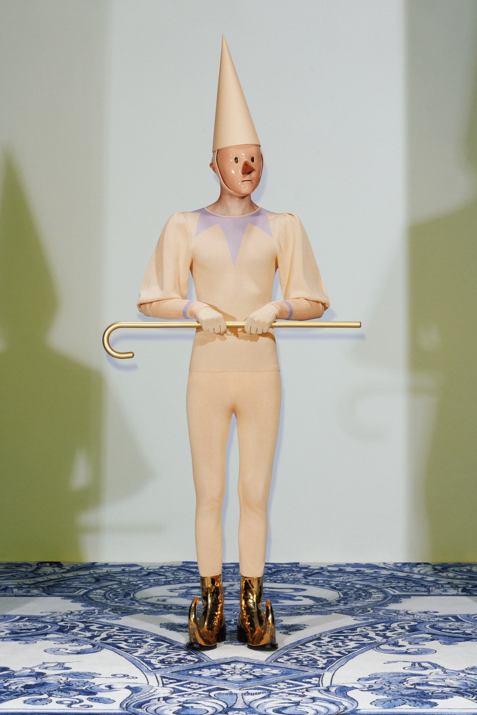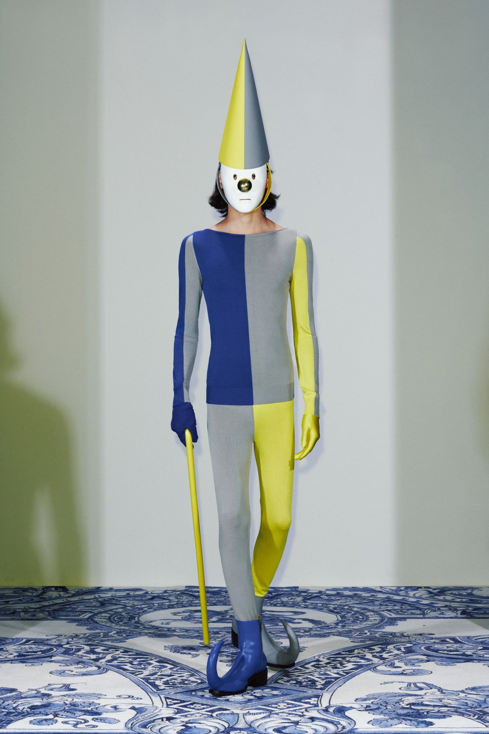 Pour Zhou, le design de mode va au-delà de la simple création de vêtements ; c'est une forme de narration. «Notre marque n'a jamais eu de soi-disant stratégie. Nous avons toujours insisté pour exprimer ce que nous voulions exprimer», dit-il. «Le design de mode est en réalité un moyen par lequel je peux visualiser rapidement et directement un monde tel que je le vois. Chaque saison, je me connecte d'abord au concept que je veux exprimer, puis j'ajoute les vêtements et les personnages appropriés pour compléter toute l'histoire. Pour moi, c'est plus semblable à un projet artistique, à un film ou à tout autre moyen d'expression. Je pense que c'est ce qui résonne auprès du public qui nous apprécie». Et ces récits se construisent souvent les uns sur les autres, créant un réseau de thèmes interconnectés. Parfois, l'attention est portée sur une vision macroscopique d'un univers parallèle ; d'autres fois, elle se concentre sur l'évolution d'un seul personnage. Ce mélange de narration horizontale et verticale fait en sorte que «les mêmes “vêtements” qui apparaissent dans chaque collection ne sont pas liés aux tendances de la mode». Dans le cas de ANACHRONOTALE, qui reprend des éléments historiques théâtraux européens tels que le ballet de cour et la commedia dell'arte, tout était nouveau. «C'est un thème que je n'ai jamais utilisé auparavant et j'aime déconstruire des thèmes que je n'ai jamais utilisés à ma manière», nous a-t-il confié. «J'aime déconstruire des thèmes que je n'ai pas encore utilisés à ma manière. Je veux voir comment ma manière de procéder peut remodeler un sujet avec lequel tout le monde est déjà familier, afin de dissiper les perceptions enracinées des gens sur ces concepts. Avant de commencer à travailler sur cette collection, je pensais réaliser une version de science-fiction de contes pour enfants comme “Alice au pays des merveilles”. Cette idée est restée à la base».