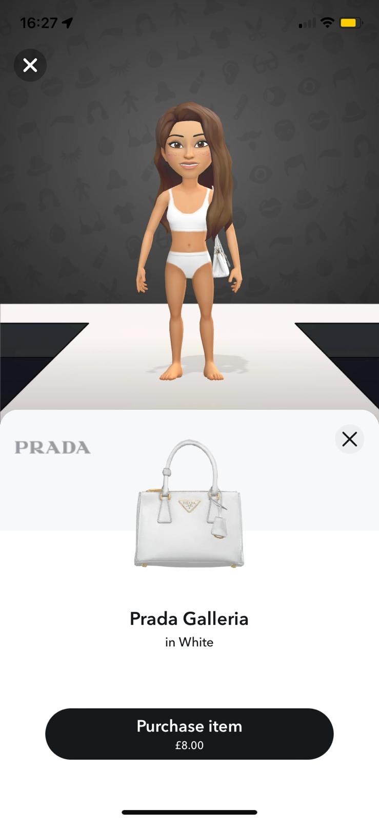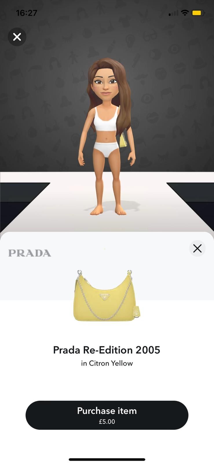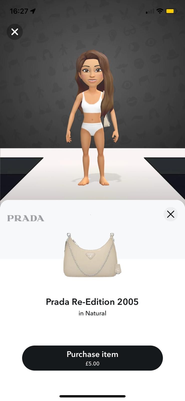 Le groupe Prada a récemment annoncé son dernier partenariat avec Snapchat : à partir du 19 novembre, les utilisateurs de Snapchat pourront débloquer 34 vêtements virtuels de marque pour leurs bitmojis - avatars Snapchat. En tête de liste, on retrouve les favoris de la génération Z : le Small Galleria en cuir Saffiano et le sac MiuMiu wander, disponibles respectivement pour 8 et 5 livres sterlings. Les utilisateurs peuvent également acheter une sélection de vêtements, 14 vêtements MiuMiu, comme le micro-short en laine, et 18 pièces Prada, dont la casquette en nylon. Suite à leur succès, 8 autres modèles de sacs ont été lancés en décembre, dont le Prada Re-Edition 2005 en 3 couleurs (£2).