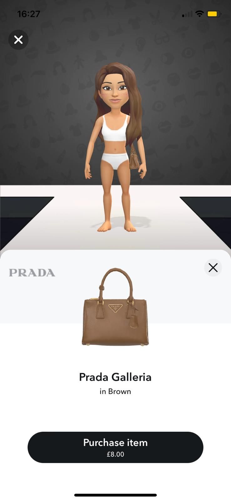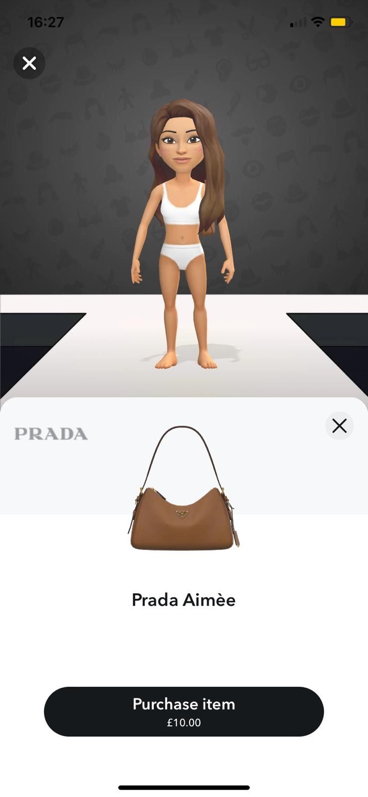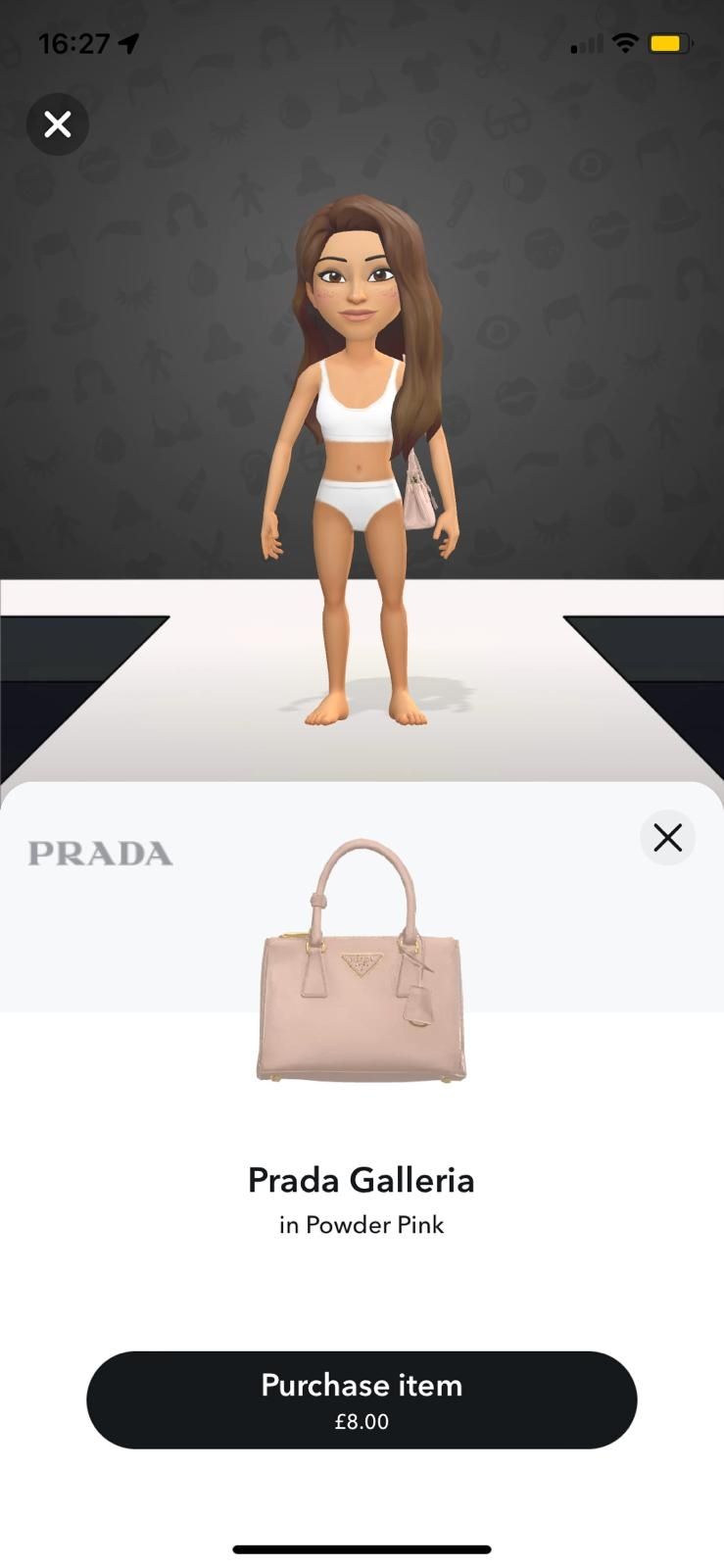 Le groupe Prada a récemment annoncé son dernier partenariat avec Snapchat : à partir du 19 novembre, les utilisateurs de Snapchat pourront débloquer 34 vêtements virtuels de marque pour leurs bitmojis - avatars Snapchat. En tête de liste, on retrouve les favoris de la génération Z : le Small Galleria en cuir Saffiano et le sac MiuMiu wander, disponibles respectivement pour 8 et 5 livres sterlings. Les utilisateurs peuvent également acheter une sélection de vêtements, 14 vêtements MiuMiu, comme le micro-short en laine, et 18 pièces Prada, dont la casquette en nylon. Suite à leur succès, 8 autres modèles de sacs ont été lancés en décembre, dont le Prada Re-Edition 2005 en 3 couleurs (£2).