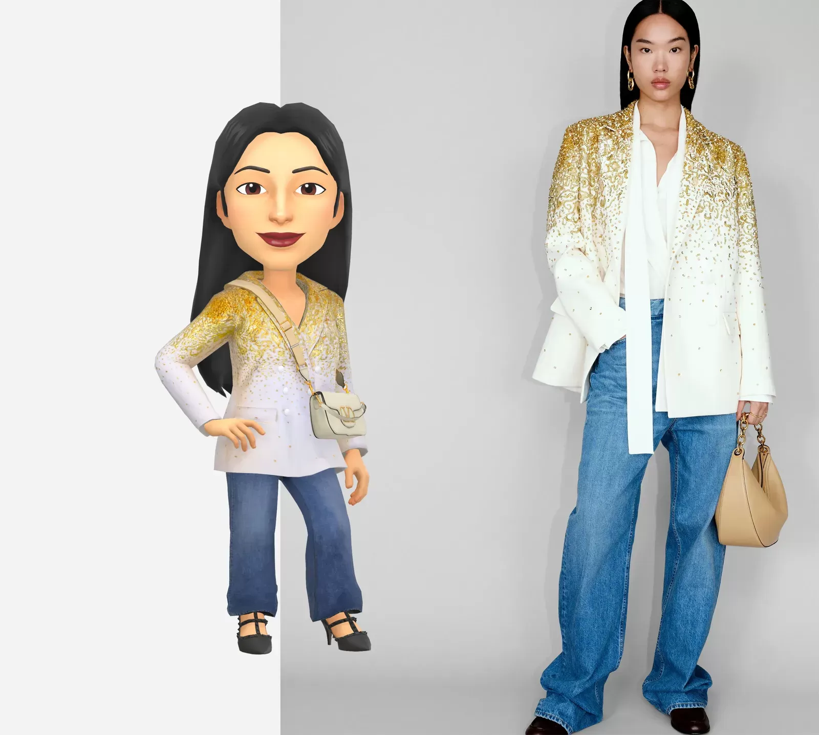 Sur Pinterest, un tableau de 138 épingles présente des « idées de tenues esthétiques et mignonnes pour votre Bitmoji ». Sur TikTok, on trouve des comptes entièrement consacrés à la mode Bitmoji. Les utilisateurs accumulent des milliers de likes pour leurs inspirations de tenues Bitmoji et leurs tutoriels. D'autres recréent des tenues de célébrités IRL sur Snapchat, ou aident les autres à trouver un article de niche - ce qui témoigne du désir toujours plus grand de créer un look Bitmoji qui soit personnel et distinct de la masse. Quelques semaines après ce partenariat avec le groupe Prada, Versace a également lancé son it-bag, le Tag, sur Snap, en six couleurs. Bitmoji a été créé pour, selon les termes du PDG de l'époque, « redonner un sens à l'identité dans les conversations numériques ». Mais aujourd'hui, il semble que l'identité deviennent elles-mêmes une condition préalable à la conversation numérique. L’auto-façonnage numérique est-elle la prochaine frontière de la mode ?