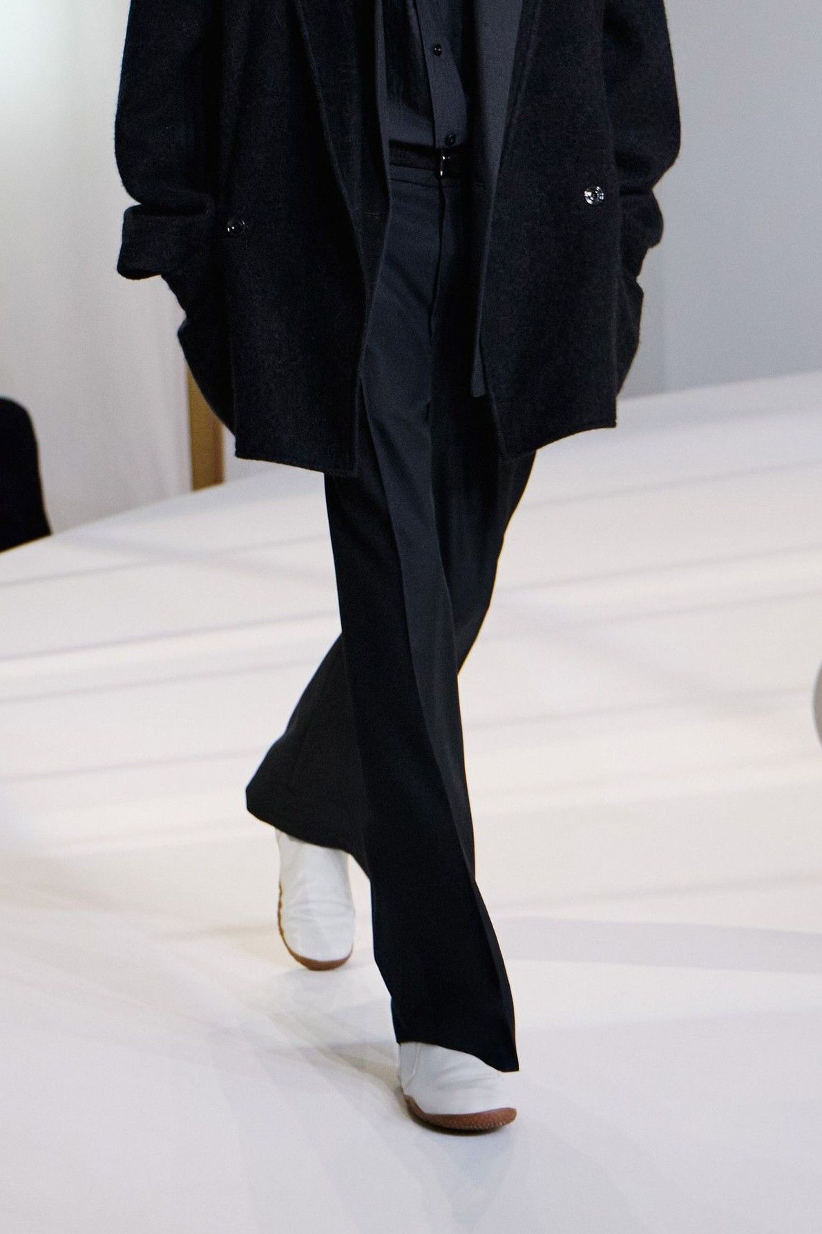 Même Louis Vuitton, lors de son dernier défilé hivernal en janvier, a proposé une chaussure sans lacets à mi-chemin entre une bottine et une sneaker, en daim clair avec une pointe arrondie. Les chaussures sans lacets font déjà largement partie du paysage grand public mais les plus grandes marques de sneakers étoffent encore leur gamme. La tendance a été lancée en décembre, lorsque la New Balance 1096 L est apparue sur le podium du show Junya Watanabe FW24. Il s’agit d’une snoafer, une chaussure qui allie le raffinement d’un mocassin au confort d’une sneaker. L’intention de New Balance était de conjuguer formel et informel. Une démarche similaire semble être celle de Hoka, connue pour ses chaussures de course, qui a lancé il y a quelques jours le Speed Loafer, avec la forme d’un mocassin à pompons doté d’une semelle trail. Récemment, les chaussures sans lacets et les sabots ont gagné en popularité en tant que chaussures techniques, grâce à la tendance des sneakers ultrafines, et ont été aperçues, entre autres, dans les derniers shows de Giorgio Armani et Magliano, ou encore dans les collections hivernales de Auralee et Lemaire. Ce dernier, d’ailleurs, a dans ses slippers basses l’un de ses best-sellers.