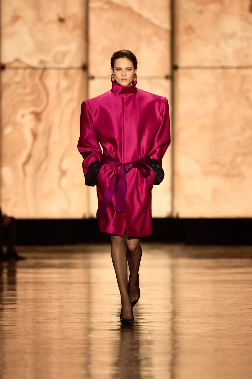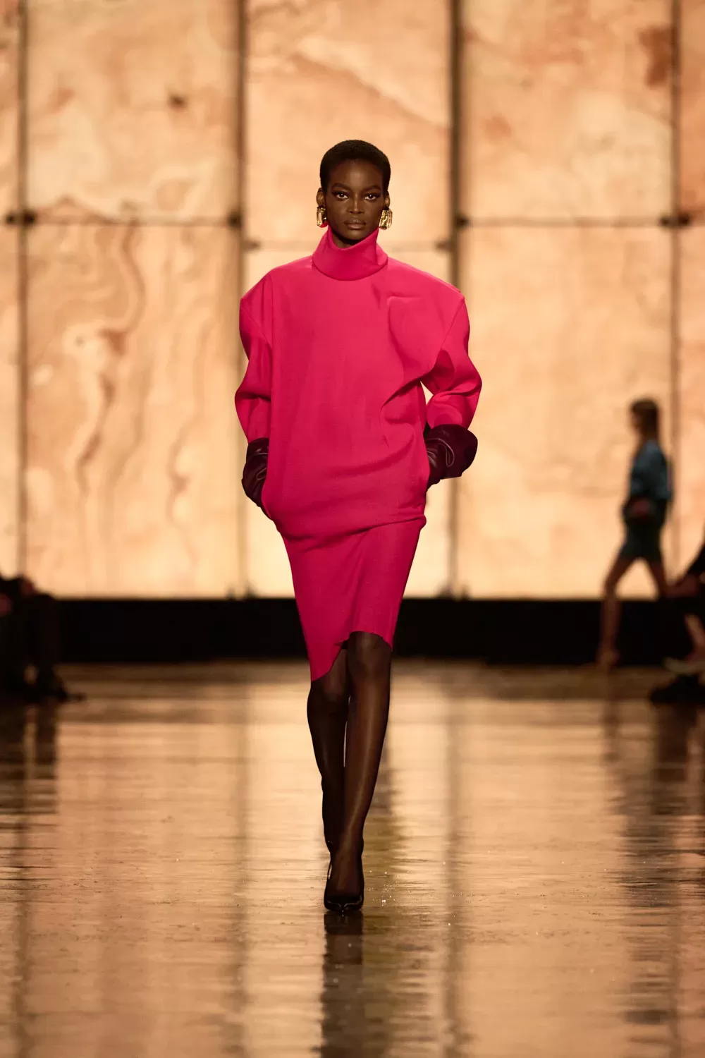 Une nonchalance pas si nonchalante, mais bien recherchée par Anthony Vaccarello, qui explique que pour sa collection FW25, il voulait « quelque chose de propre, sans ornementation, sans décoration, sans... rien ». « Je voulais simplement pousser la silhouette dans ces couleurs saturées - c'est la plus grande quantité de couleurs que j'ai jamais faite - dans du satin lavé et du jersey technique, que je n'avais jamais utilisé auparavant, pour donner une impression d'élasticité. J'ai vraiment aimé cette idée d'élasticité, de mouvement - tout cela pour donner un sentiment de liberté. Il n'y a pas vraiment de structure ; les volumes viennent de la forme des vêtements et des tissus, et tout est léger.» a-t-il déclaré. Cette collection est un exercice stylistique consistant à lâcher prise afin de laisser les formes et les couleurs parler d’elle-même, sans tomber ni dans le ridicule, ni dans le trop, ni dans le déguisement. Elle est également un exercice de spontanéité et d'honnêteté pour Vaccarello. Honnêteté envers lui-même, envers son rôle de maître de la création, et envers l’industrie toute entière. Une honnêteté qui nous prend par les sentiments, fait ressortir les couleurs cachées en nous, et