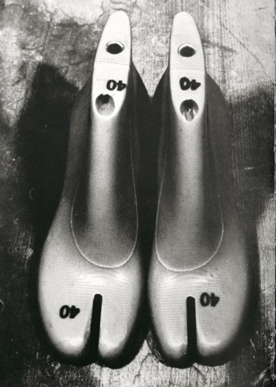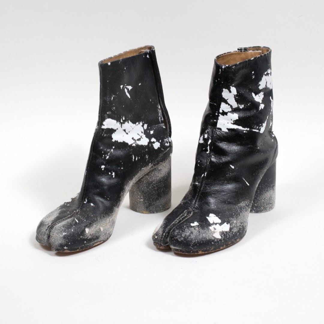 Si nous nous sommes jusqu’à présent étendus surtout sur les concepts et les innovations abstraites proposées par le couturier tout au long de sa carrière, il est temps de mettre en lumière une pièce, ou plutôt la pièce de Martin Margiela qui a révolutionné à son niveau la mode et ses chaussures: les tabis. Impossible de parler du travail du créateur belge sans mentionner la paire de chaussures au bout fendu, contenues en 2025 dans le dressing de n'importe quel fashion digne de ce nom. En 1988, à l’aube du premier défilé de la Maison, Martin Margiela, désireux de créer une chaussure inédite, s'inspire des travailleurs japonais et de leurs chaussures plates en coton, observées précédemment lors d’un voyage à Tokyo. Il revisite cette silhouette rappelant le sabot d’un animal en l’adaptant à une botte en cuir à talon bloc et, pour lui donner un twist original qui marquera les esprits, enduit les chaussures de peinture rouge afin que les mannequins laissent des empreintes fendues sur le podium. Cette mise en scène donnera au tabi la réputation de symbole de l’anti-mode, mais, jugées marginales, elles restent longtemps réservées aux adeptes de cette esthétique particulière, jusqu’à un regain d’intérêt en 2021, puis un véritable retour de flamme en septembre 2023 lorsqu’une story time sur un vol de tabis devient virale. Depuis, les tabi de Maison Margiela, déclinées en ballerines, Mary-Janes, mocassins et brogues, connaissent une popularité fulgurante, en tête des tendances selon la classification de Lyst.