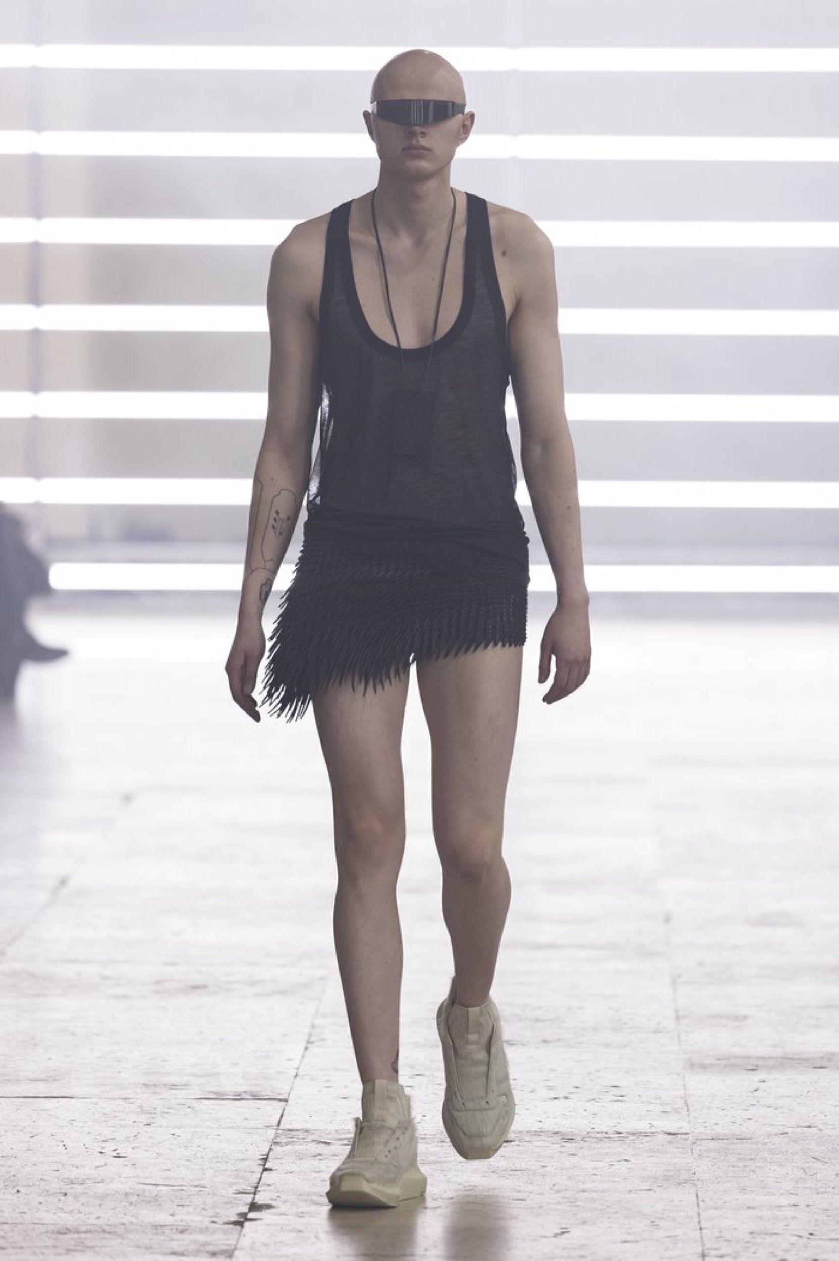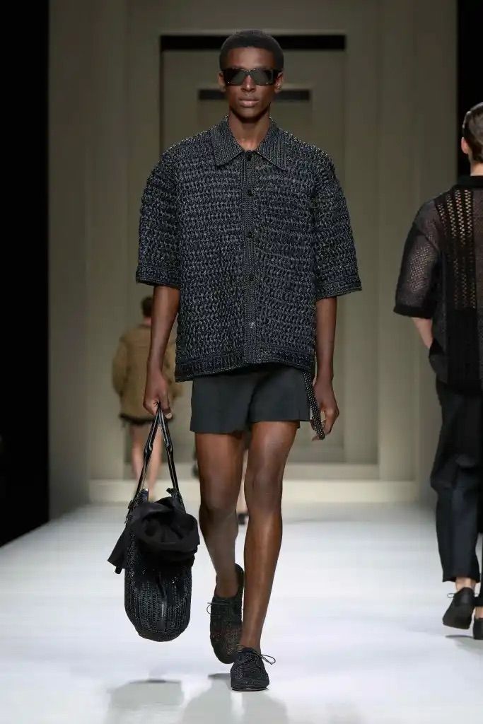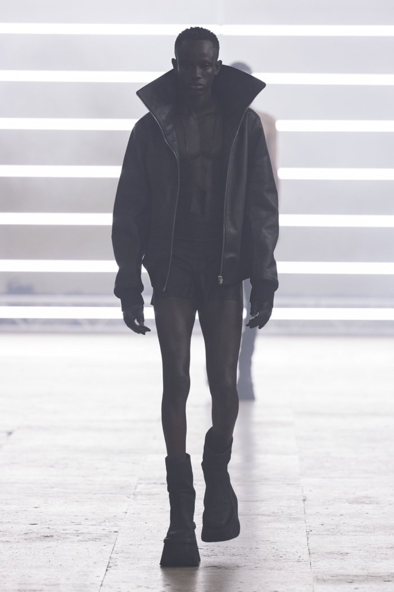 Il y a aussi ceux qui préfèrent les boxers aux shorts, désormais de la même longueur. Dsquared2, dans la Resort 2026, installée dans une sorte de bain public, propose le caleçon classique décoré de boutons à l’avant, porté avec une veste inspirée des uniformes des Marines, et un ensemble de maillots de bain stylisés en version urbaine, loin des plages. Maximilian Davis pour Ferragamo, s’inspirant des styles des danseurs classiques, interprète cette tendance en SS25 avec des panta‑jupes en maille portés sur des débardeurs superposés et des vestes froissées. Jonathan Anderson, dans son dernier défilé homme pour Loewe (SS25), propose des shorts en jean à effet brillant, comme plastifiés, tandis que sa dernière collection estivale éponyme (JW Anderson) remplace les micro‑shorts par des cyclistes tout aussi courts, portés avec des maxibombers rappelant des cardigans tricotés et des bottines en daim. Certains designers accentuent l’aspect érotique et sexy évoqué par cette pièce, comme Rick Owens, qui en FW25 propose des shorts en cuir portés avec d’épais bottes, tandis que Ludovic de Saint Sernin et LGN Louis Gabriel Nouchi célèbrent le charme queer des short shorts. Le premier les marie en SS25 à des ballerines en cuir, le second insère dans sa collection SS25 des shorts inspirés des tenues de lutteurs, portés avec chemises décolletées et vestes en cuir.