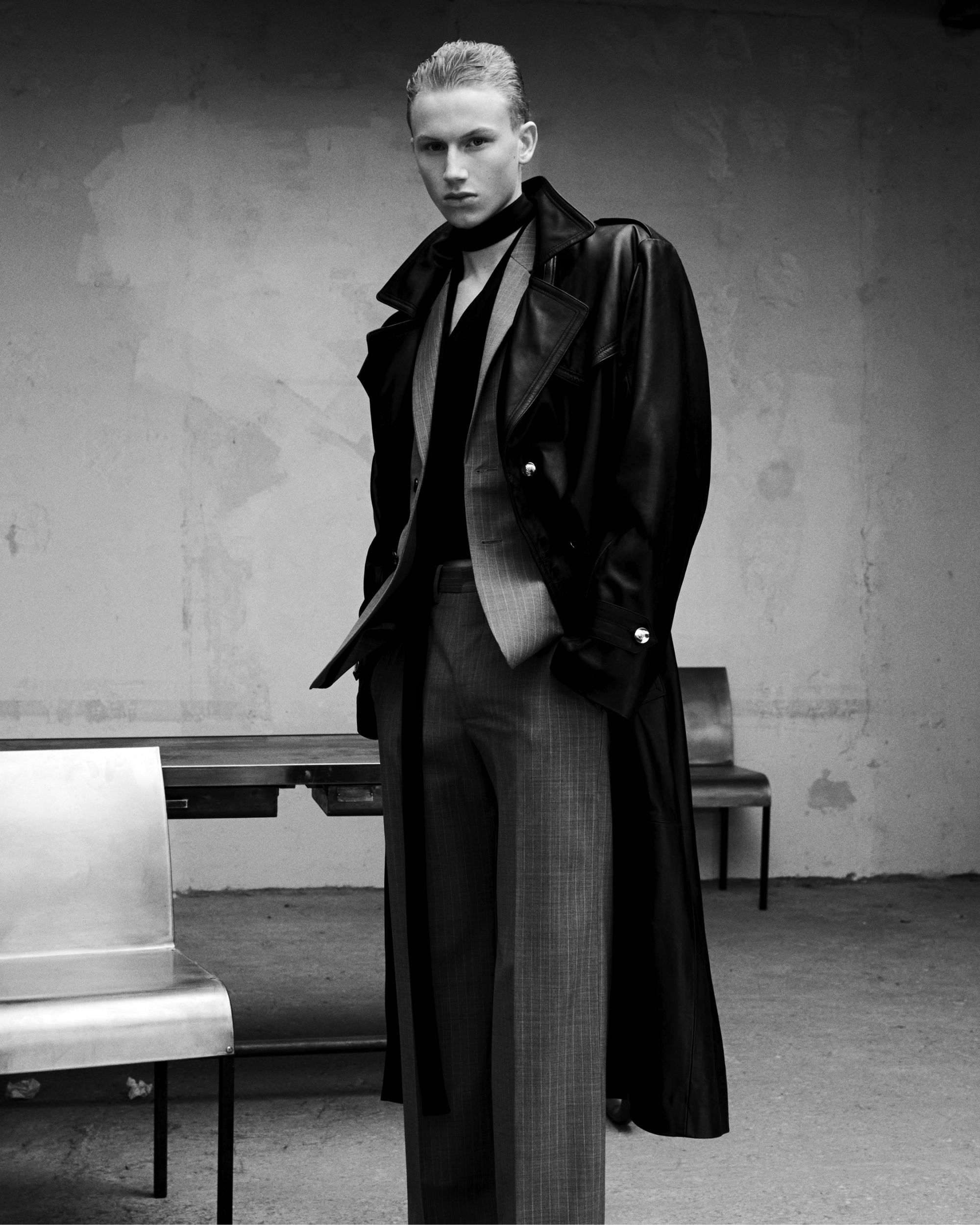 En latex, cuir et chemises ouvertes, les protagonistes de la campagne rendent un hommage direct non seulement à l’ADN de la marque, mais également aux héroïnes iconiques du photographe Helmut Newton. La campagne incarne plusieurs choses en une : la dualité (entre la rigueur nécessaire au bureau et la sensualité exprimée par ses silhouettes découvertes), la séduction, mais surtout le pouvoir. A travers un power dressing désarmant, la garde-robe créée et présentée par de Saint Sernin dans L’Entretien est une garde-robe faite sur mesure pour le 9-to-5-to-9, pour passer du bureau à la boîte de nuit au bureau de nouveau sans devoir repasser par la case maison. Poursuivant le dialogue permanent de la maison avec la culture BDSM et son exploration sans compromis de la sexualité, cette campagne pour la collection FW25 de Saint Sernin annonce le ton pour une année pour le moins débridée pour le jeune créateur et sa marque éponyme.