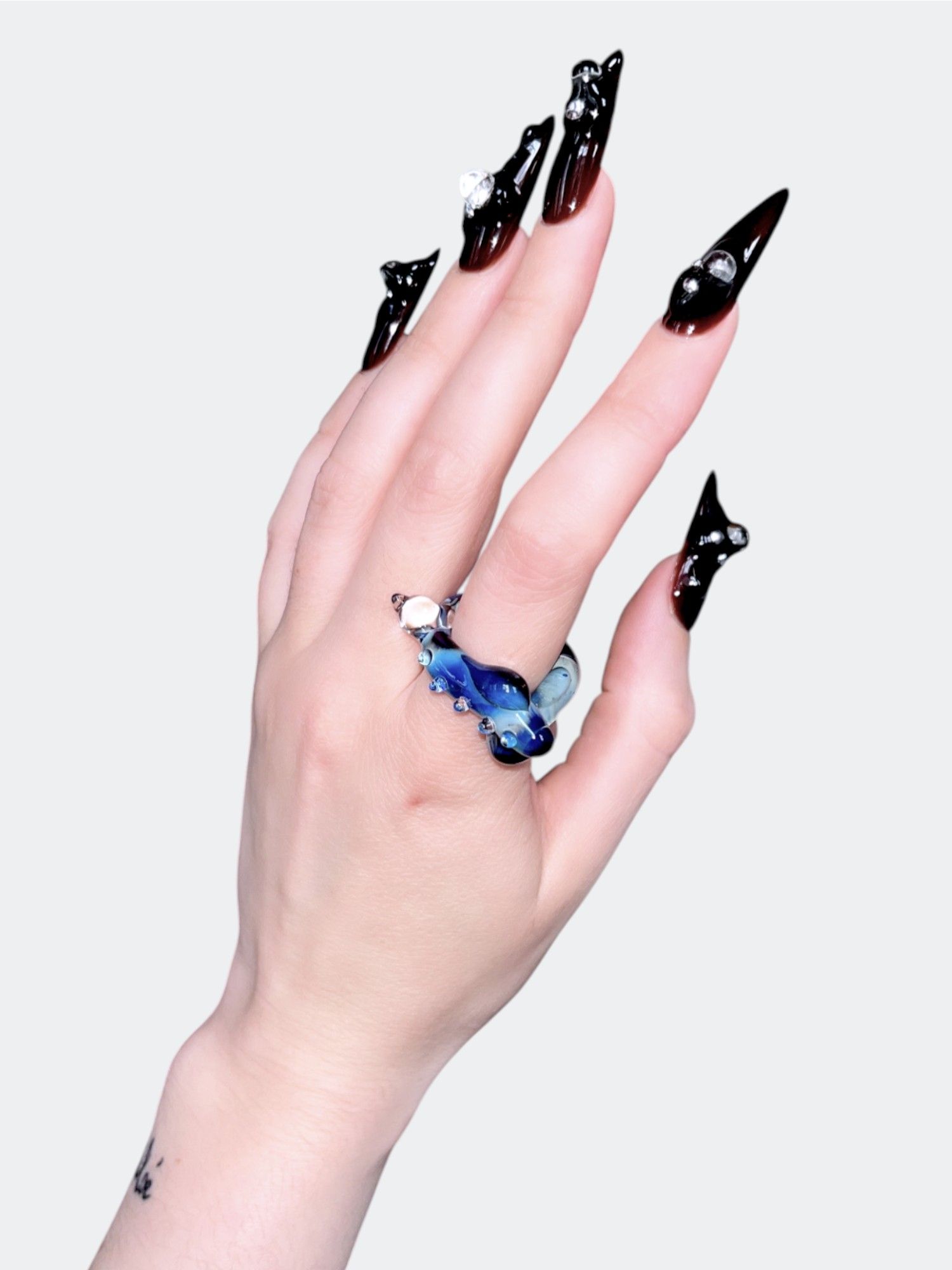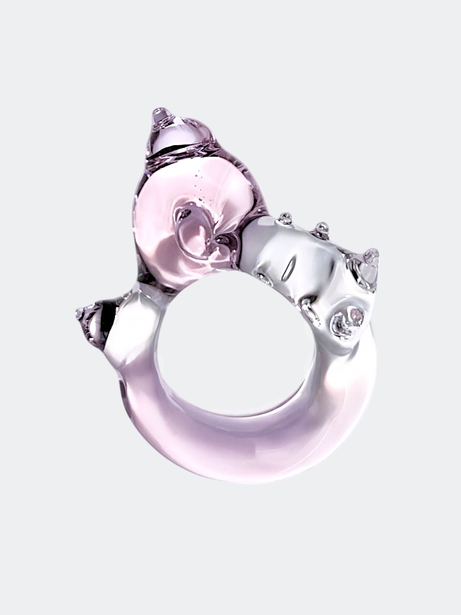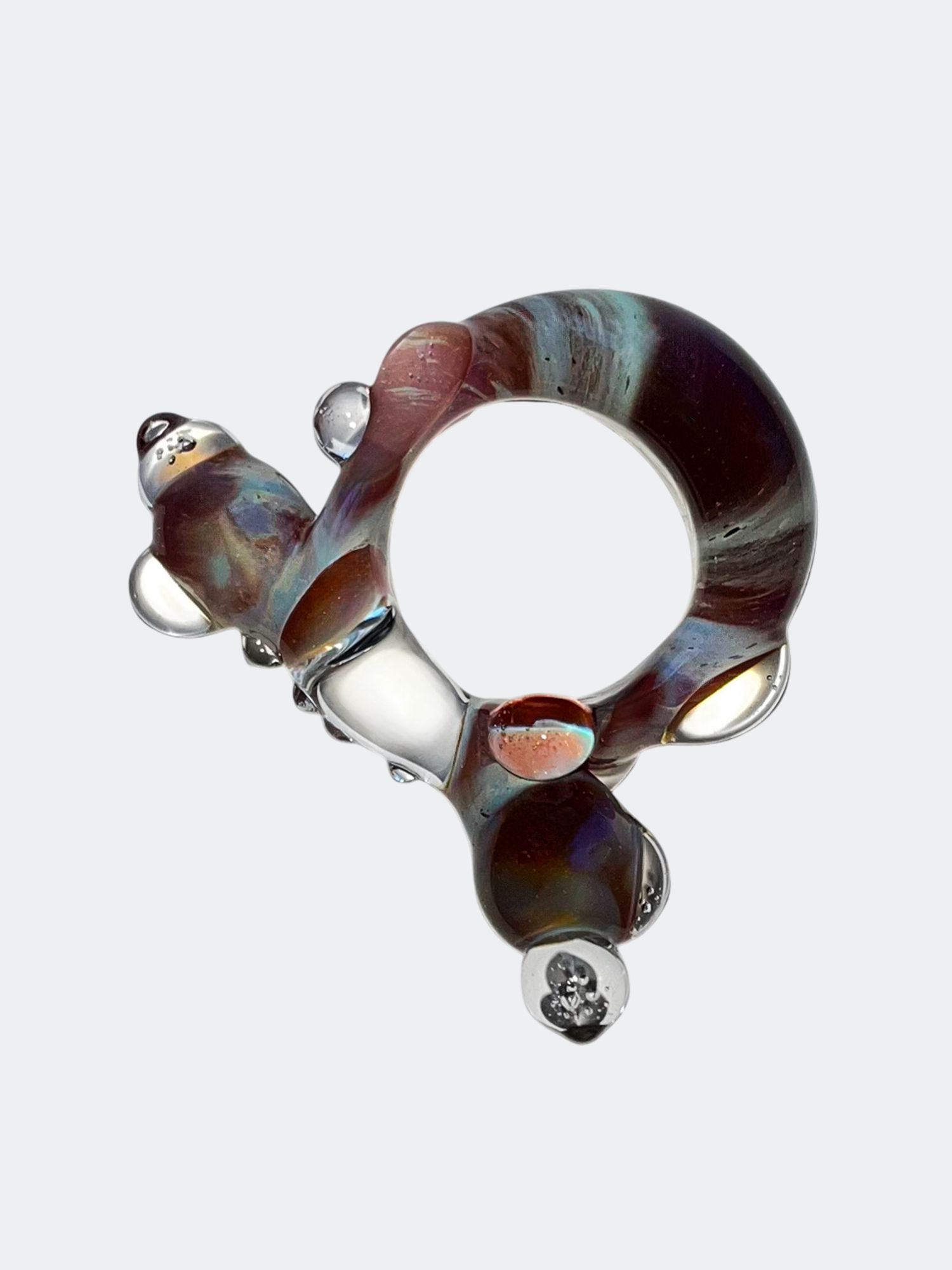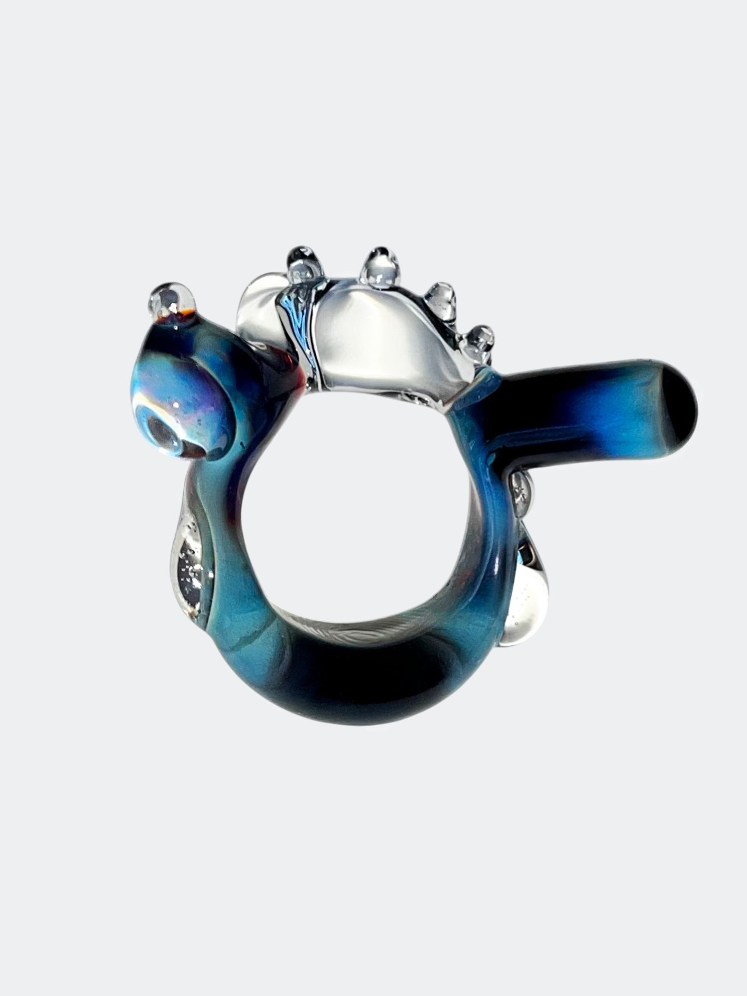 Et en parlant de matière, bien qu'elle adore manier le chalumeau, Chloé n’a pas choisi le chemin le plus facile, en optant pour le verre borosilicaté pour ses bijoux. « J’ai commencé avec le verre sodocalcique, une autre typologie de verre qui est plus sensible, plus liquide, plus enclin aux chocs thermiques. C’est quand j’ai commencé à travailler les bagues que je suis passée au borosilicate. C’est un verre plus résistant aux chocs thermiques, plus pérenne dans le temps, qui garde tout son éclat. Il est utilisé notamment en verrerie de laboratoire, en aéronautique, en optique. Il supporte mieux les chocs, même si bien sûr cela reste du verre, un matériau délicat dont il faut prendre soin. Il demande aussi une température de chauffe plus élevée » continue-t-elle.