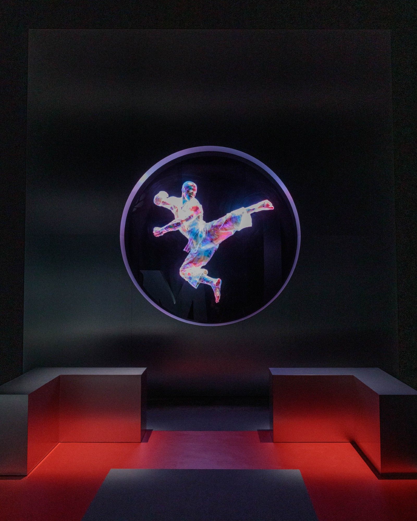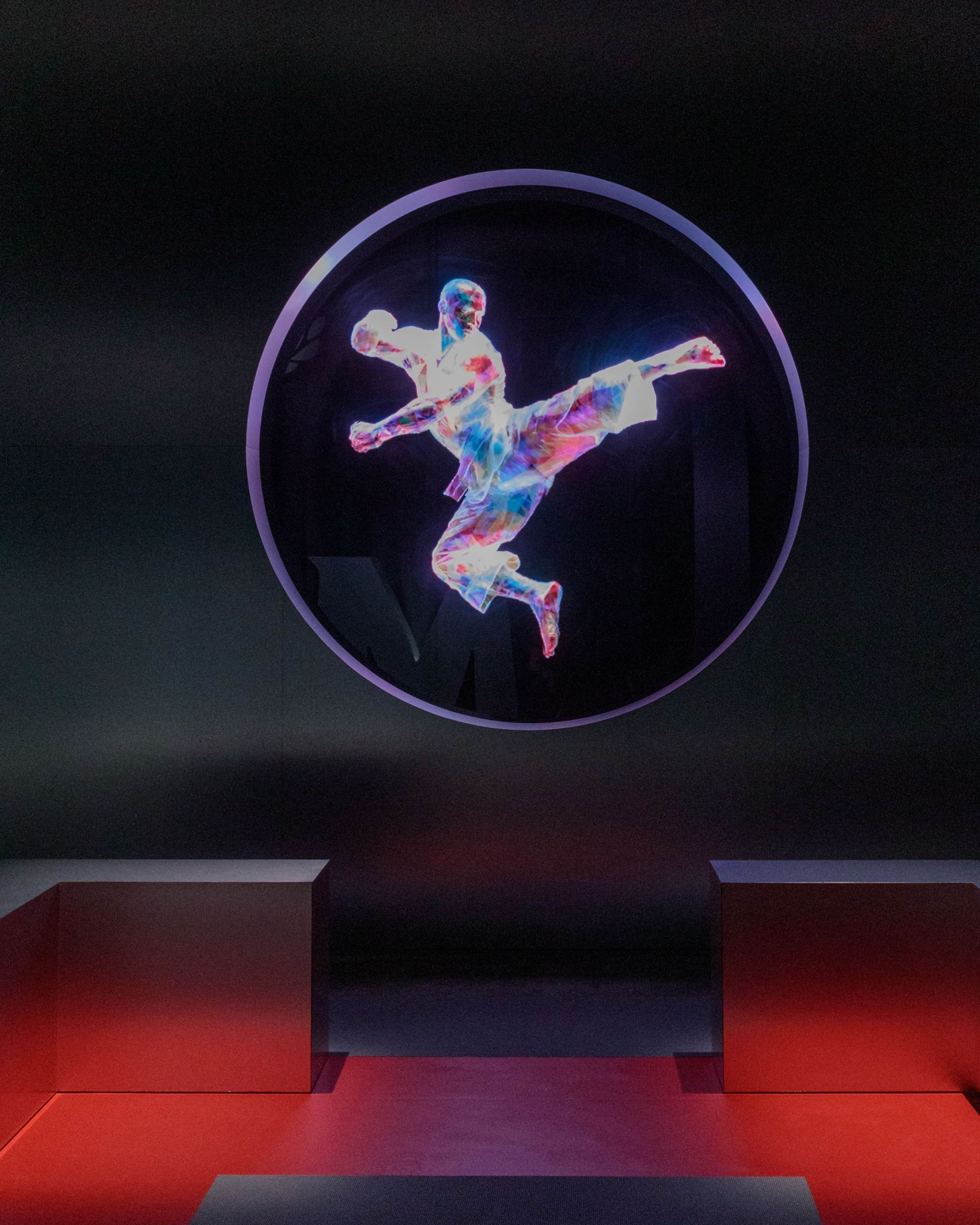 Et même l’espace d’exposition, appelé MCM: THE ART OF MOTION, a amplifié ce thème cinétique. La Casa degli Artisti s’est transformée en dojo du design, où des installations immersives et des narrations ont transformé le mouvement en art. Un hologramme IA, inspiré du Taekwondo et développé avec Capsa Studio, a représenté le cœur de l’expérience. Une union de l’Orient et de l’Occident qui a au centre l’identité globale de MCM. «L’année prochaine, nous avons célébré notre 50e anniversaire. Fondée à Munich, MCM a gagné en popularité dans la scène rap et hip-hop de New York dans les années 80. Lorsque Mrs. Kim a acquis la marque il y a 20 ans, la culture pop coréenne est arrivée. C’était comme un avion parti de Munich, avec escales à New York et en Corée, qui a recueilli des influences de chaque culture. MCM n’a pas été seulement allemand ou coréen : il est global. Nous avons puisé inspiration dans le hip-hop, l’artisanat allemand, la culture pop coréenne et les idées high-tech. Ils ont semblé opposés, mais leur friction et défi les ont unis.»