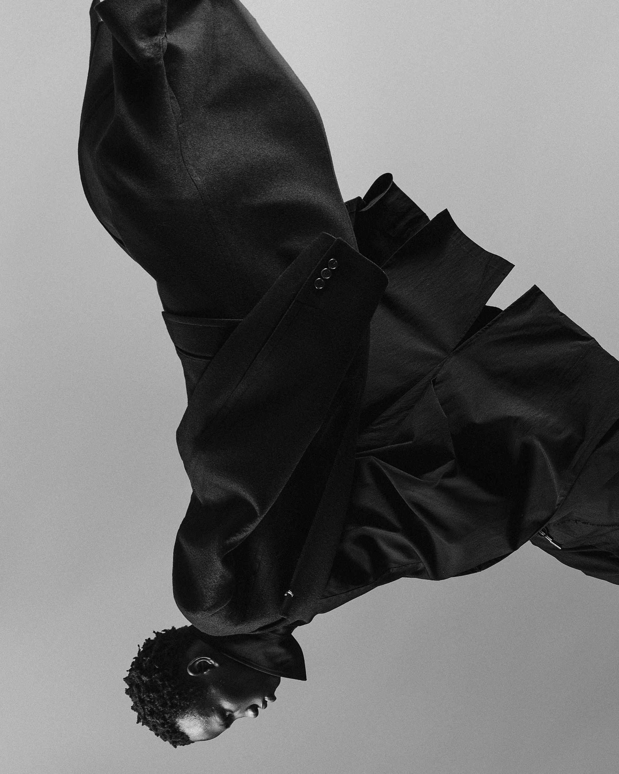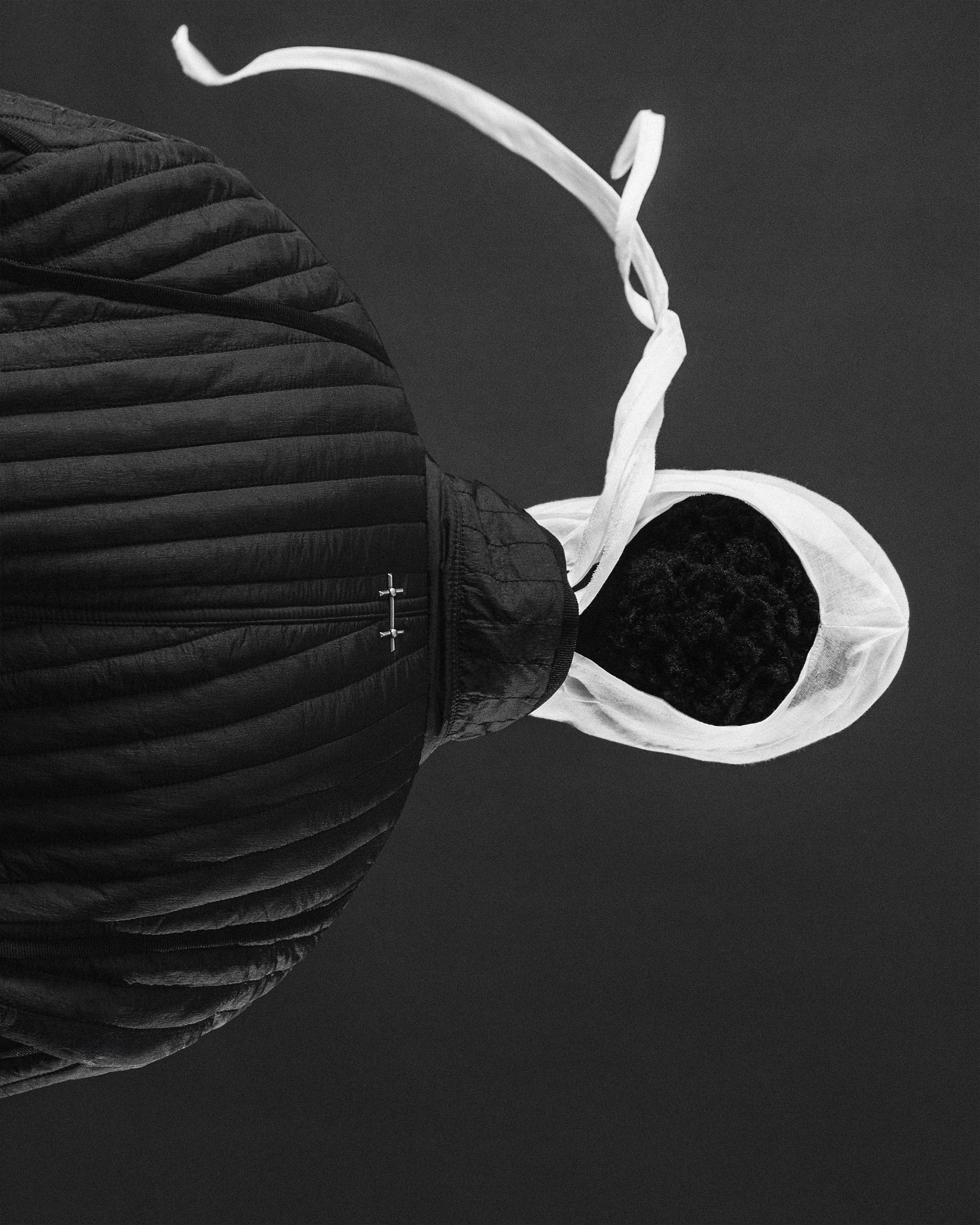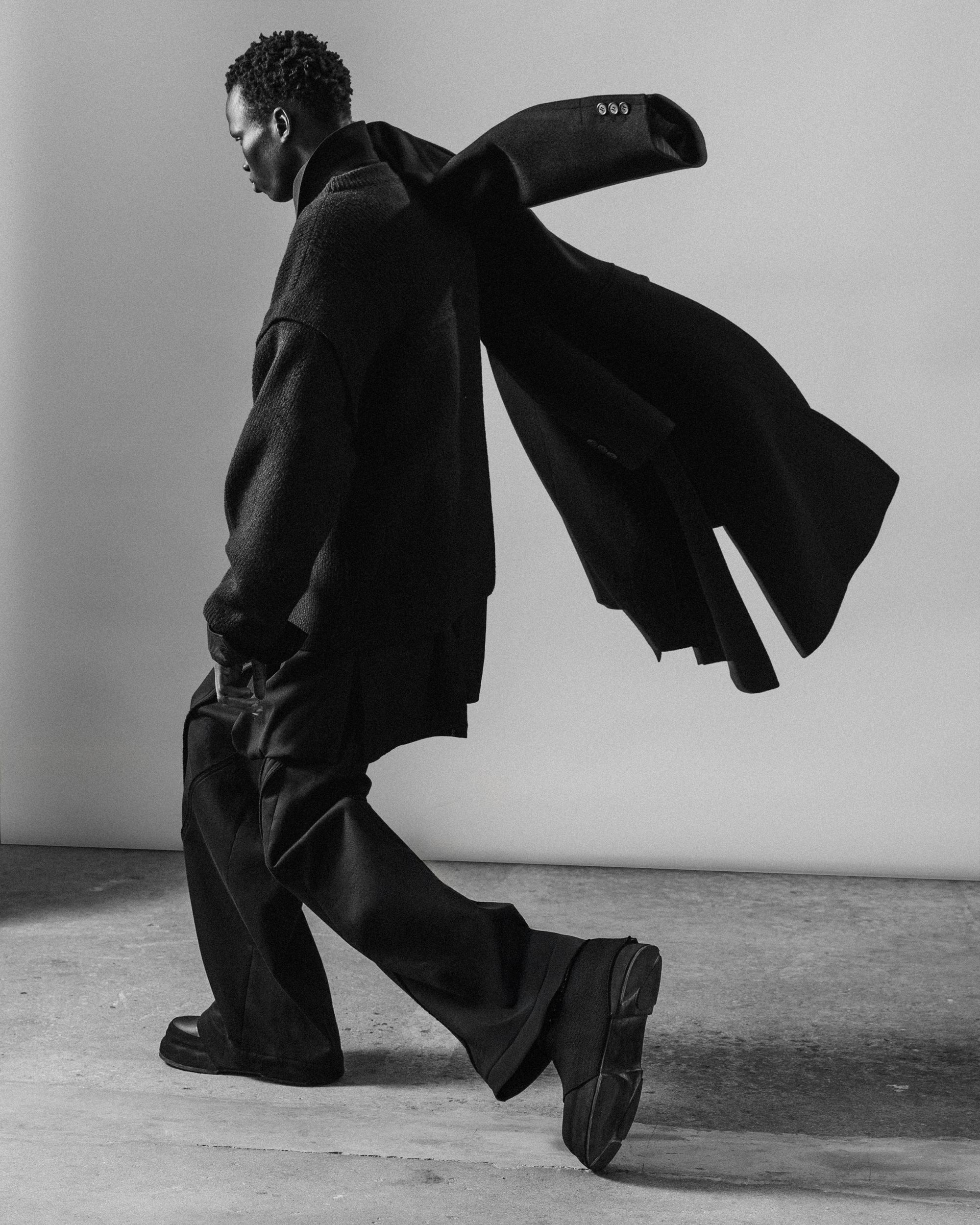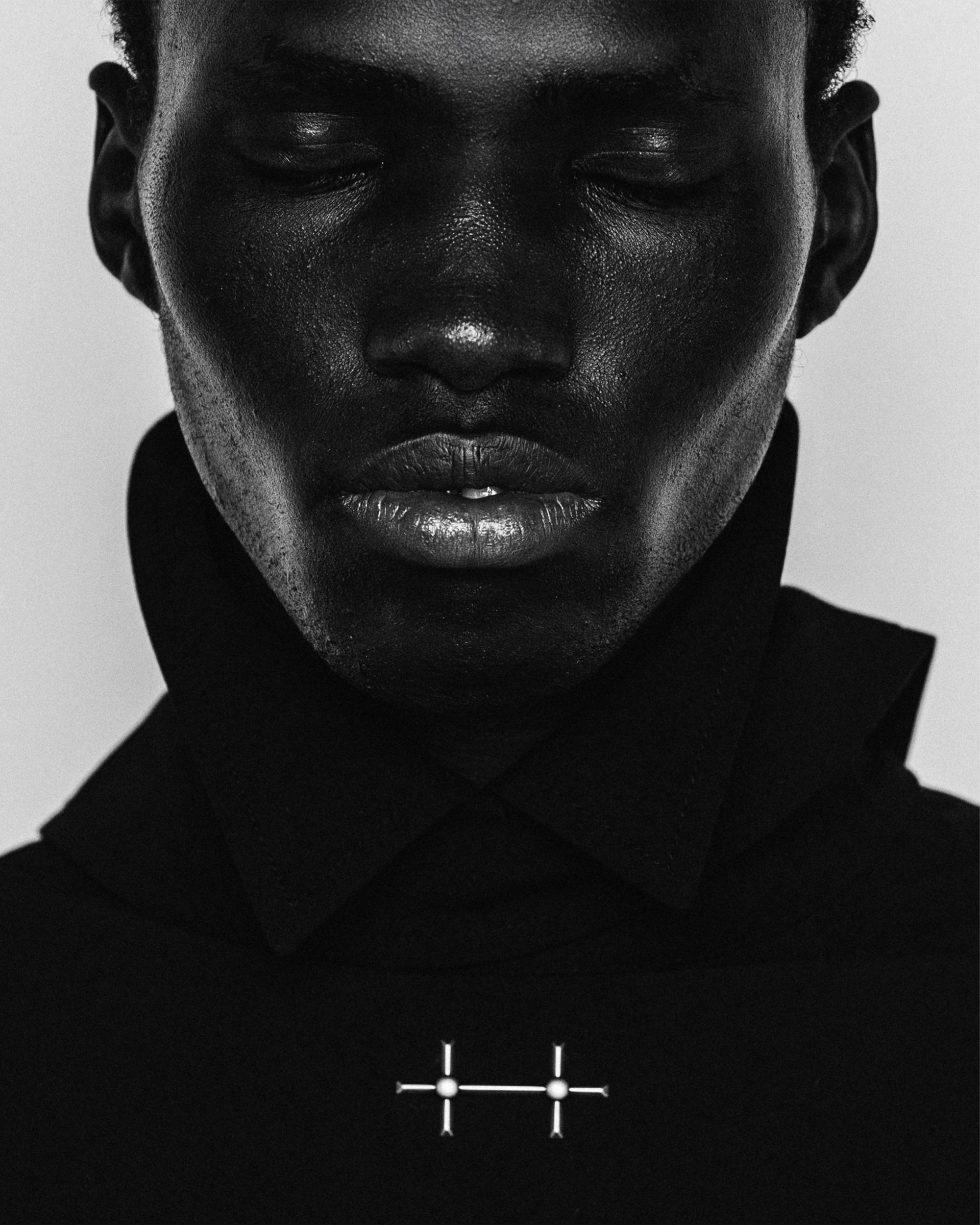Le cœur poétique de Songzio, réputé pour son tailoring expressif et fluide, est venu défier la rigueur du design technique et l'esthétique industrielle structurée d'Heliot Emil. De ce face-à-face est né un équilibre fascinant, avec un "Duel" qui reflète l'ambivalence même de l'escrime, un dialogue incessant entre l'agressivité et la grâce, entre la rigidité et le raffinement, où la structure des vêtements se fluidifie dans le mouvement. Une philosophie qui se matérialise dans les différentes séries de la collection. La série L'"Adversaire" sculpte l'incertitude avec des coupes asymétriques et des plis courbes, offrant des silhouettes modulables, tandis que les séries "Aketon" et "Plastron" (faisant référence aux protections d'armure) réinterprètent le vêtement comme une armure moderne, à travers des pulls et blazers matelassés d'une fonctionnalité avant-gardiste.