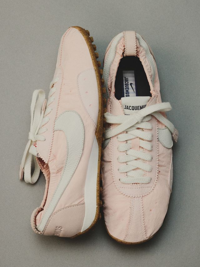 Avec la Moon Shoe, Nike et Jacquemus imaginent une silhouette située quelque part entre la chaussure d’athlétisme et la ballerine de danse. Une hybridation qui reflète parfaitement la rencontre entre les deux univers : d’un côté l’obsession technique de Nike, de l’autre la sensualité vibrante de Jacquemus. Le modèle est dévoilé pour la première fois lors du défilé Printemps-Été 2025 de Jacquemus. À l’époque, la Moon Shoe apparaît dans trois coloris affirmés - rouge, noir et beige. « Il y a trois ans, en visitant les archives Nike, j'ai découvert pour la première fois la fameuse Moon Shoe », raconte Simon Porte Jacquemus. « J'ai découvert une chaussure de running unique et minimaliste, à la fois intemporelle et très actuelle dans sa simplicité et sa conception. Je savais que c'était l'occasion de créer une nouvelle histoire et de la repenser dans l'esthétique de Jacquemus. »