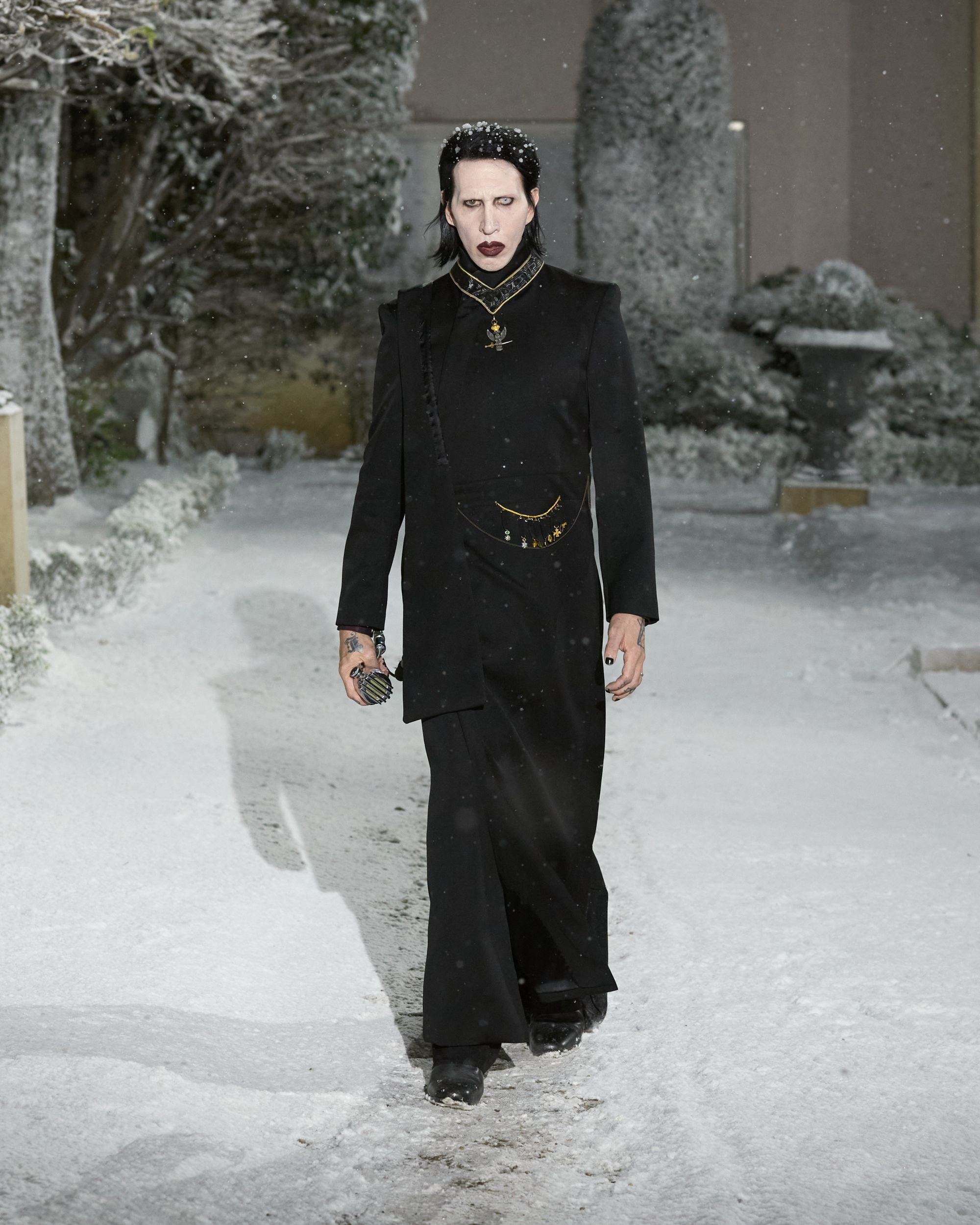 Cette saison, la marque Enfants Riches Déprimés, qui se définit elle-même comme à la fois anti, néo et post, a signé l’un des défilés les plus commentés de la saison. Et pour cause : pour ouvrir le défilé, le créateur américain Henri Alexander Levy a choisi le très controversé Marilyn Manson, au coeur de différentes affaires d’agressions sexuelles. Des accusations graves qui n’ont pas empêché la marque de lui faire cet honneur, qui plus est le 8 mars, Journée internationale des droits des femmes. Une présence qui a largement dépassé le cadre de la Fashion Week parisienne et a alimenté les discussions bien au-delà des podiums.