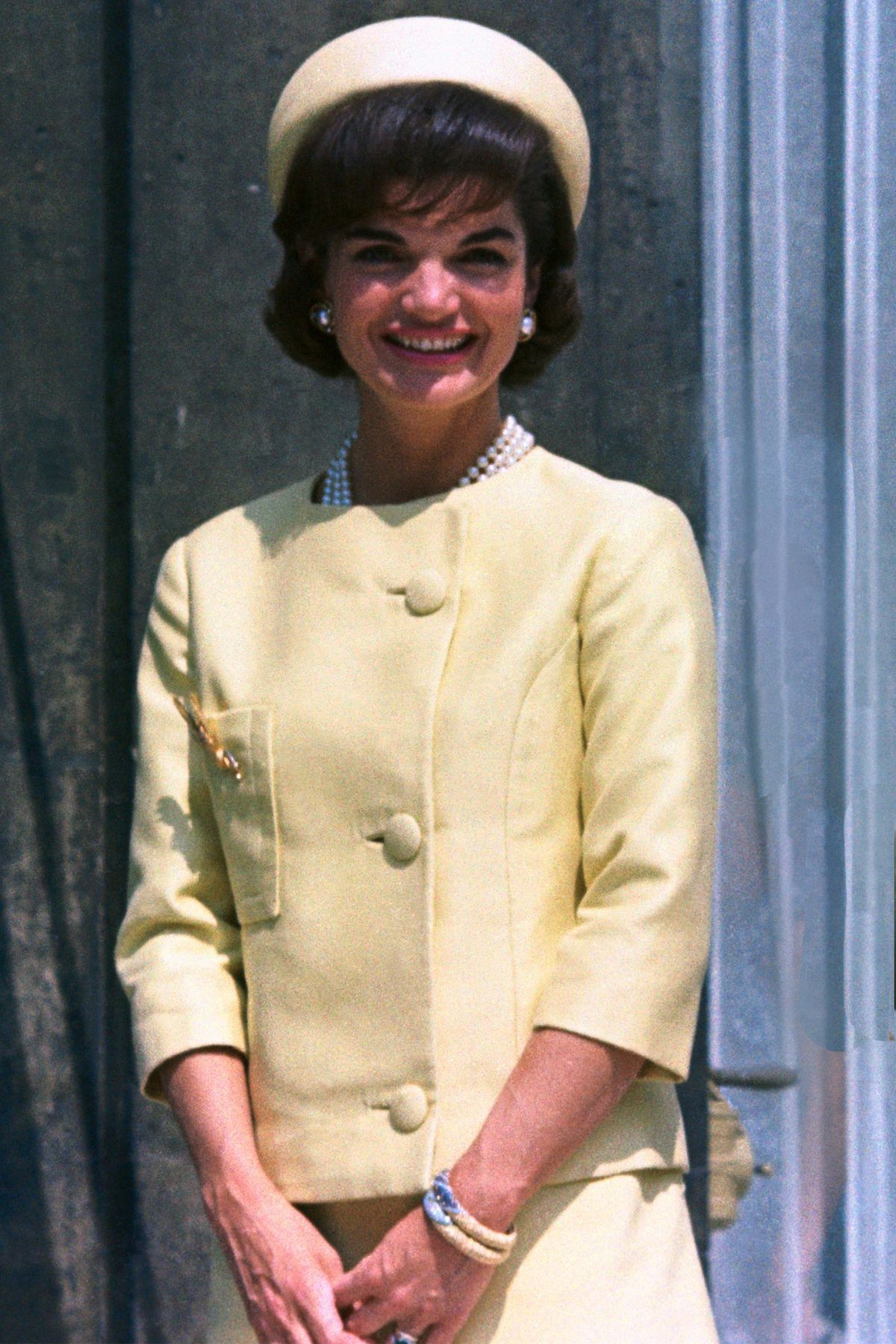 Ses tailleurs signés Chanel, aux couleurs franches et à la coupe irréprochable, forment une allure immédiatement reconnaissable. Mais c’est surtout ce petit chapeau rond, sans bord, porté comme une ponctuation, qui retient aujourd’hui l’attention. Le pillbox, systématiquement assorti à ses ensembles, traverse les épisodes comme un fil conducteur. De l’investiture de John F. Kennedy à son dramatique assassinat à Dallas, il s’impose comme un symbole, à la fois de retenue et d’élégance.