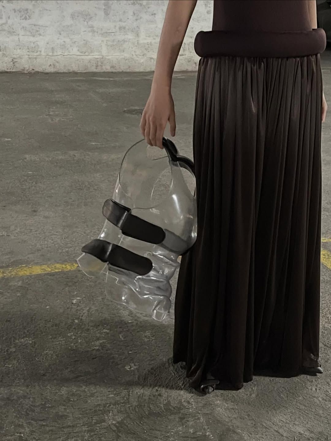 Autre moment fort, le prix coup de cœur décerné à Naya El Ahdab. Diplômée de Parsons Paris, la designer porte une parole encore trop peu entendue dans l’industrie. En situation de handicap, elle a vu de nombreuses opportunités lui échapper, non pas faute de talent, mais en raison d’obstacles structurels persistants. Elle confiait récemment au média Fashion Network la difficulté d’accéder à des stages, malgré des dossiers salués et des entretiens concluants, freinée par l’inaccessibilité des lieux. Une réalité systémique qu’elle transforme aujourd’hui en force créative. Après une première expérience chez Hermès au sein du département Bijouterie Fantaisie, elle poursuit sa formation à l’IFM et affirme une signature déjà reconnaissable : corsets en plexiglas, silhouettes longilignes. Chez elle, le vêtement est une extension du corps et de ses contraintes.