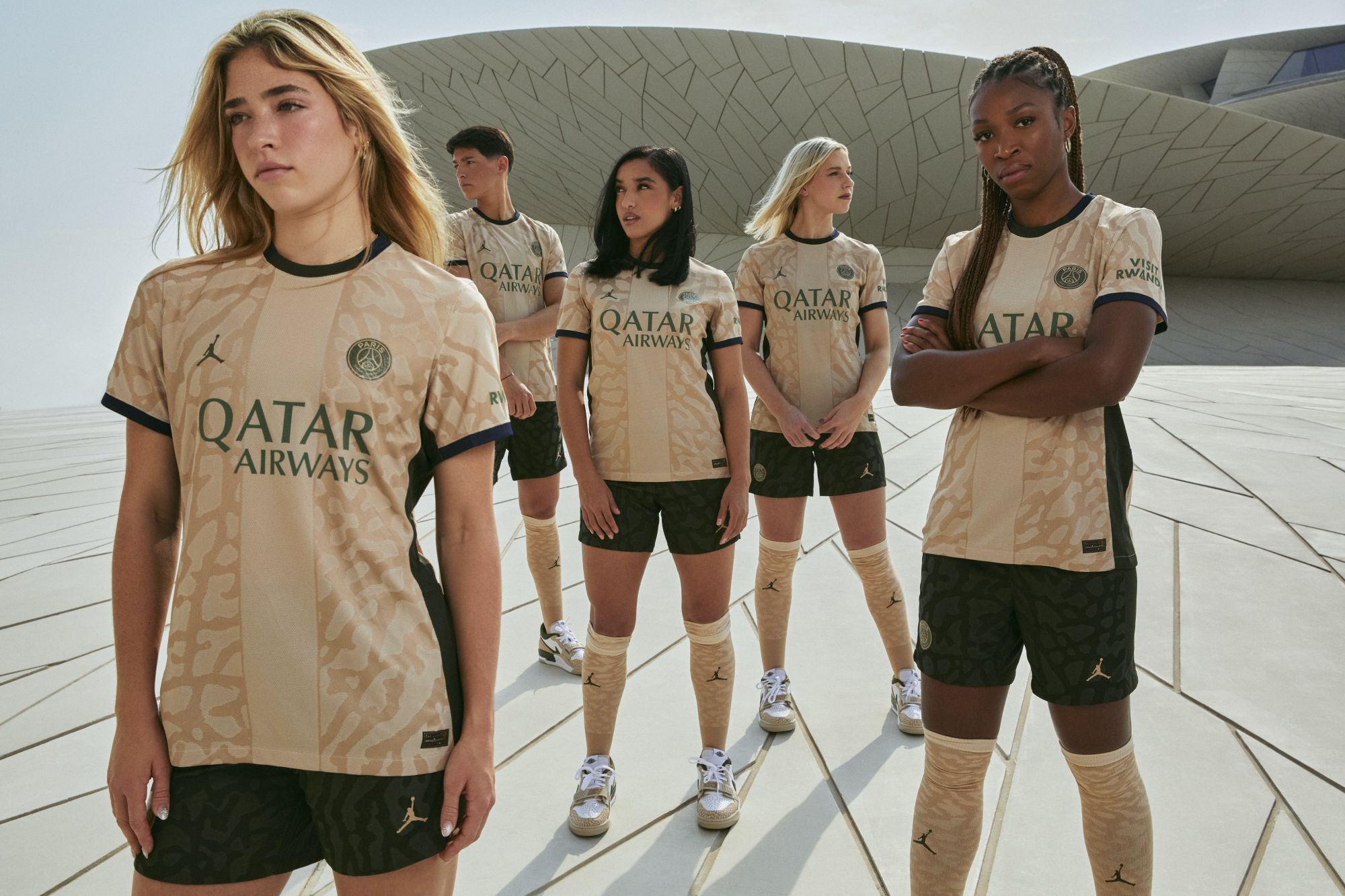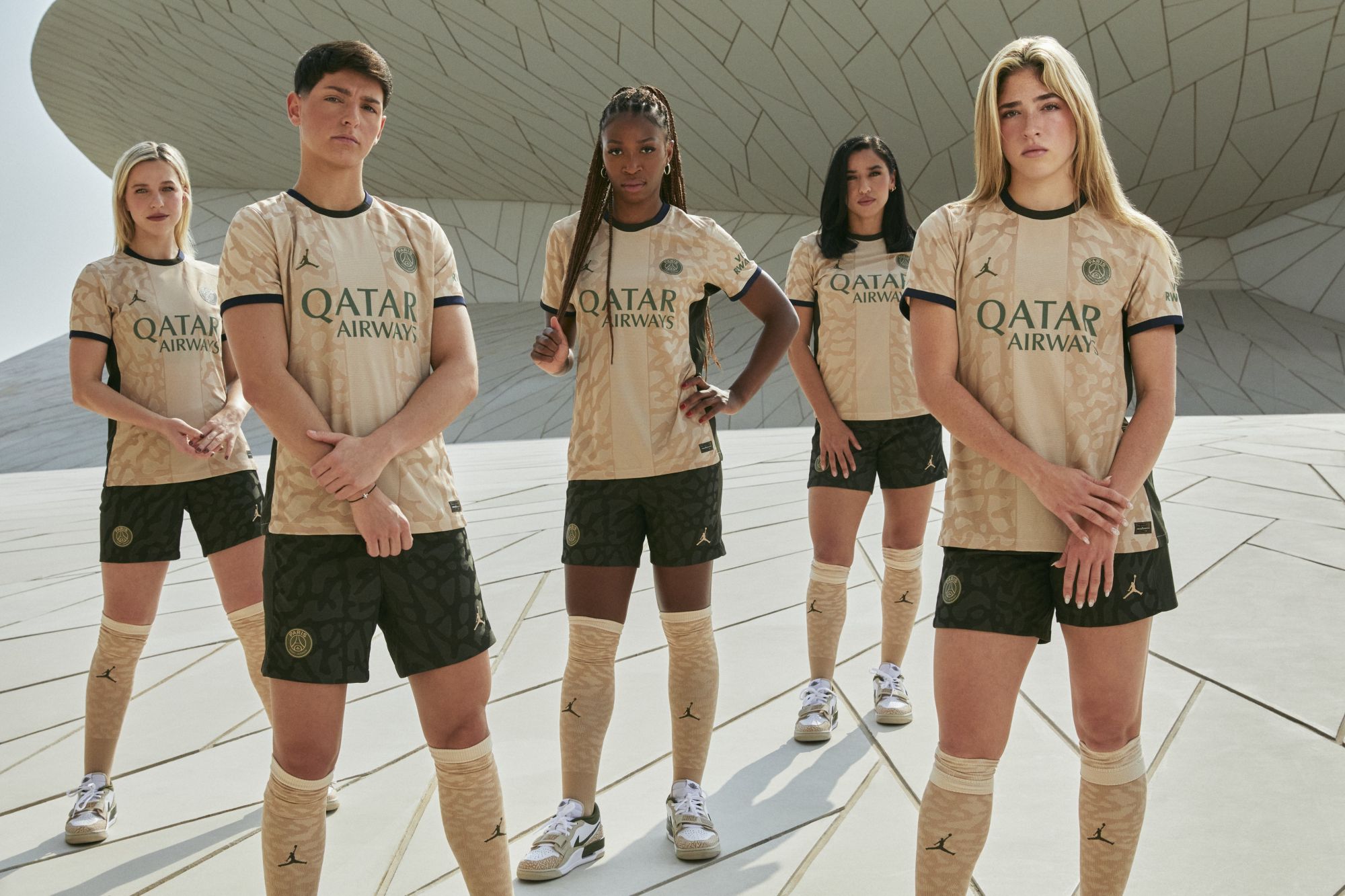 After celebrating the 5th anniversary of their partnership, Paris Saint-Germain and Jordan Brand today unveil the fourth jersey of the 2023/2024 season, completing Paris Saint-Germain's jerseys and presenting the iconic elephant print for the second time in the history of football and the club. This time, the chosen color is sand, with black and blue details on the sleeves and collar. The kit will be presented by the club's women's team on the field during the return of the UEFA Women's Champions League and for the match against Ajax on January 24th at Parc des Princes. The collaboration extends beyond the playing field, with a series of exclusive pieces inspired by the harmonious colors of the series, designed to fit into the lifestyle and inspired by Michael Jordan's visits to Paris before becoming the global phenomenon we now know.