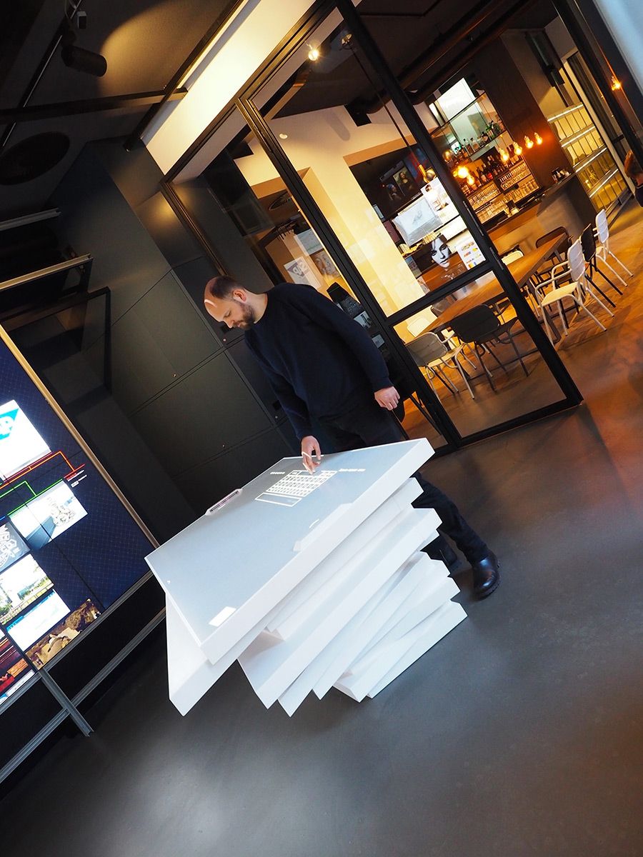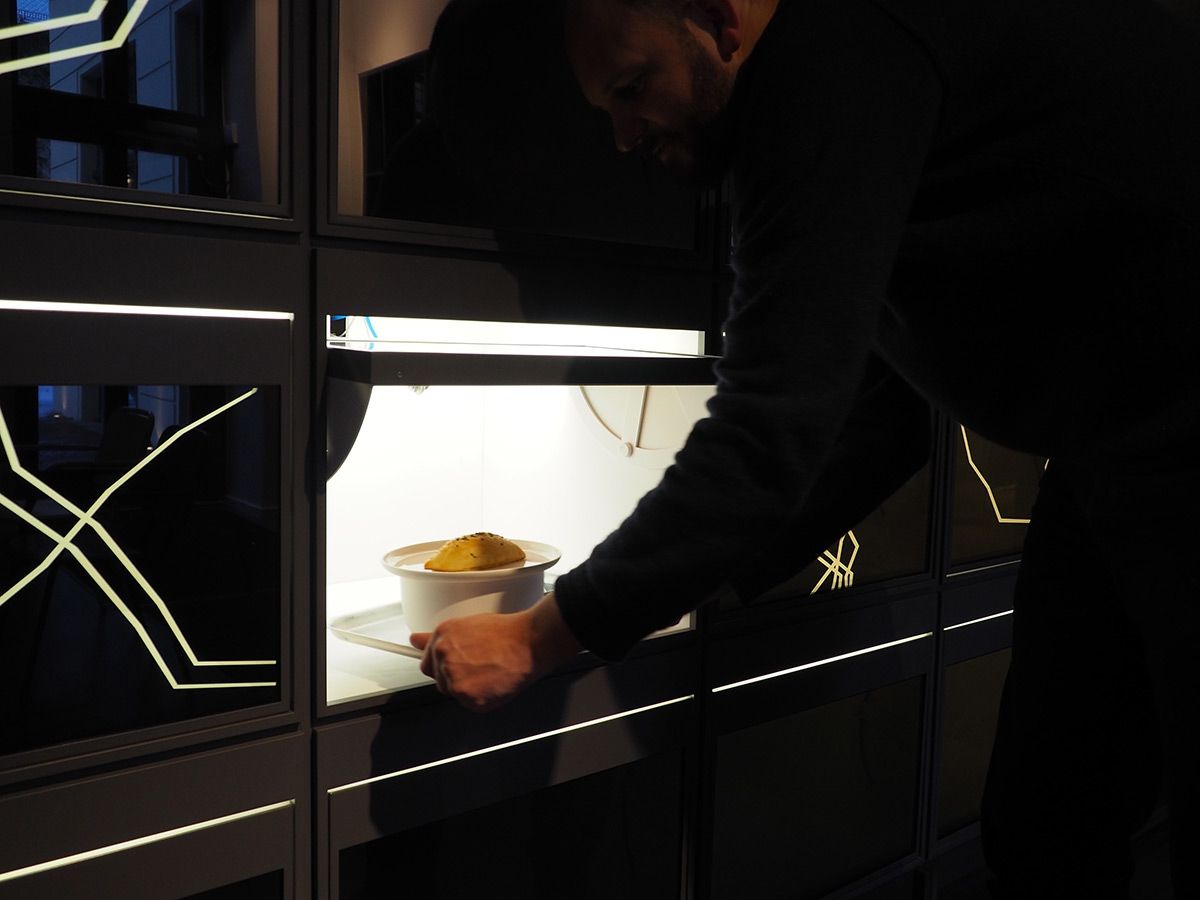 È una nuova esperienza e tutto gira intorno al provare cose totalmente nuove. Ci siamo concentrati su cosa potesse cambiare nel lungo periodo per quanto riguarda il modo di servvire e manciare il cibo - specialmente per quanto riguarda la pausa pranzo o la colazione durante la settimana. Si tratta principalmente di cambiamenti dal punto di vista del tempismo e dell'efficenza. Ecco perchè DATA KITCHEN è basato sull'idea che si può pagare e ordinare con un'app da telefono, così da avere il cibo per tempo. Inoltre noi ci concentriamo sull'alta qualità del cibo e su piatti con ingredienti freschi, che significa che devono essere preparati esattamente quando fai l'ordine.