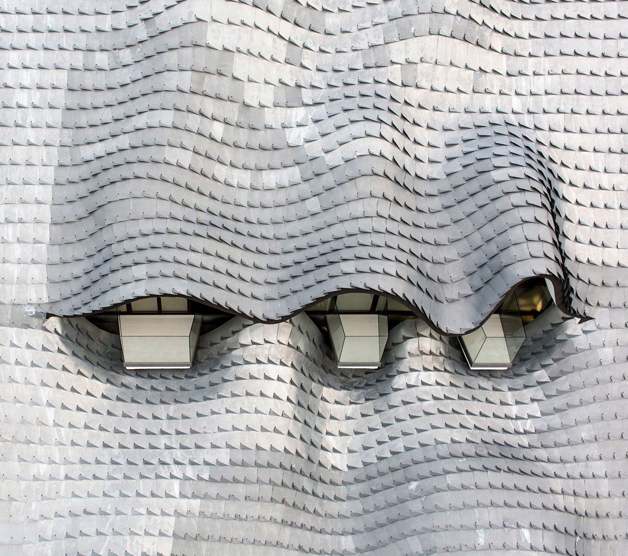 Qui, tra le rocce della costa spagnola di Calpe, c'è Casa del Acantilado o "casa della scogliera", un edificio, definito dai suoi stessi progettisti Pablo Gil e Jaime Bartolomé come "una contemporanea grotta gaudesca" per la sua forma che ricorda il fantasioso stile di Anton Gaudì: una gigantesca testa di drago, con degli occhi stilizzati, un'enorme bocca spalancata e la pelle squamosa. Questo effetto di squame che caratterizza il tetto ondulato, il dettaglio che più rende unica questa costruzione, è realizzato con tegole in zinco naturale fatte a mano modellate attorno ad una rete metallica.