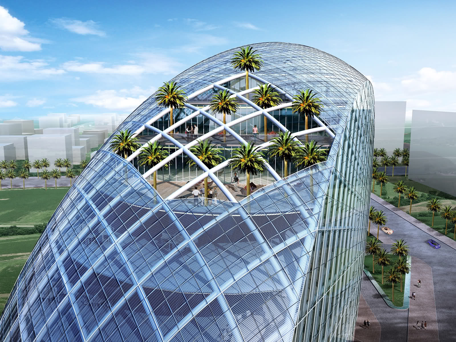 La vera innovazione? Un sistema intelligente interno che consente agli impiegati di personalizzare le viste dalla propria scrivania per mostrare in qualsiasi parte del mondo e vedere paesaggi in tempo reale da tutto il mondo, ma anche un sistema di monitoraggio della salute installato in tutti i bagni che controlla funzioni come la pressione del sangue e il peso (che se necessario verranno inviate direttamente al medico).
