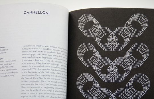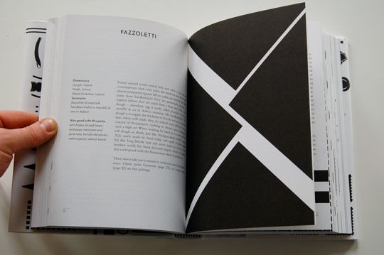 Il libro “The Geometry of Pasta”, edito da Boxtree, nasce dalla collaborazione tra il graphic designer Caz Hildebrand e lo chef Jacob Kennedy, che attraverso illustrazioni rigorosamente in bianco e nero dal sapore “costruttivista” illustra come cucinare 300 forme di pasta diverse in oltre 100 ricette. La forma segue la funzione, a ogni tipo di pasta il suo sugo! Già un illustre precedente affrontava il tema: nel 1997 il mega designer Kenya Hara (l’art director di Muji per intenderci) aveva organizzato a Tokio una mostra dal titolo: “Macaroni Exhibition of Architects” in cui erano in mostra prototipi di pasta progettati dai maggiori architetti giapponesi contemporanei.